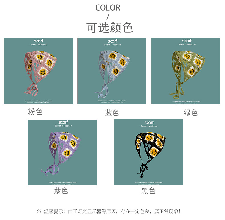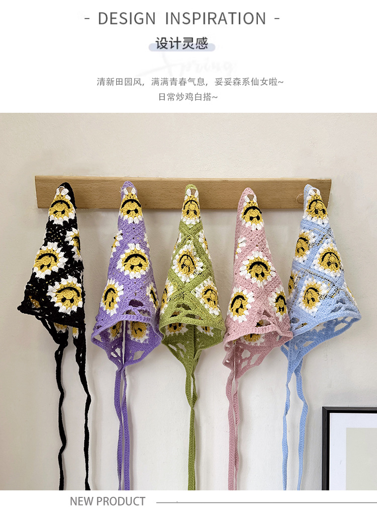 Japón encantador estilo pastoral galía de punto banda de cabello toalla triangular retrógrada francesa toalla triangular de tejido para la cabeza