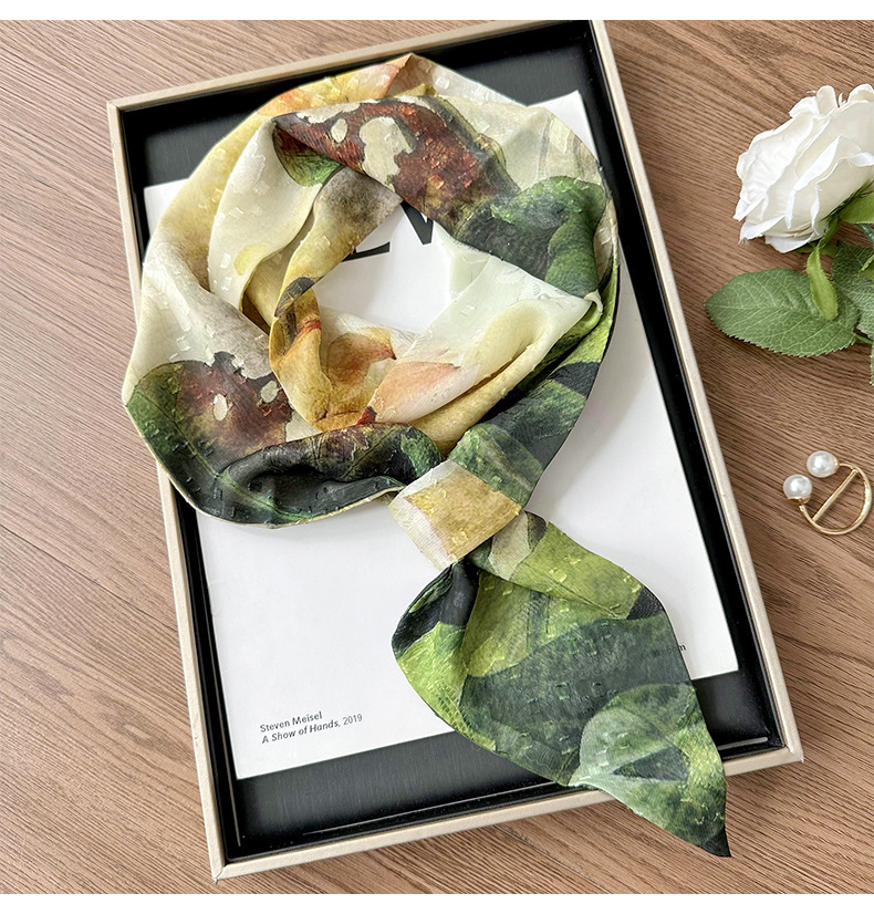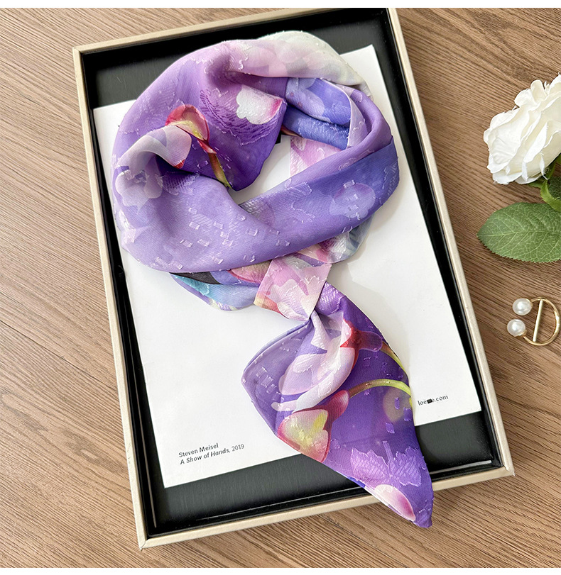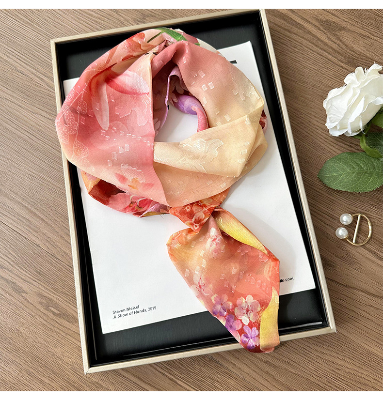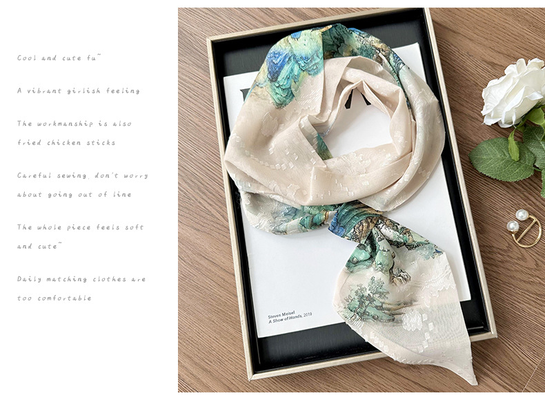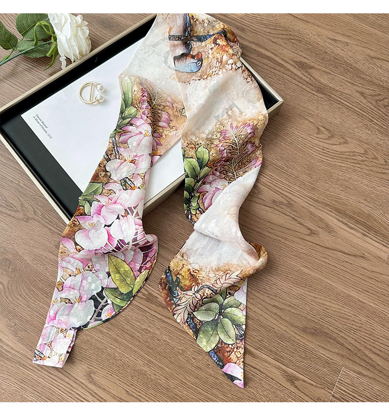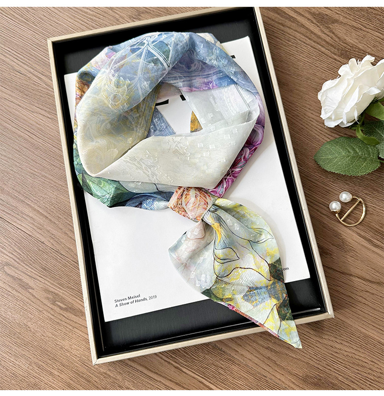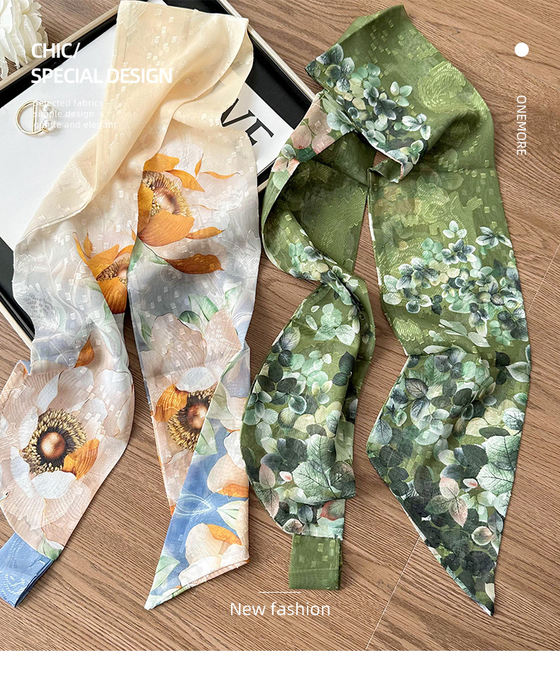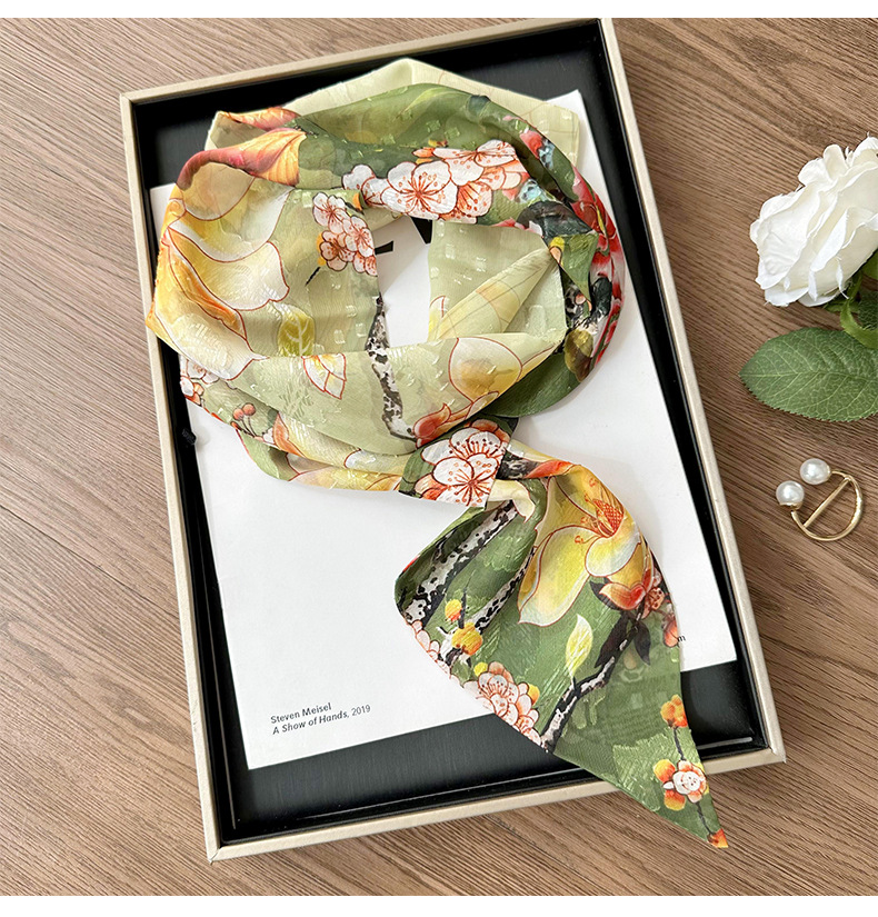 Bufanda de seda larga floral para las mujeres primavera y otoño estilo coreano versátil de alto grado fresco artístico perezoso cuello protección del oído bufanda