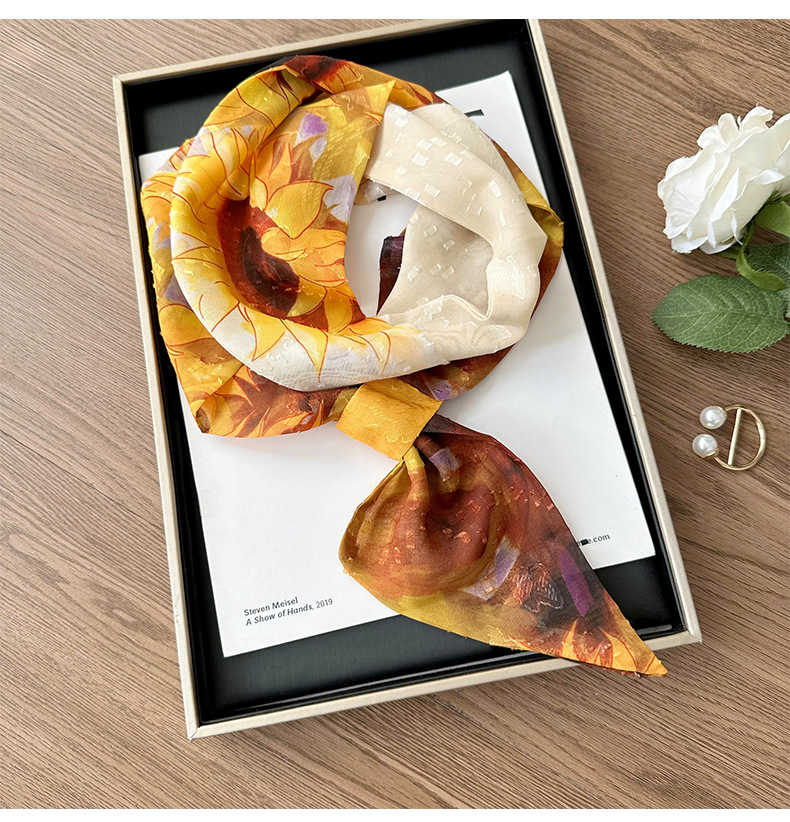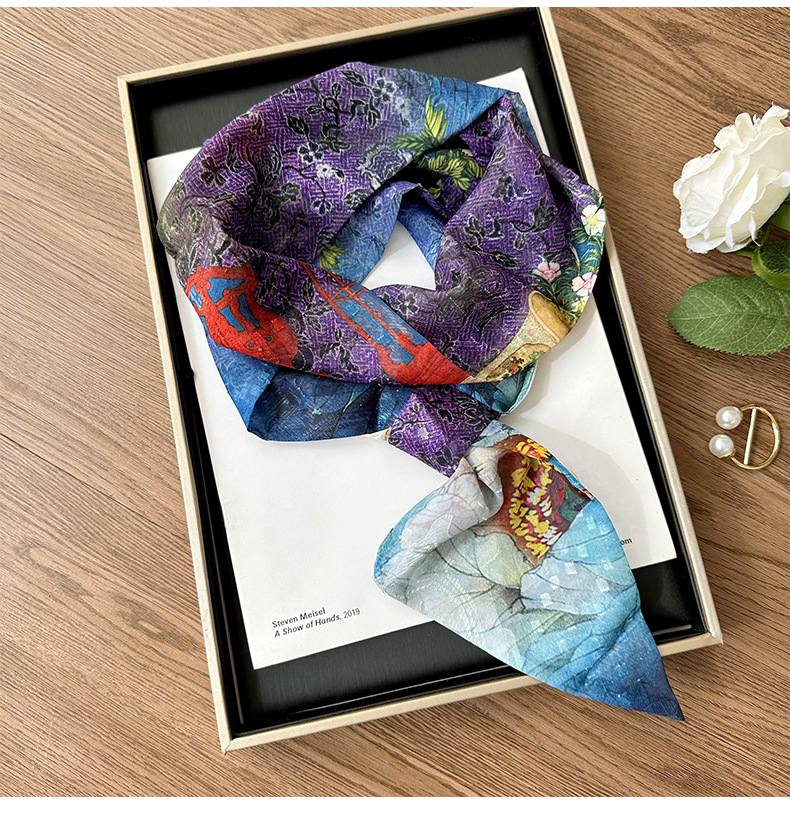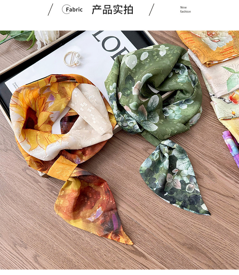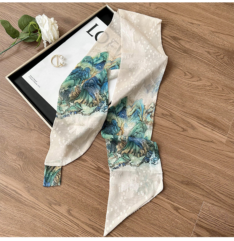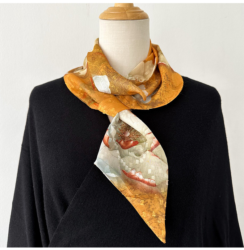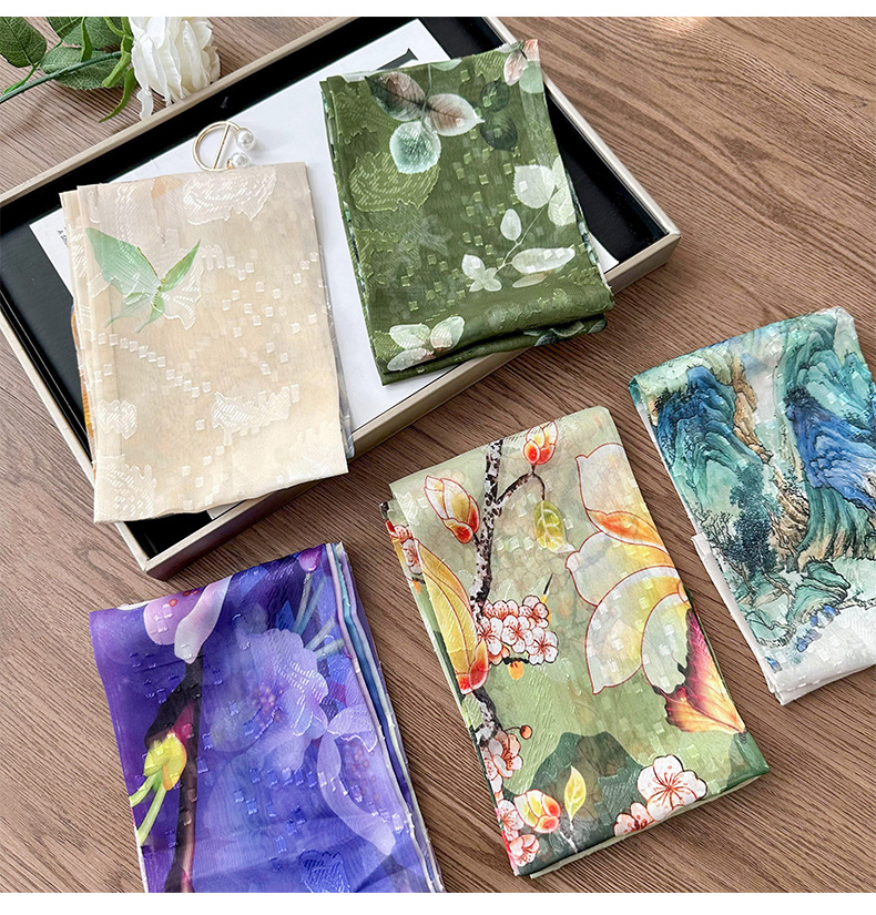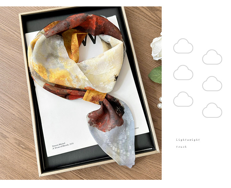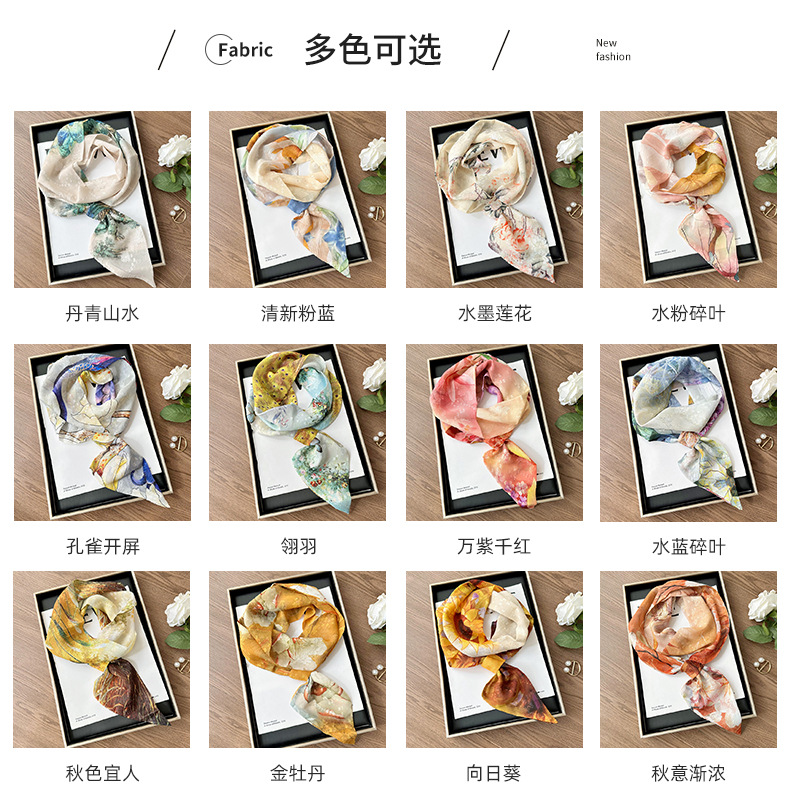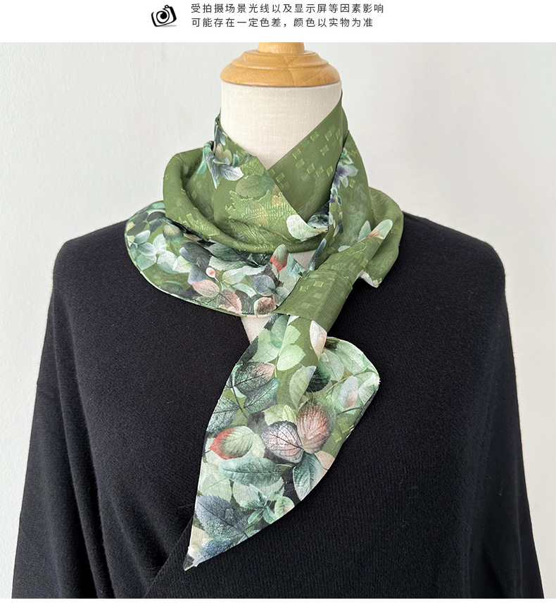 Bufanda de seda larga floral para las mujeres primavera y otoño estilo coreano versátil de alto grado fresco artístico perezoso cuello protección del oído bufanda