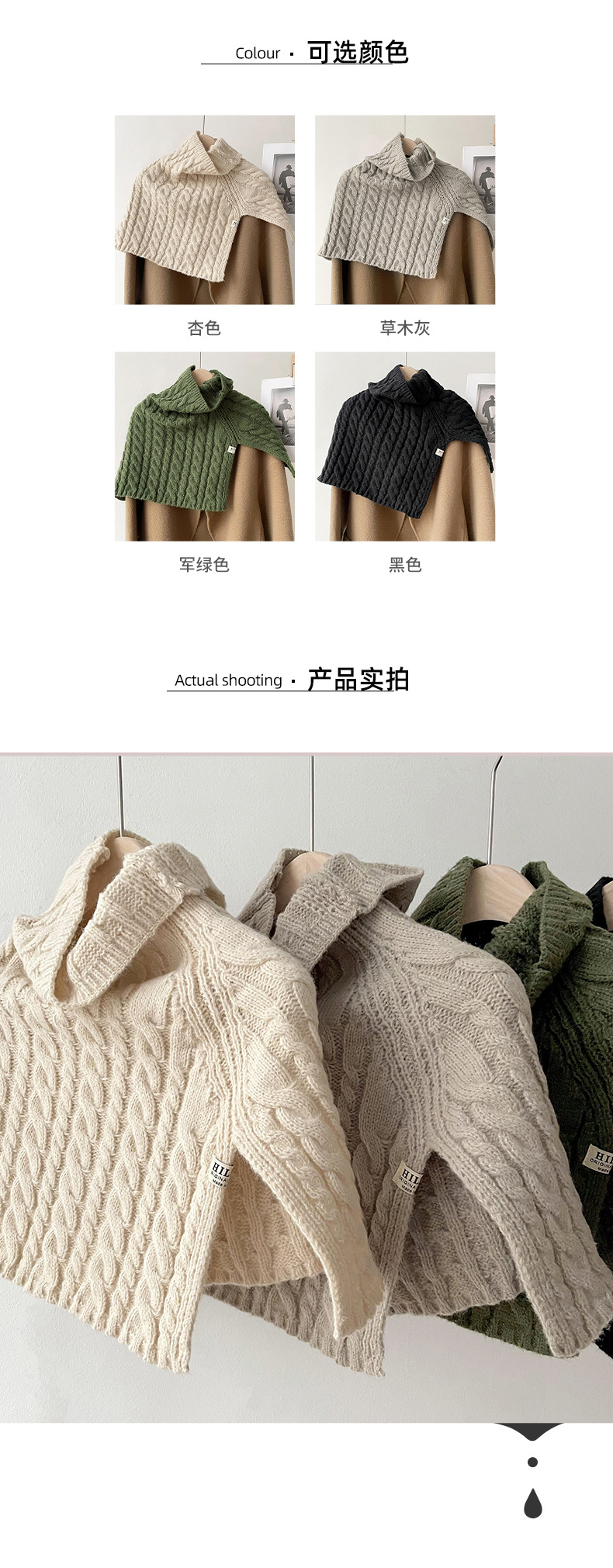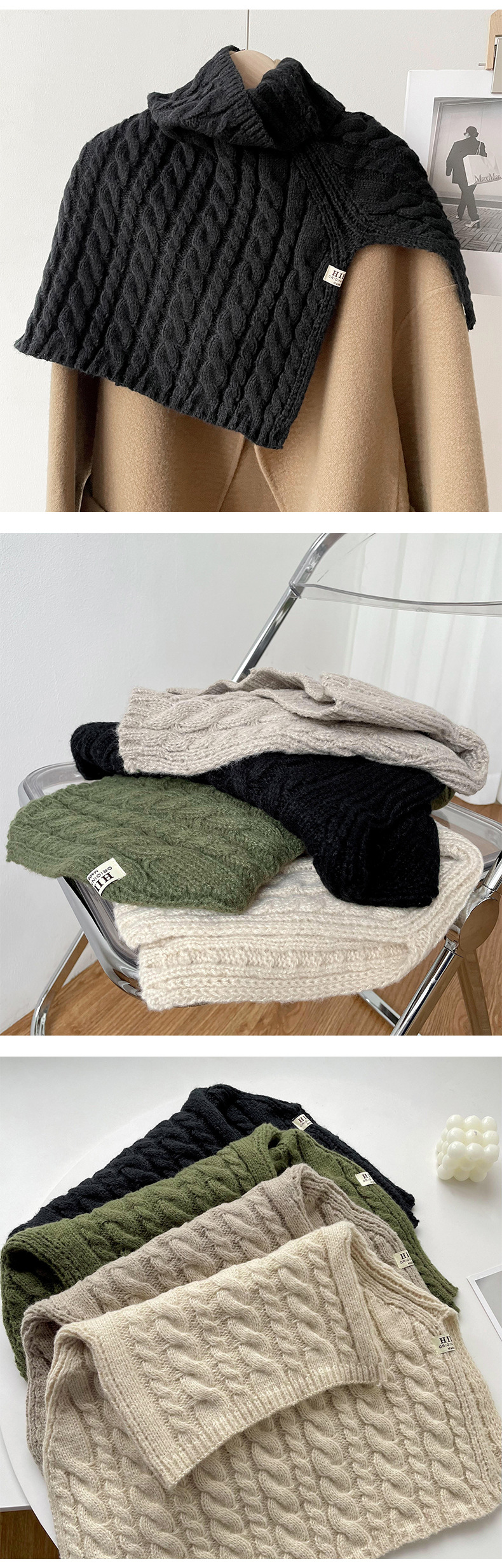 Otoño e Invierno estilo coreano color sólido giro caliente suéter bufanda de cuello alto split bufanda de punto exterior cabo chal bufanda