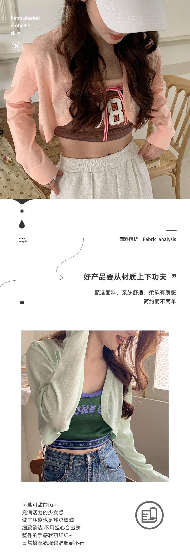 Ropa de protección solar de las mujeres primavera y verano de punto Delgado cardigan de seda de hielo de punto exterior chal con tirantes falda blusa abrigo