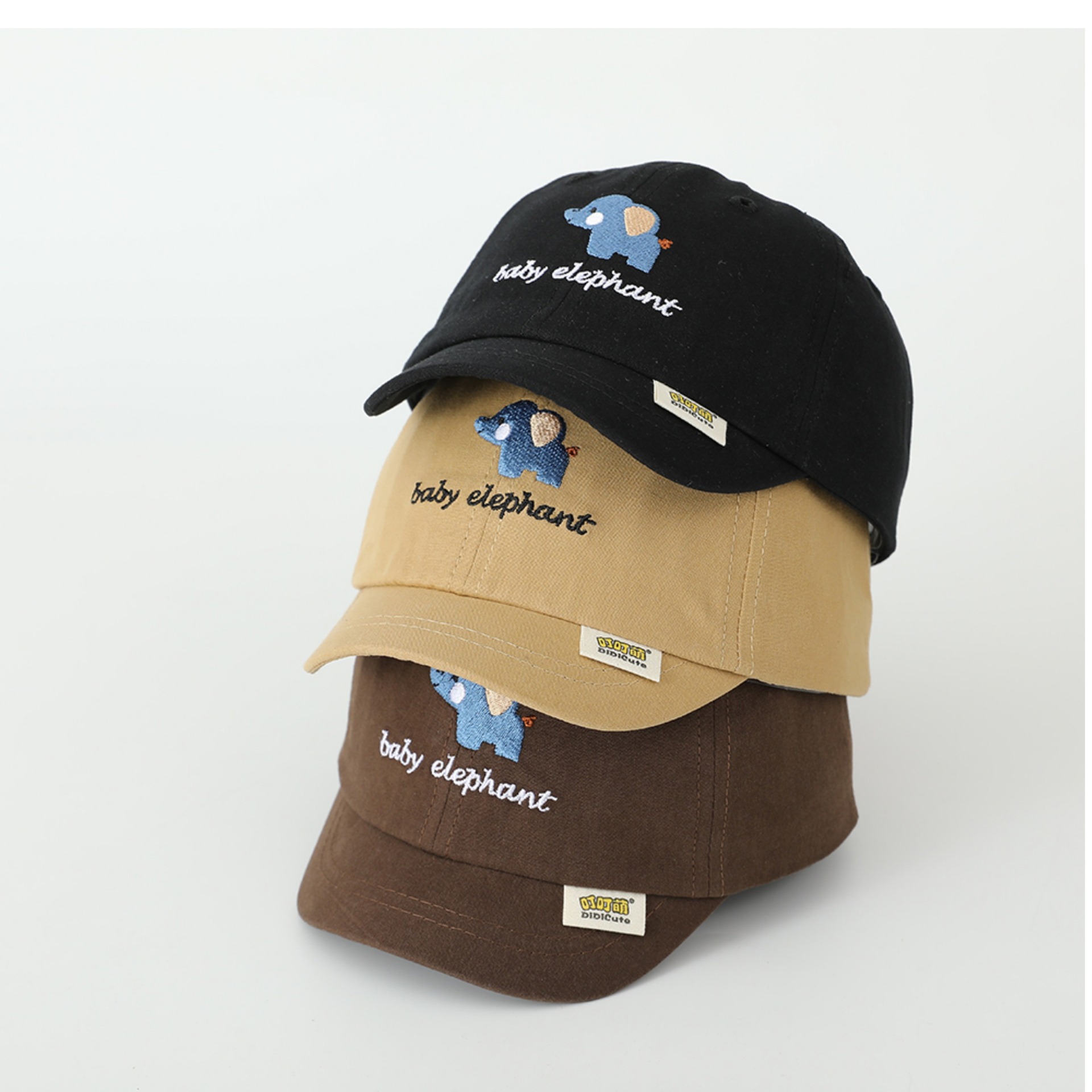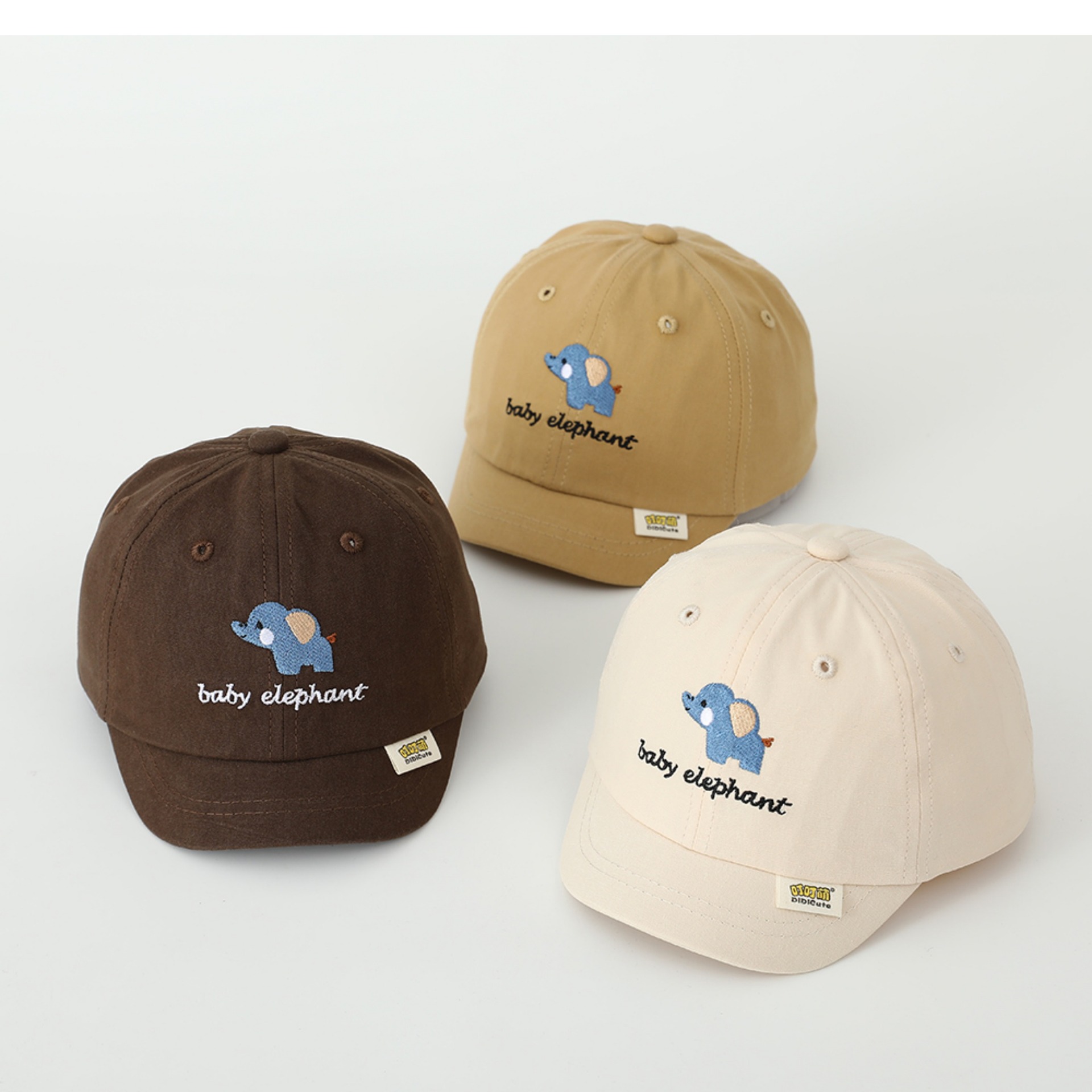 Sombreros de primavera para bebés pequeños elefantes bordados delgados sombreros de goma suave para bebés sombreros de béisbol de protección solar para niños y niñas