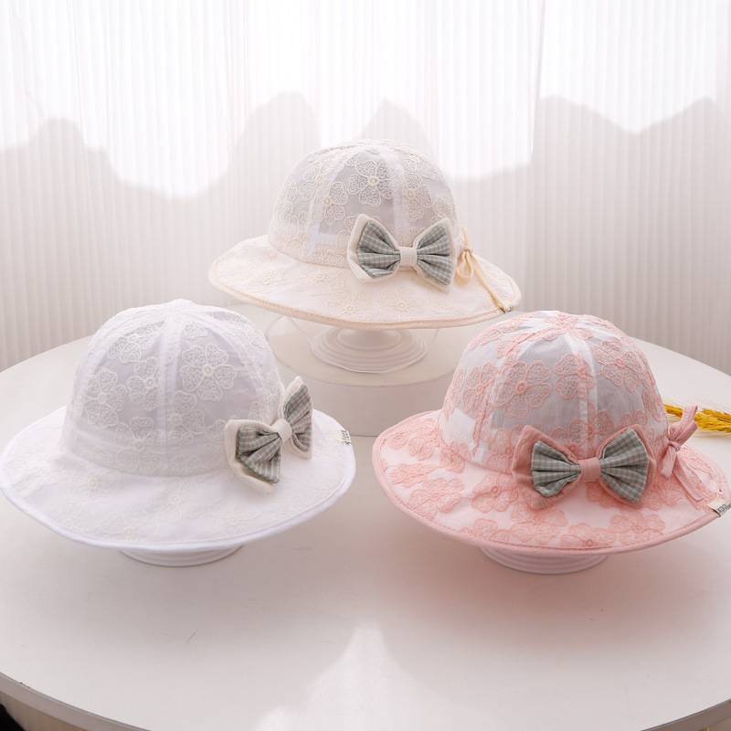 Sombreros para bebés primavera y otoño delgados niñas arco bebés sombreros de cuenca primavera y otoño bebé sombreros pescadores sombreros