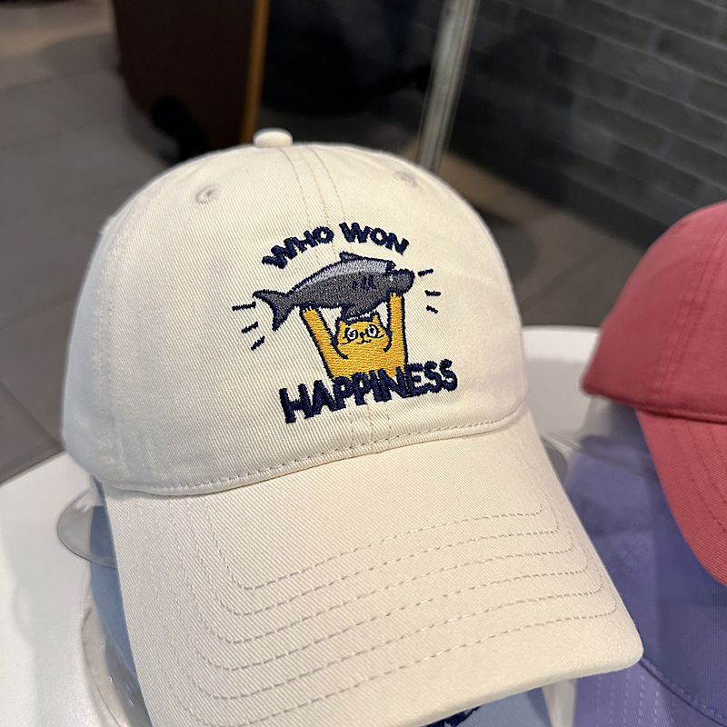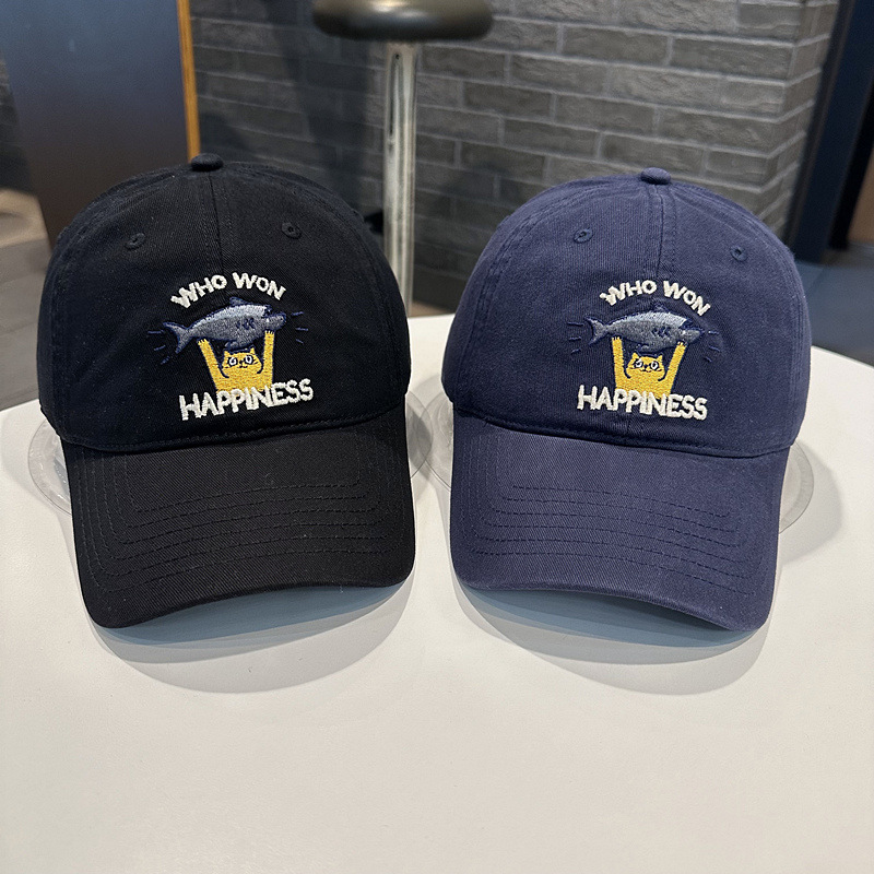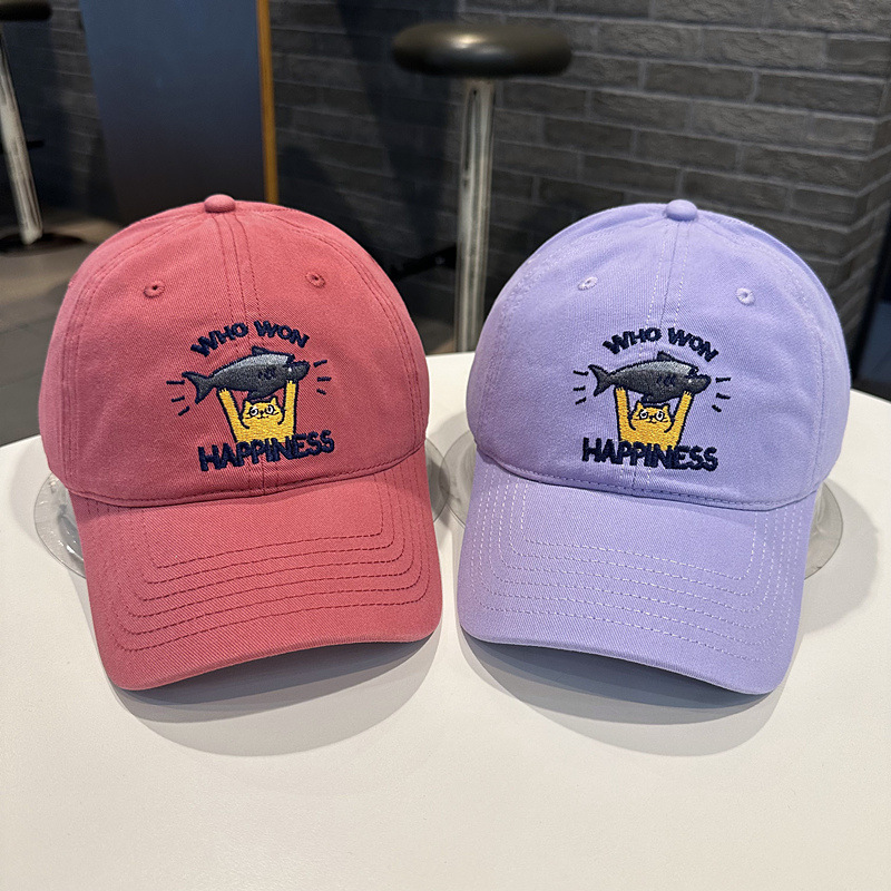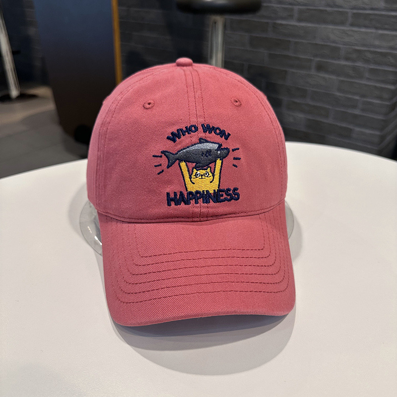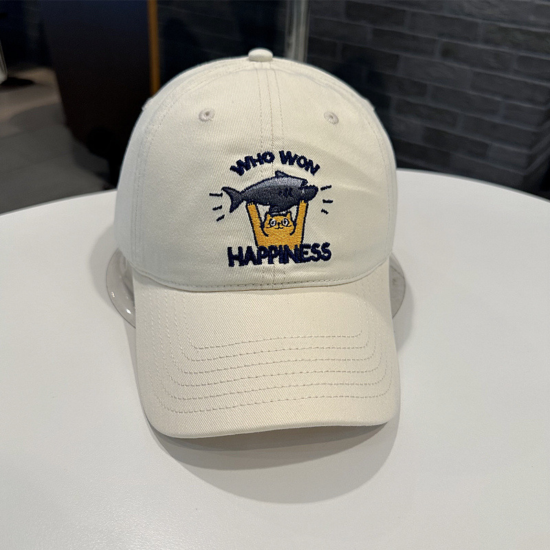 Sombrero de béisbol de mujer coreana, jóvenes hombres y mujeres de la calle con letras de gato bordadas de pez, sombrero de cara pequeña.