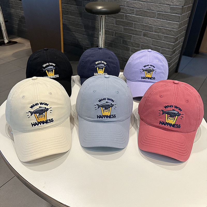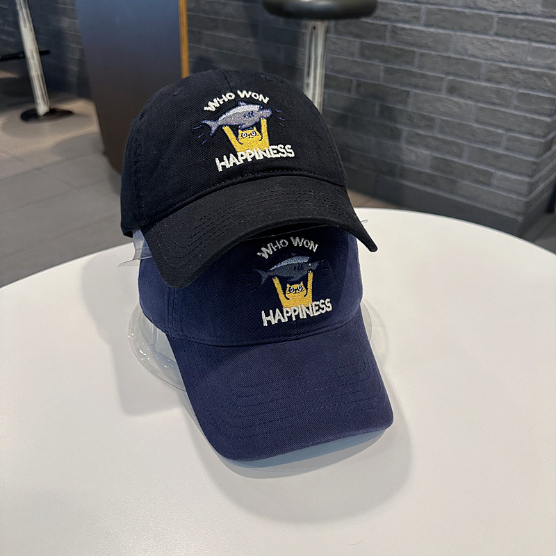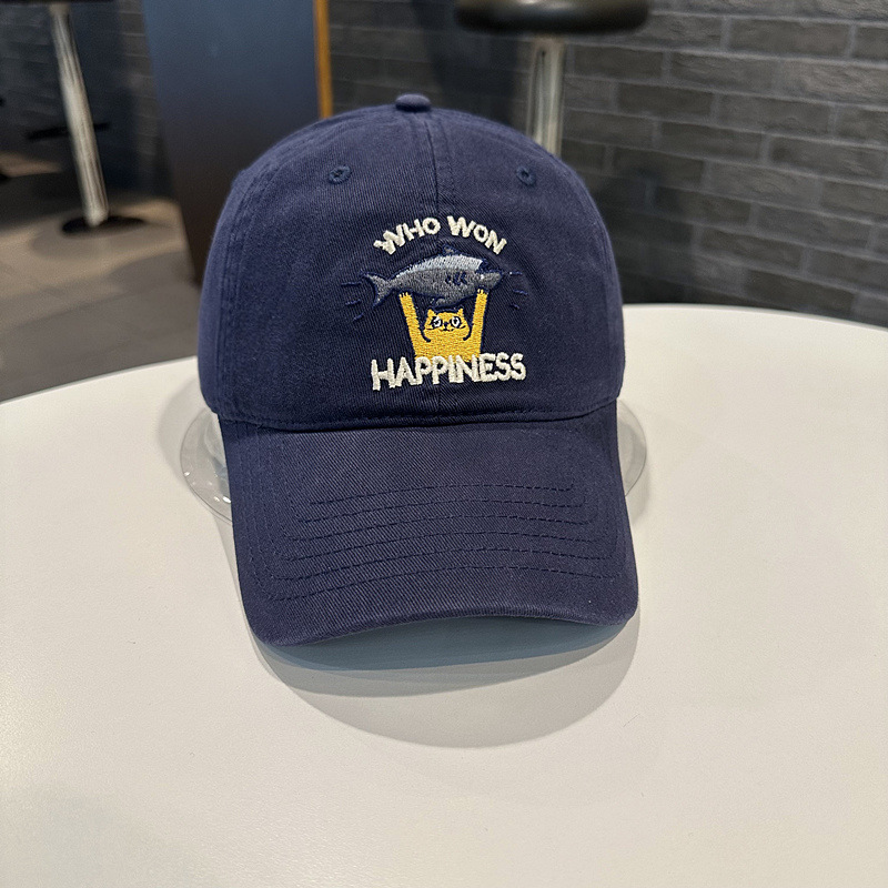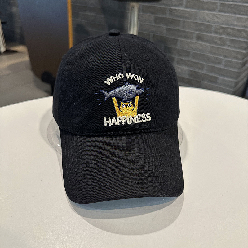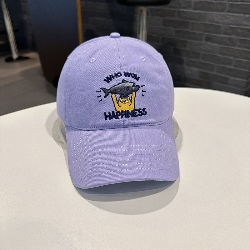 Sombrero de béisbol de mujer coreana, jóvenes hombres y mujeres de la calle con letras de gato bordadas de pez, sombrero de cara pequeña.
