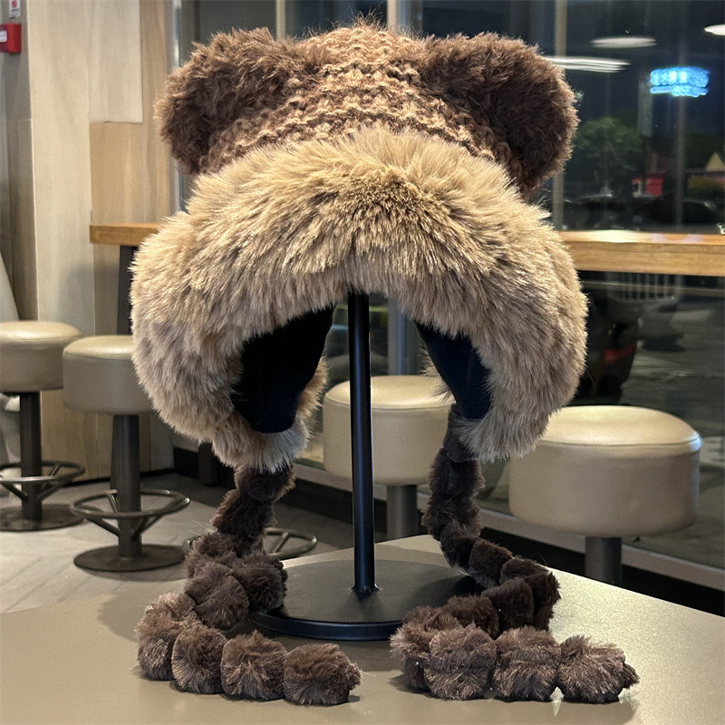 Bonita gorra de peluche de oso, gorra de invierno para mujeres, gorra de protección de orejas, gorra de rayos antifría dulce y versátil