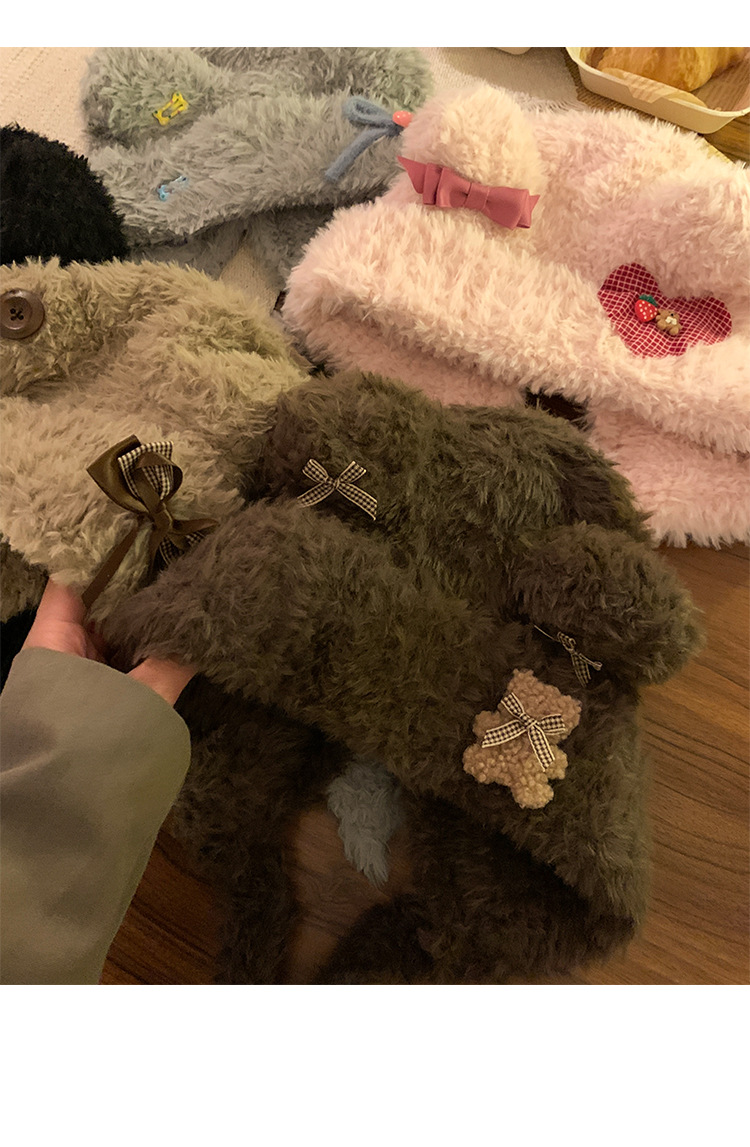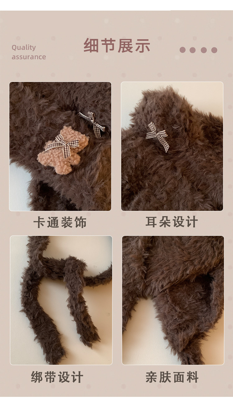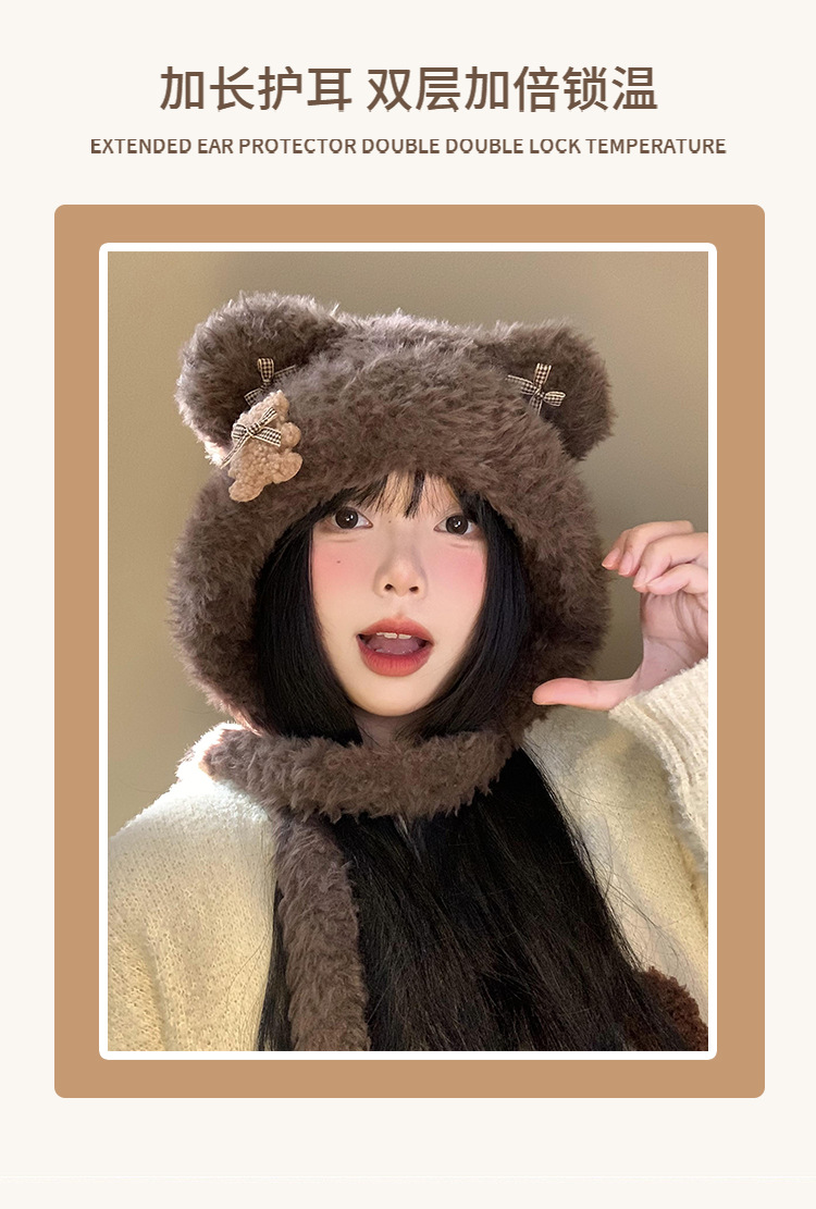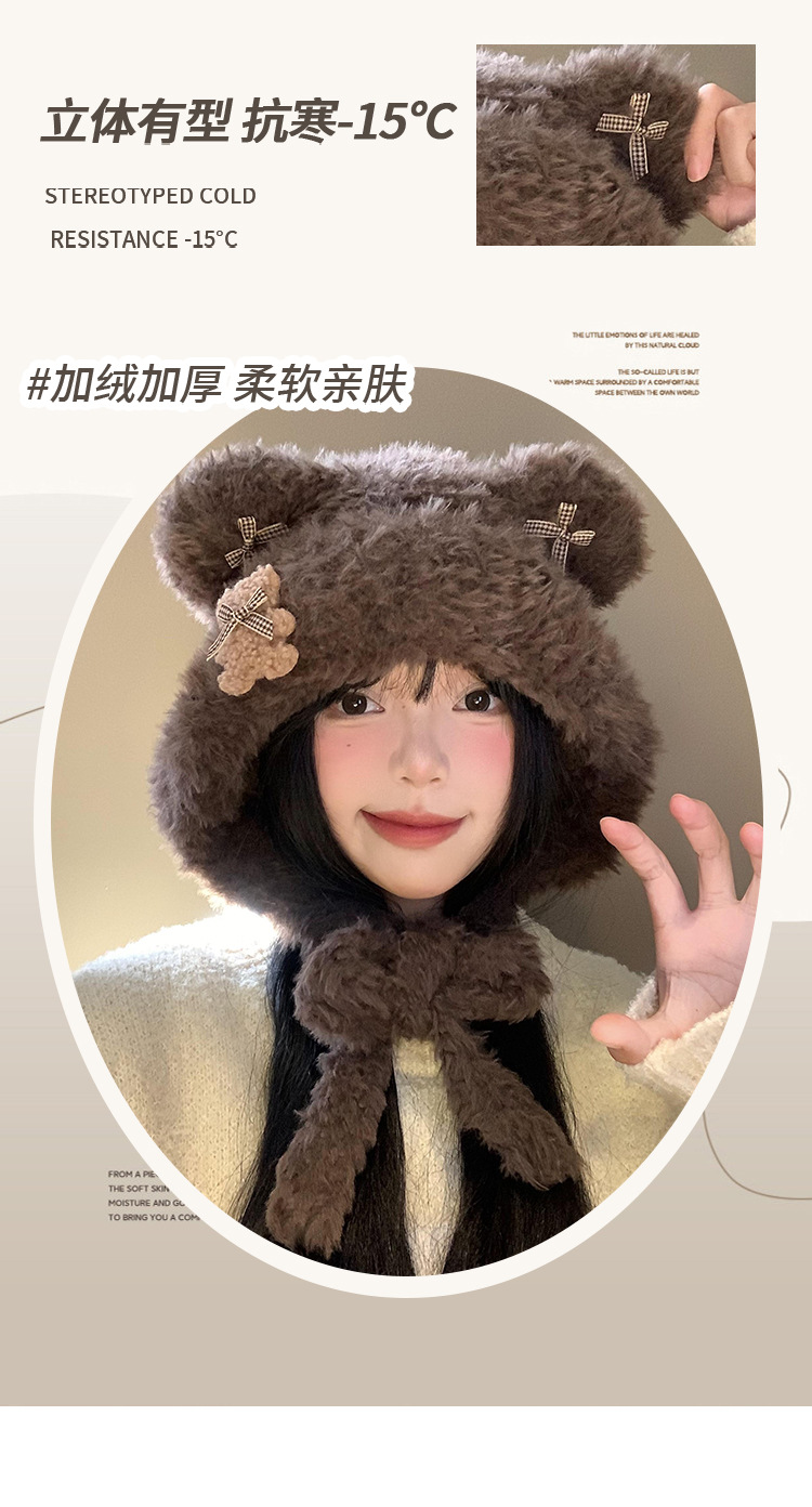 Hermoso arco de oso orejas gorra de peluche para mujeres otoño y invierno cara pequeña gorra de punto protector de orejas gorra de calor frío