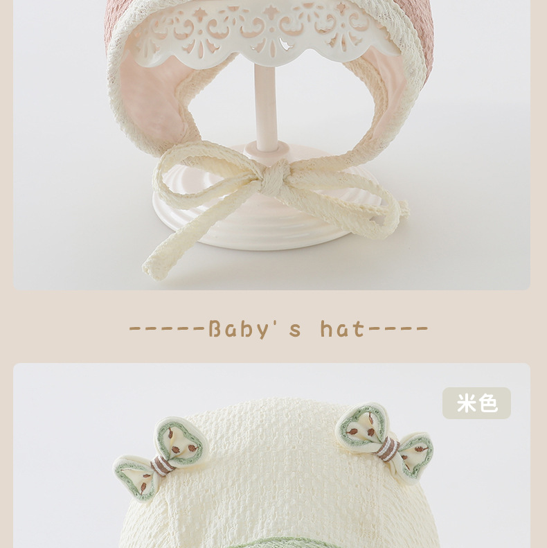 Sombrero de bebé primavera y otoño delgado arco extranjero gorro princesa primavera recién nacido gorro de bebé gorro de corte