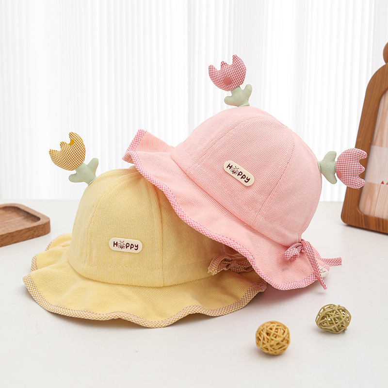 Sombrero de bebé primavera y otoño bebés lindos super lindos flores sombrero de pescador niñas sombrero de sombrero de sombrero ajustable