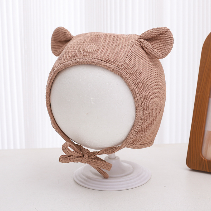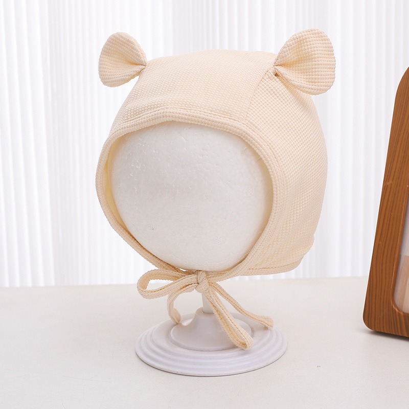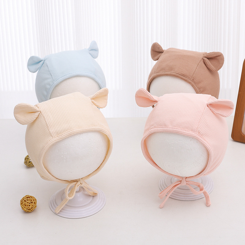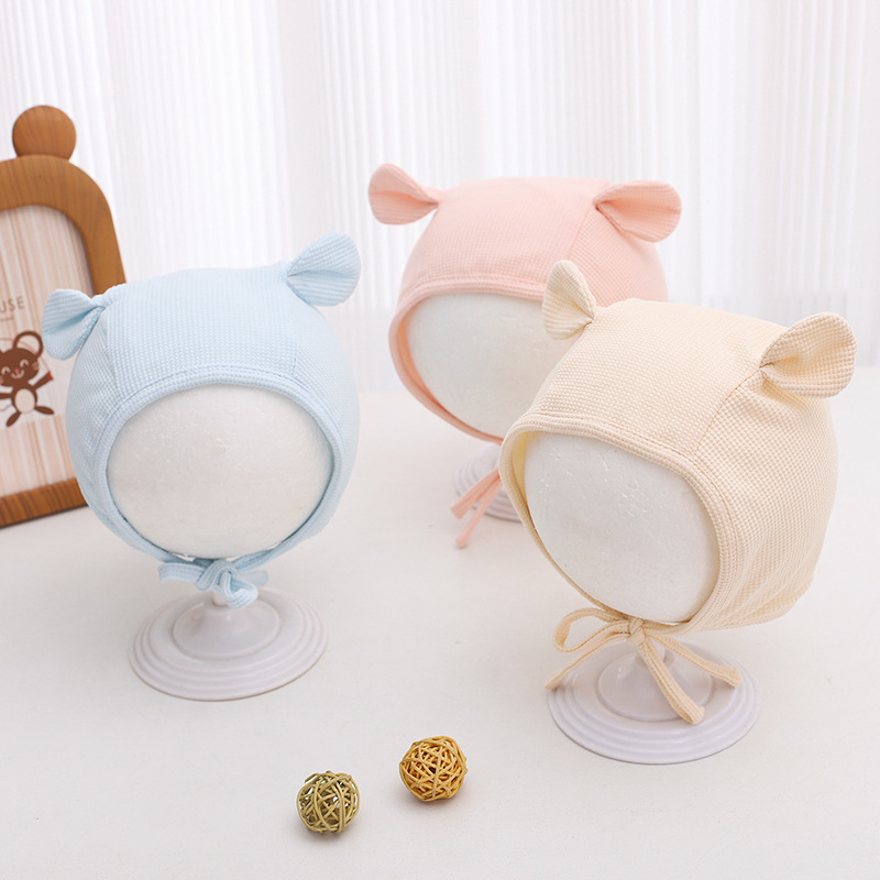 Sombreros para bebés primavera y otoño pequeños meses bebés simple sombrero de protector de orejas de color sólido lindo estilo de orejas gorra de algodón
