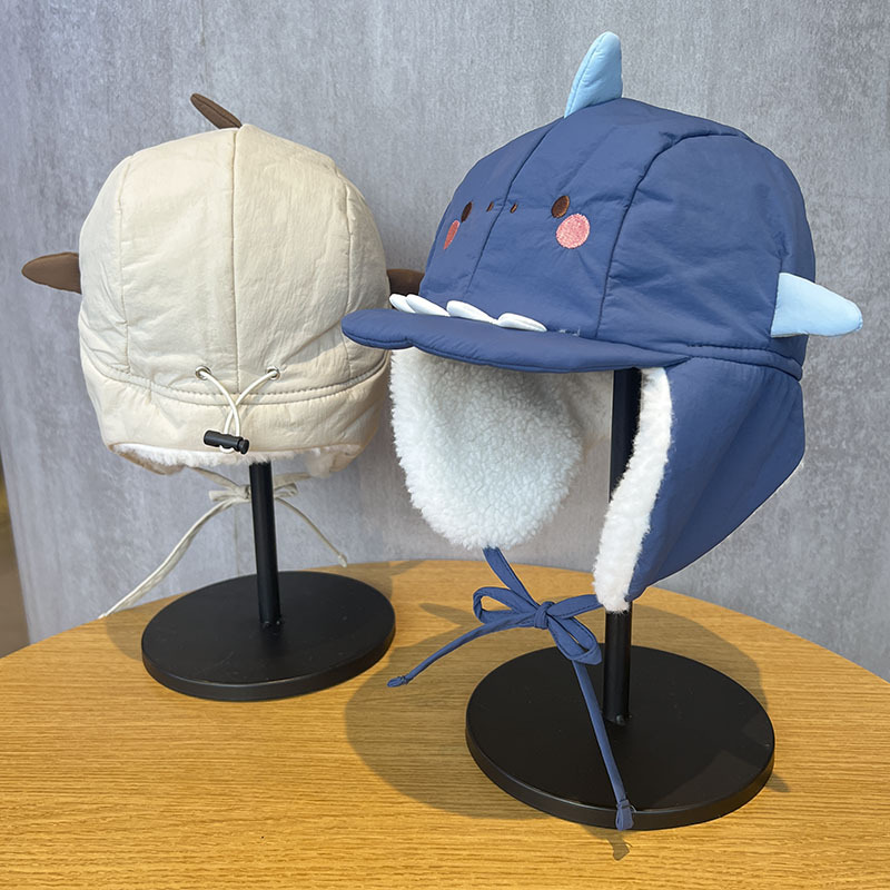 Sombreros para niños de dinosaurio caliente invierno gorras de rayos para bebés casuales lindos gorras de protección de oídos para niños y niñas con gorras de terciopelo