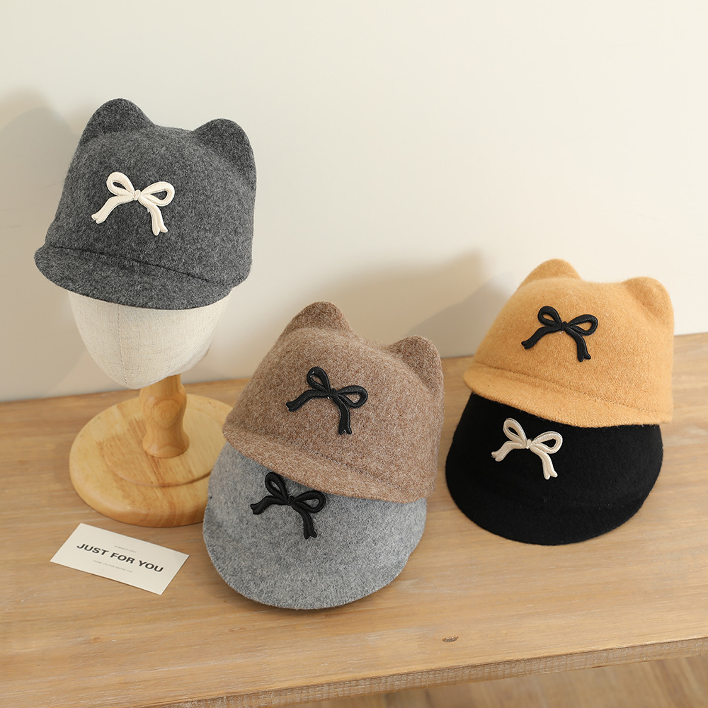 Sombreros para niños otoño y invierno bordados tridimensionales arco corto gorro de niñas gorro de moda británico gorro equestre para bebés masculinos
