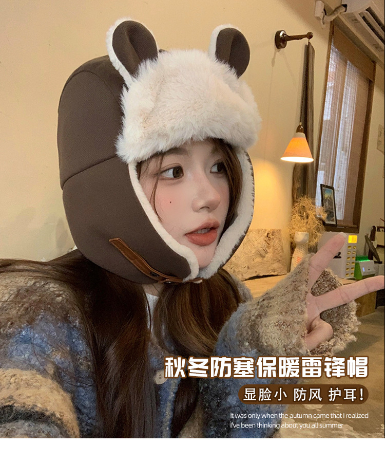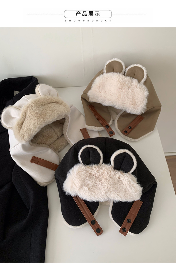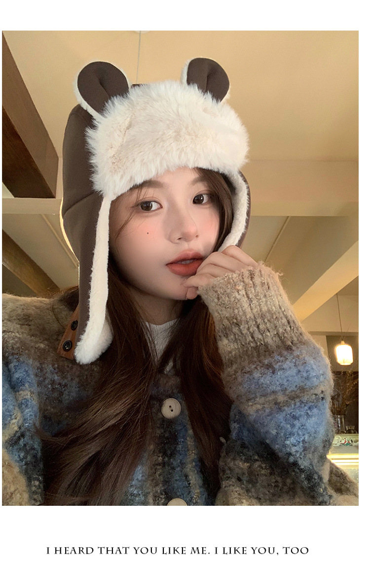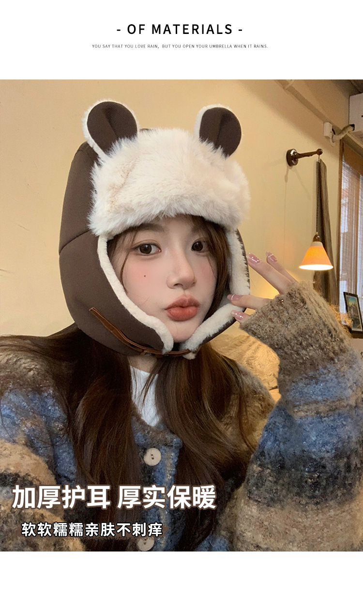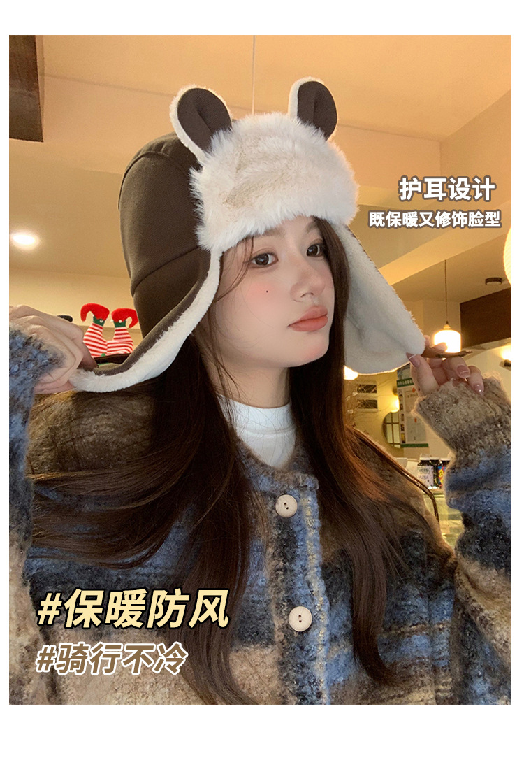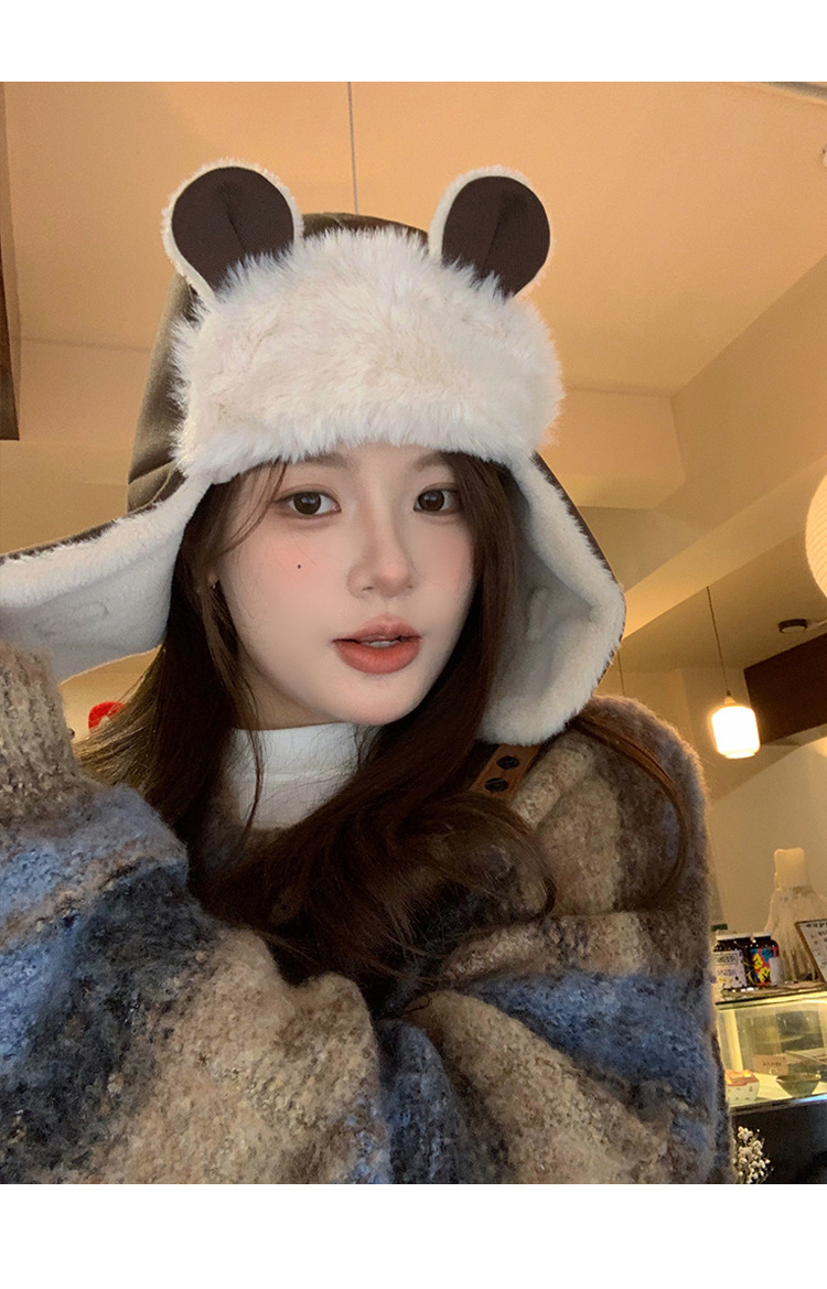 Japón lindos osos gorro de orejas gorro de invierno mujer calentamiento grueso gorro de rayo de vello para montar gorra de algodón de esquí a prueba de viento