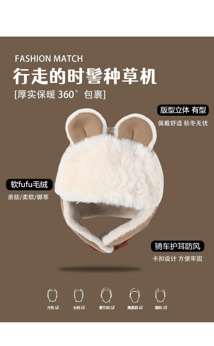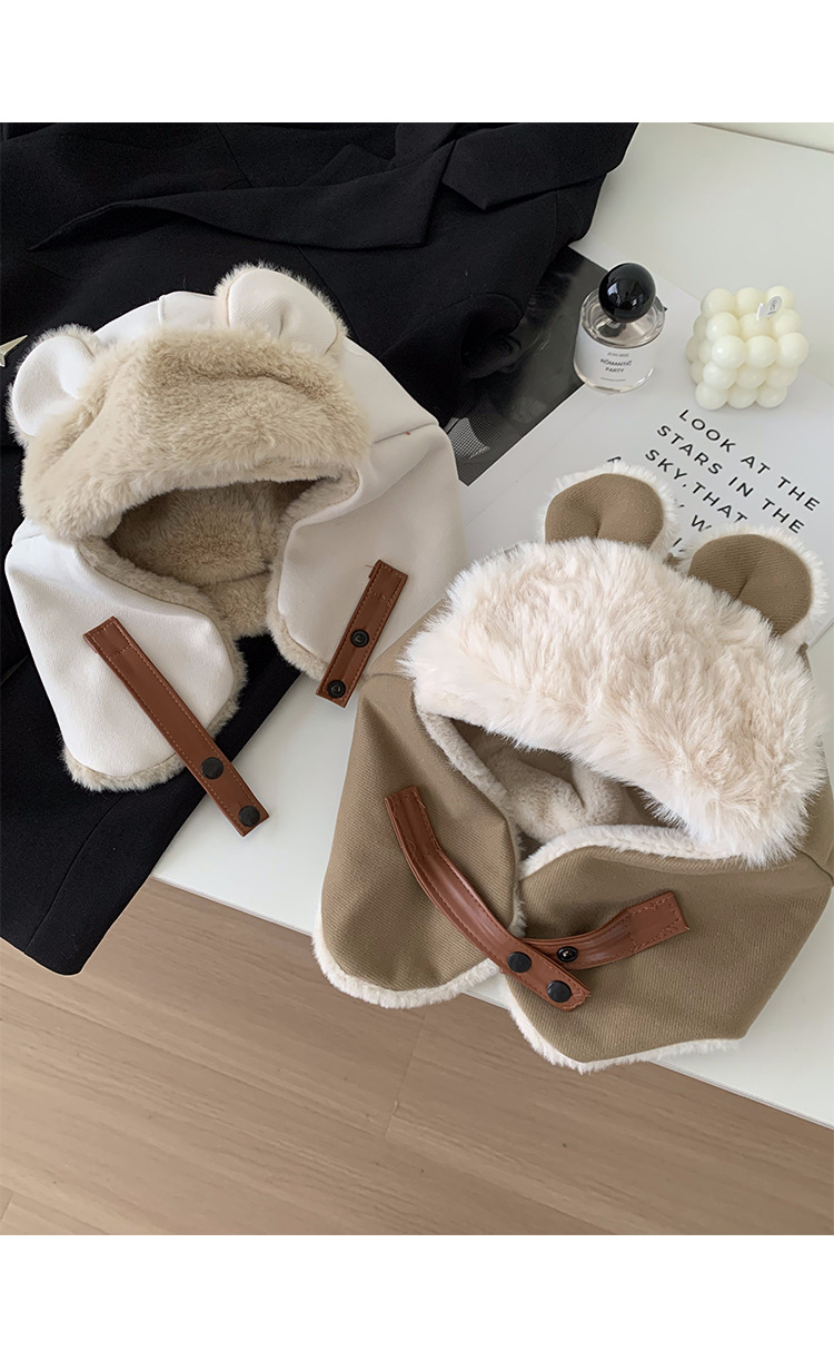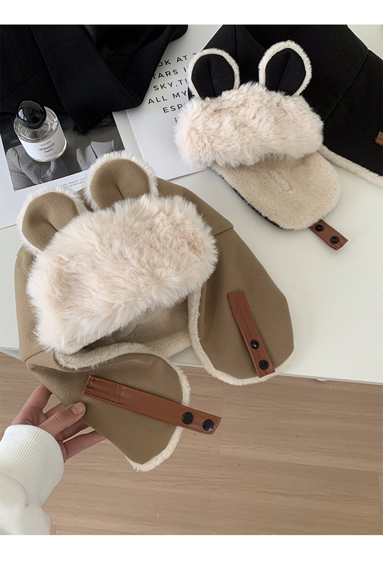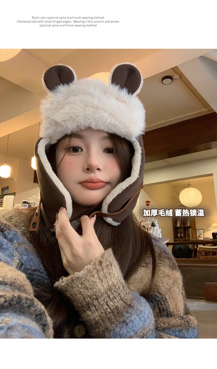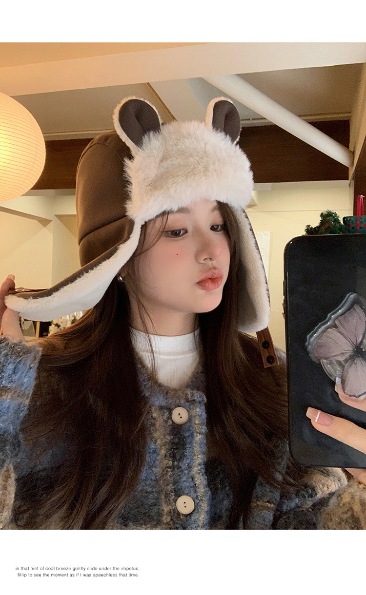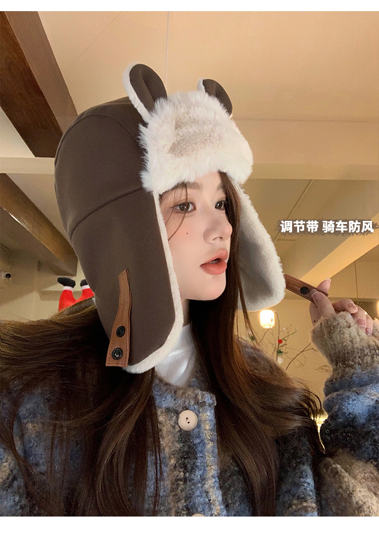 Japón lindos osos gorro de orejas gorro de invierno mujer calentamiento grueso gorro de rayo de vello para montar gorra de algodón de esquí a prueba de viento