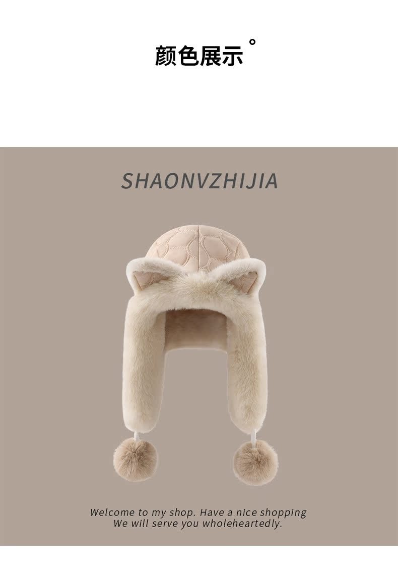 Bonita oreja de zorro, gorra de leifeng, gorra de invierno para mujeres, gorra de cabina caliente a prueba de viento y frío del noreste