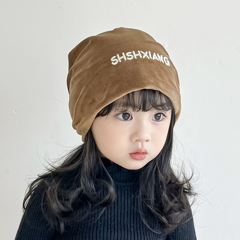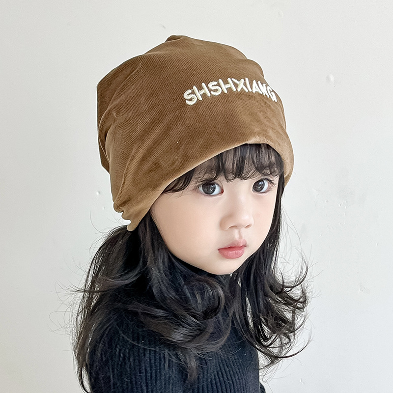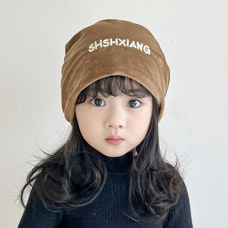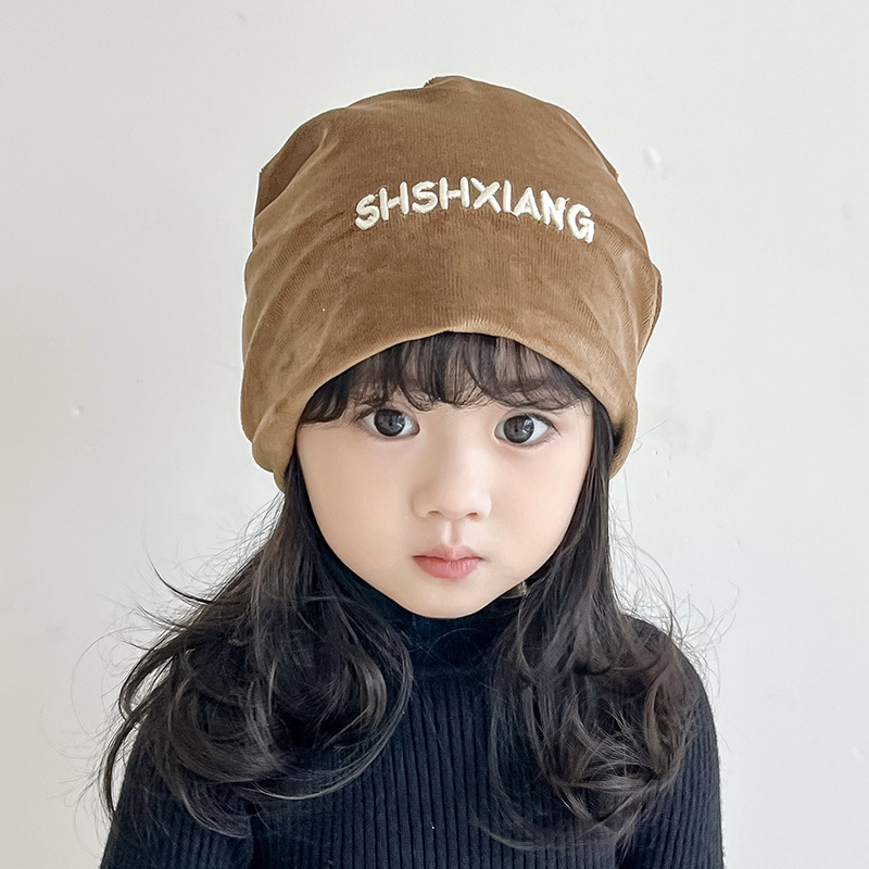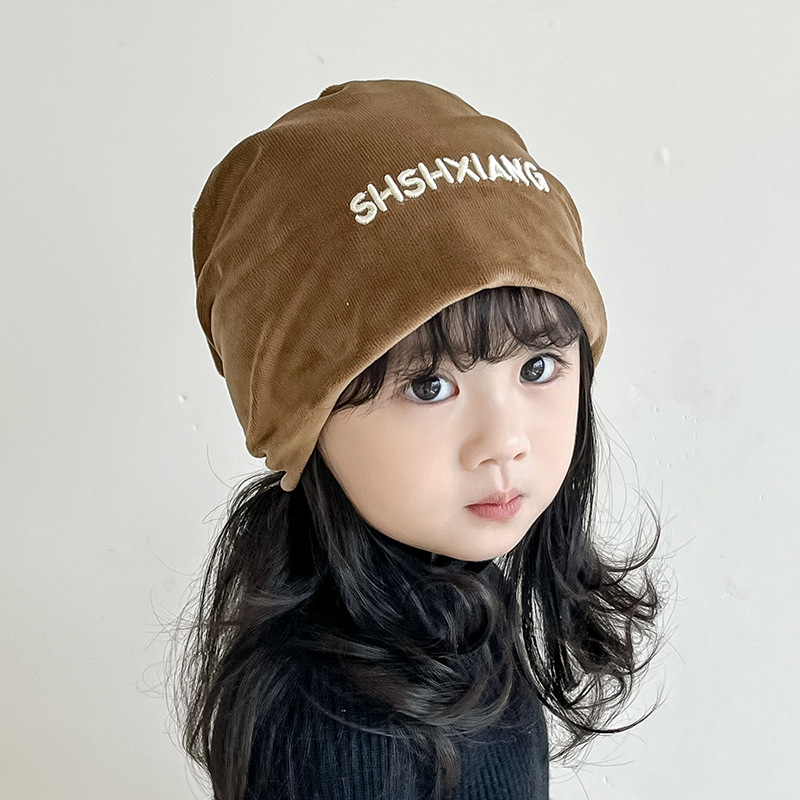 Hombres y niñas sombreros de moda de otoño de algodón húmedo para niños estilo extranjero sombreros de pila de estilo jardín de infantes negros a prueba de viento orejas