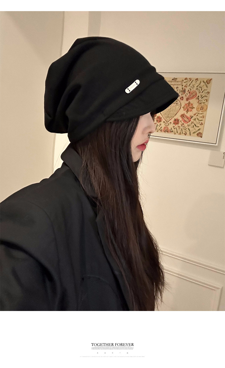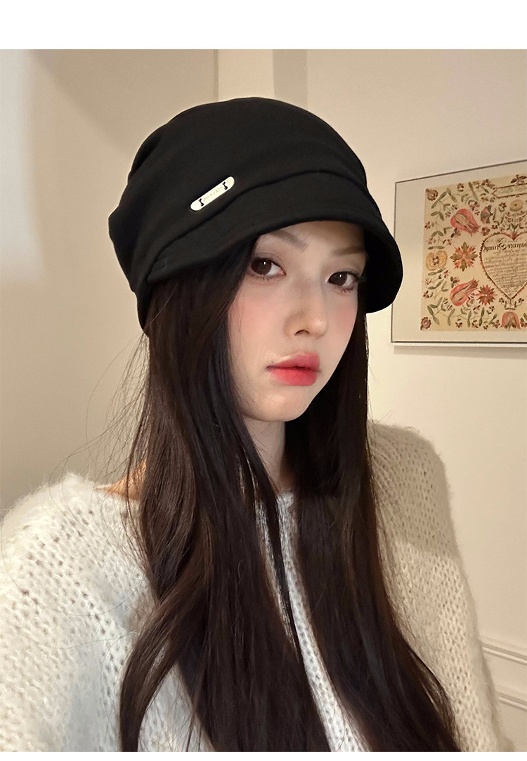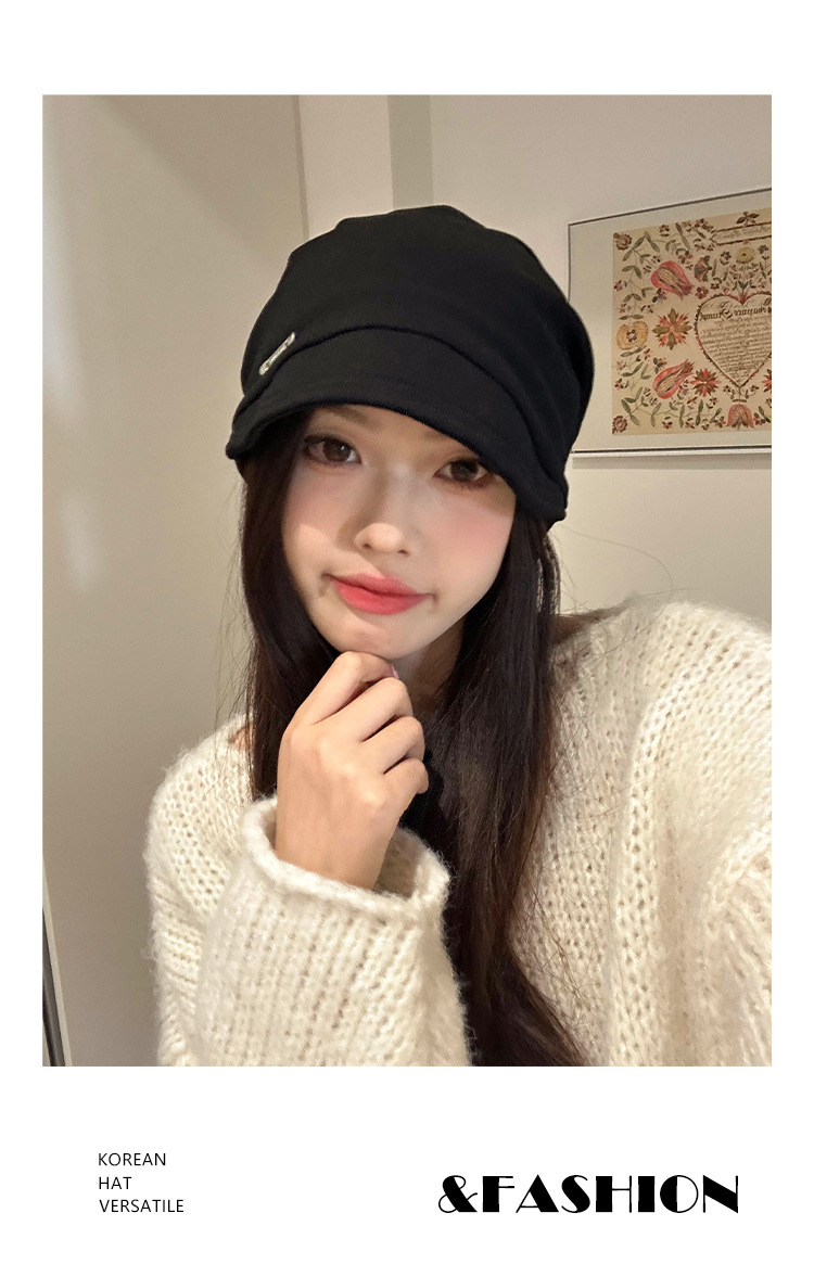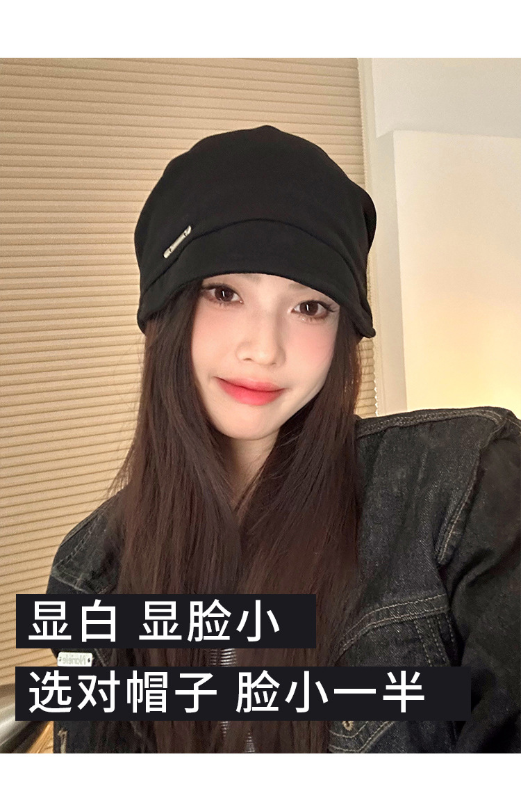 Sombrero japonés de pila de mujeres otoño y invierno simple cara pequeña gorra de cabeza roja red negra moda versátil gorra de luna fría gorra