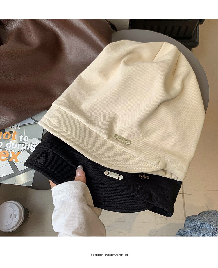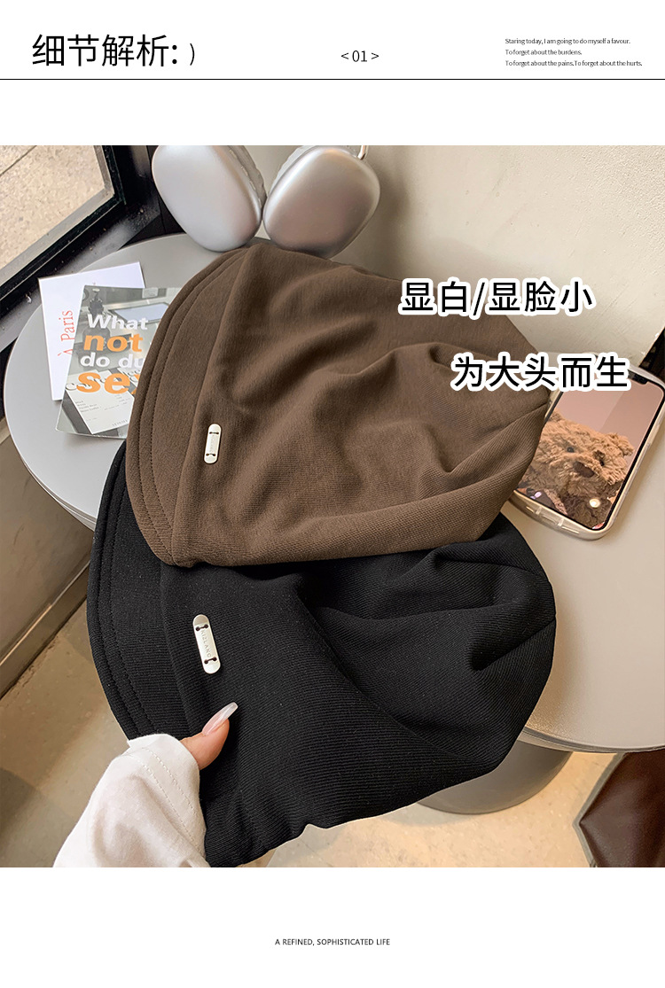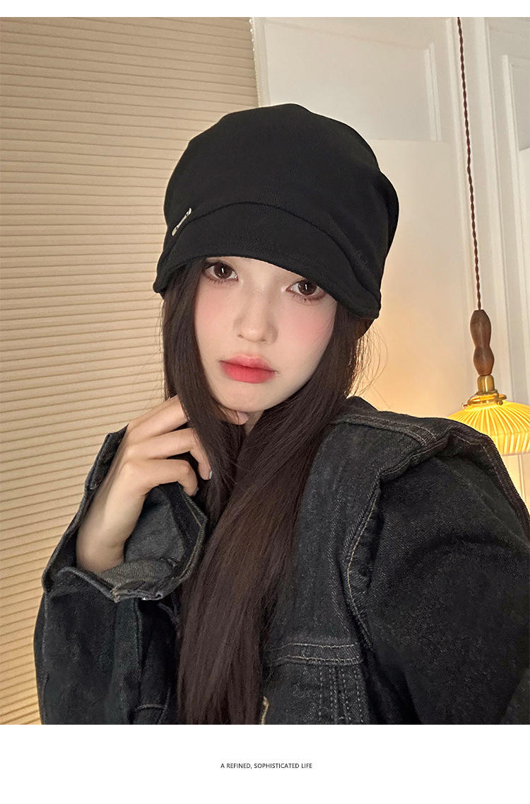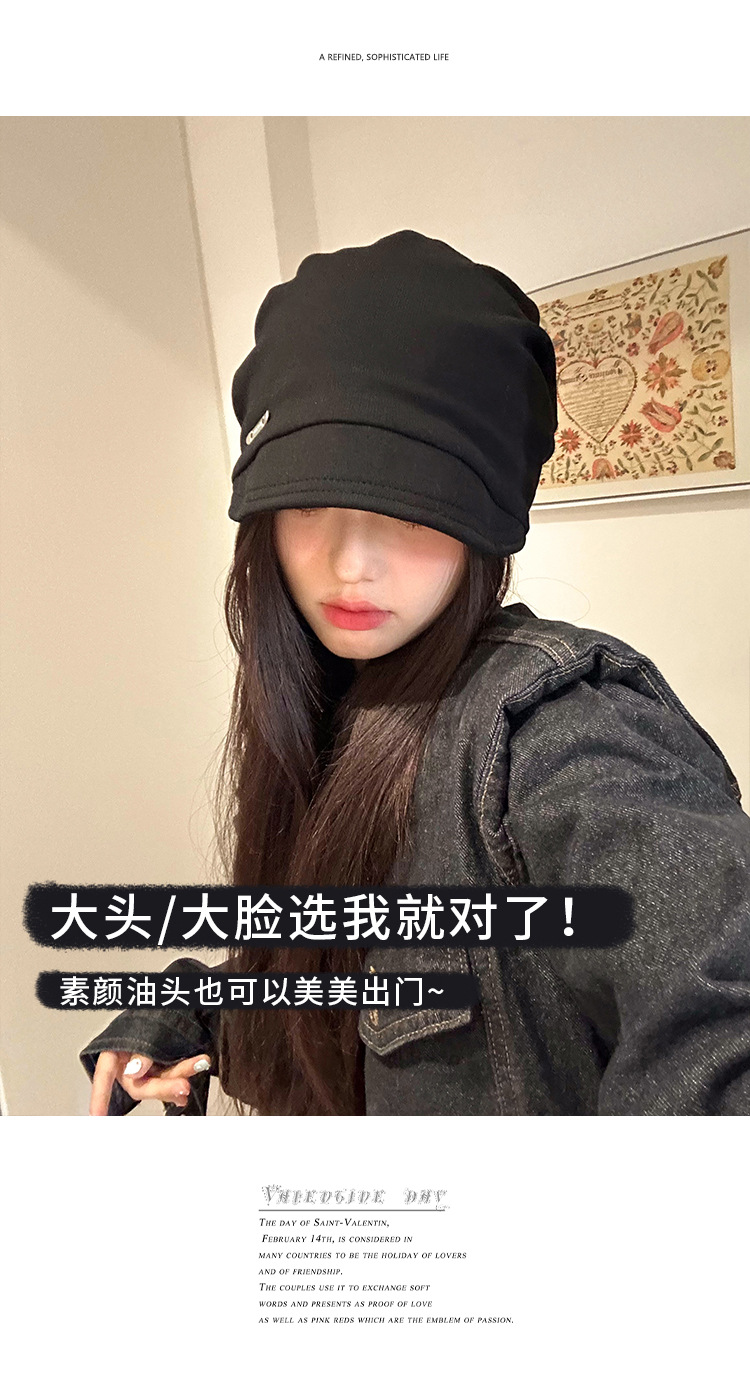 Sombrero japonés de pila de mujeres otoño y invierno simple cara pequeña gorra de cabeza roja red negra moda versátil gorra de luna fría gorra