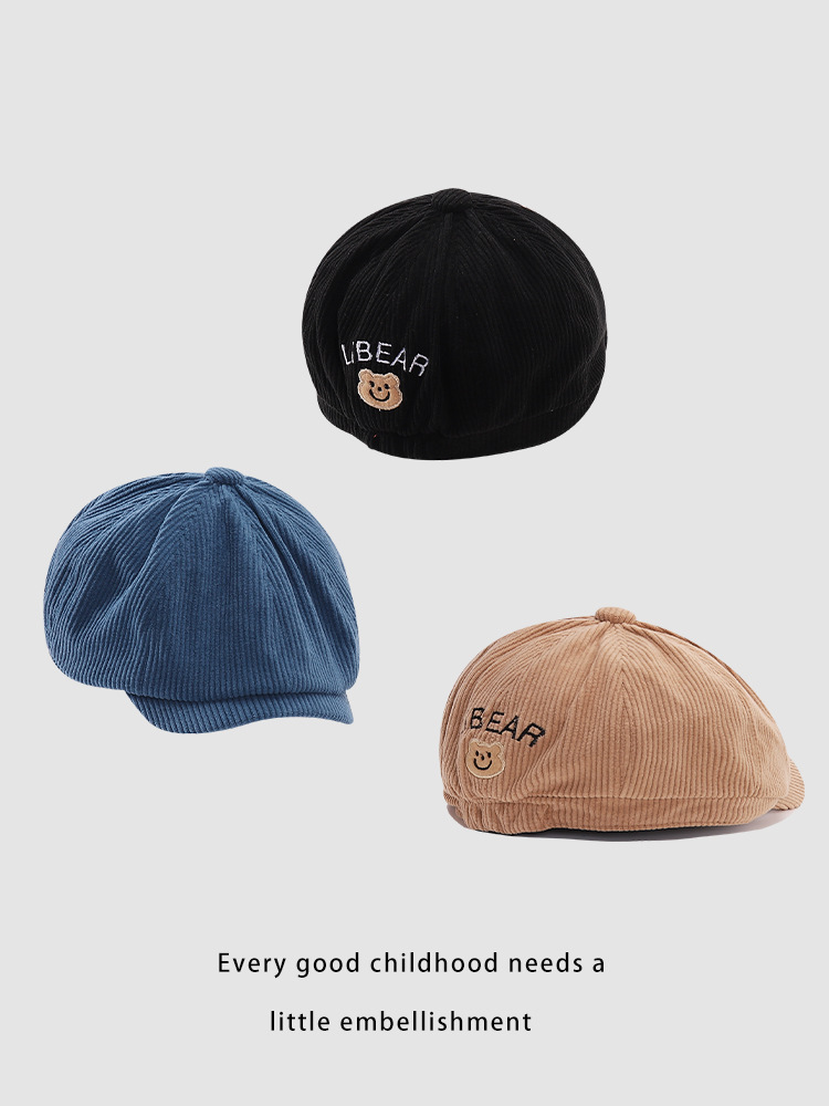 Corea del Sur color sólido corto para niños hacia adelante sombrero marea de color sólido para hombres y mujeres bebés cóncavo sombrero pintor sombrero octogonal