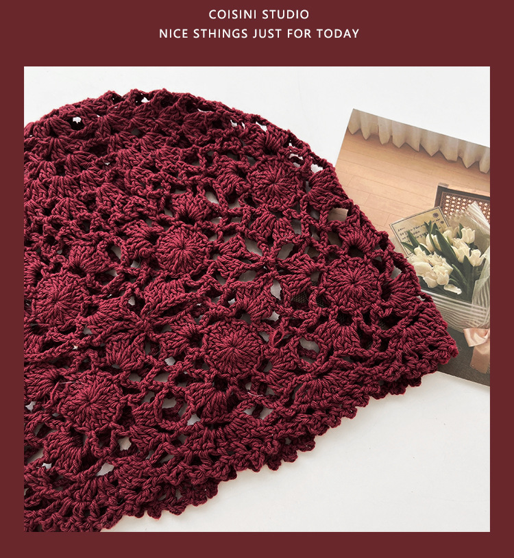 Retro artístico tejido a mano agujero gorra gor