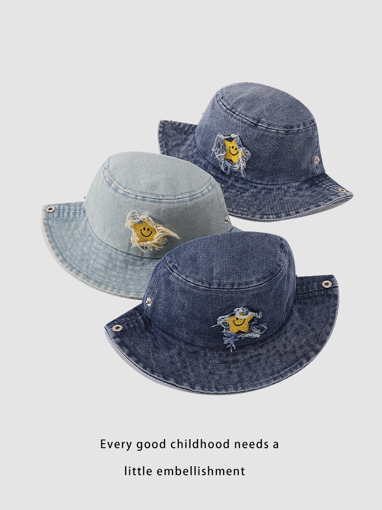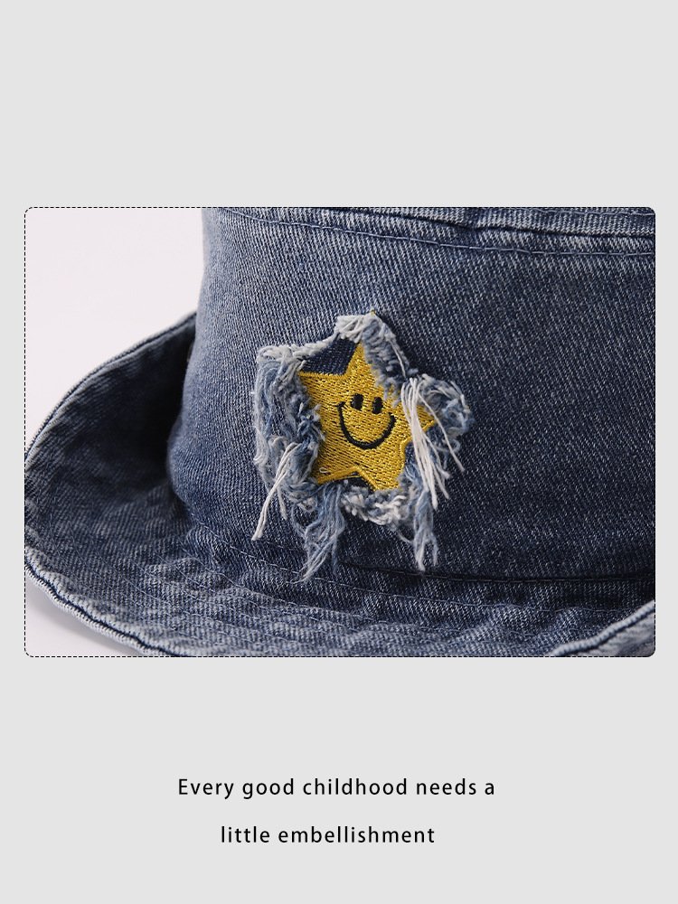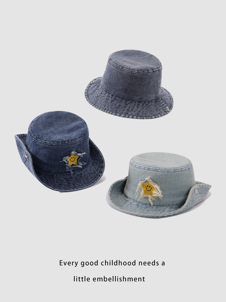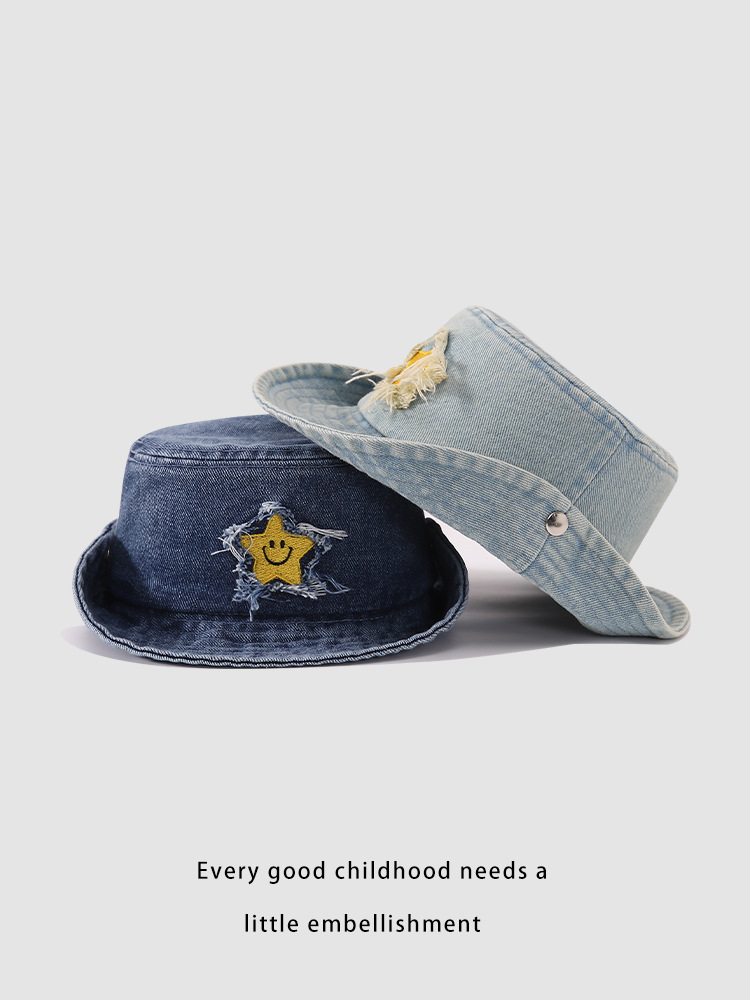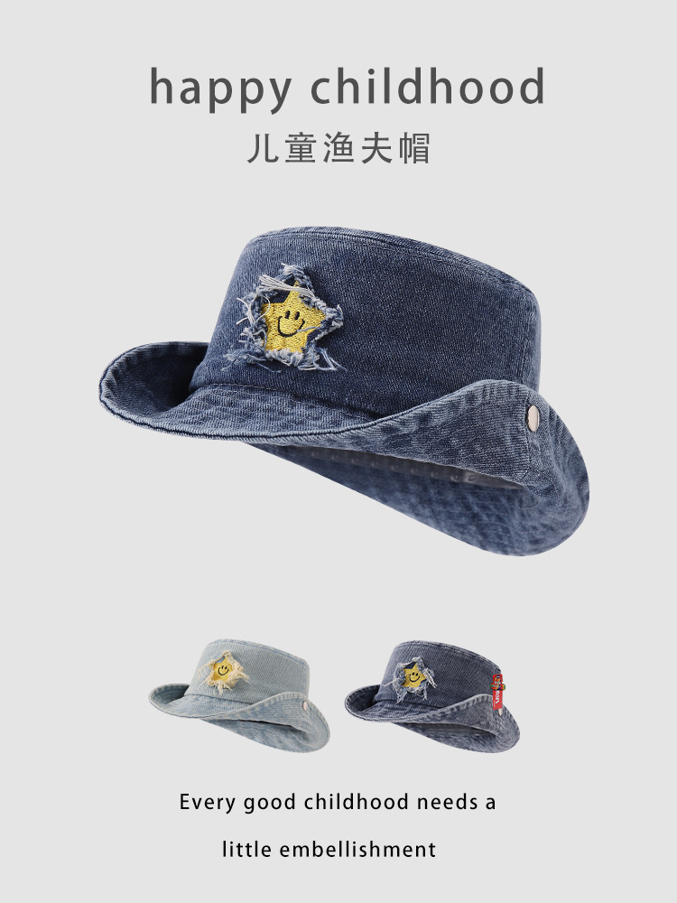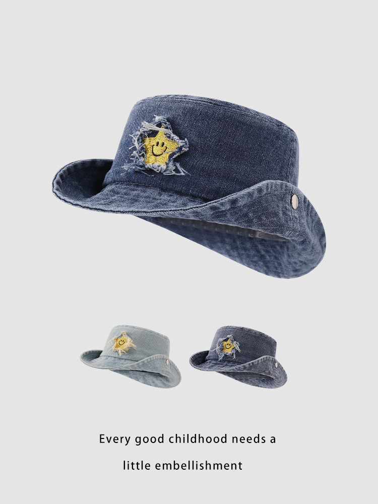 Los vaqueros occidentales personalidad de los niños flanged sombrero pescador primavera y otoño estrellas vaqueros sombrero de camping sombrero de montaña