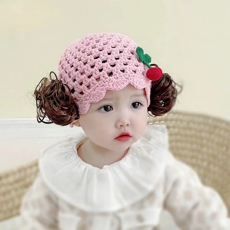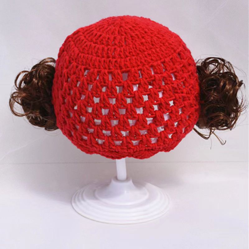 Bebé lindo sombrero peluca de tejido a mano agujero trenzas falsas sombrero bebé suave y cómodo transpirable 0 - 2 años
