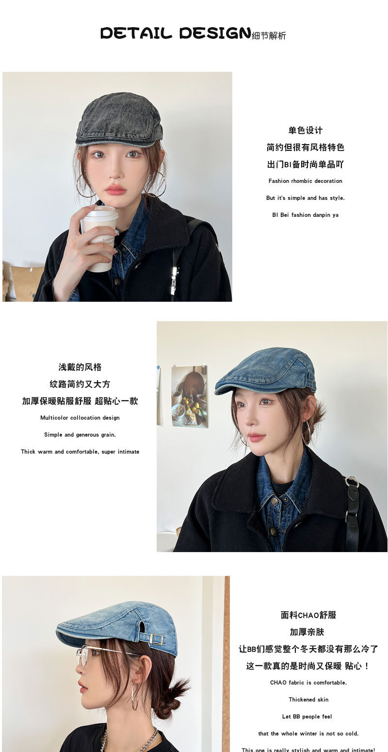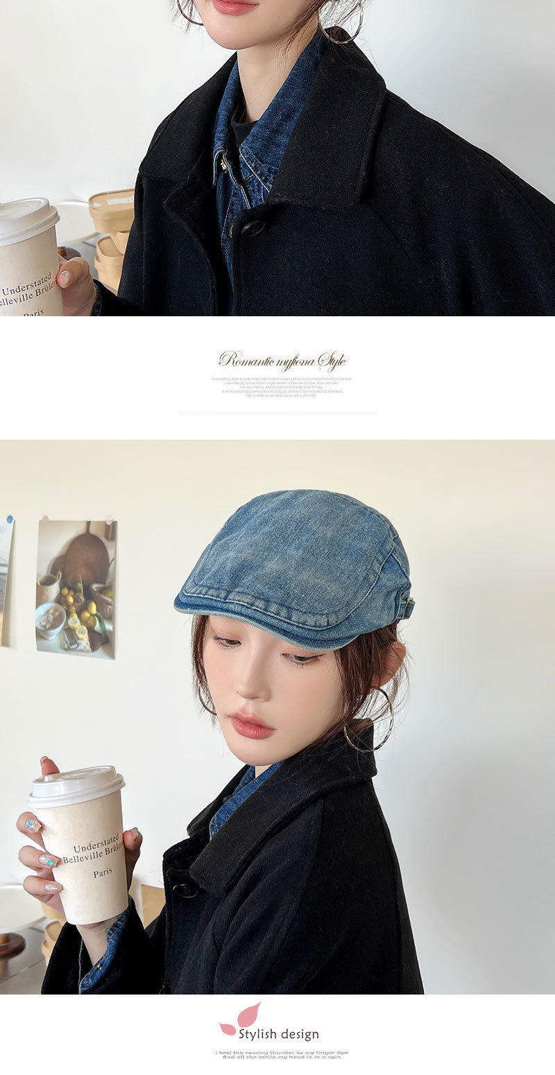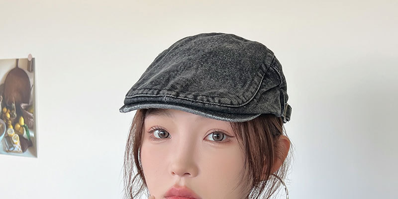 Mujeres primavera y verano muestran cara pequeña con gorra de boina de lengua de pato, gorra de vaquero coreana retro lavada con agua.