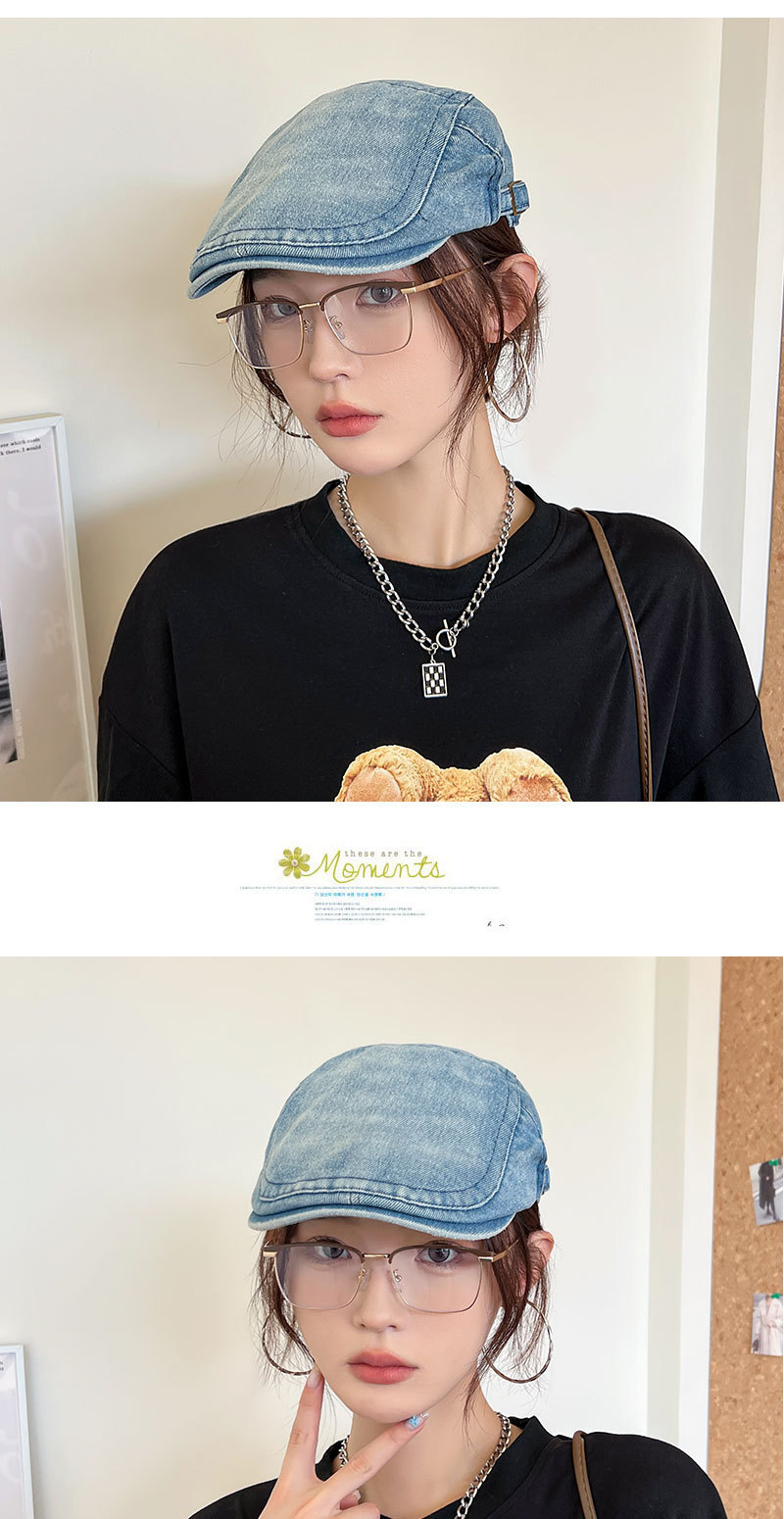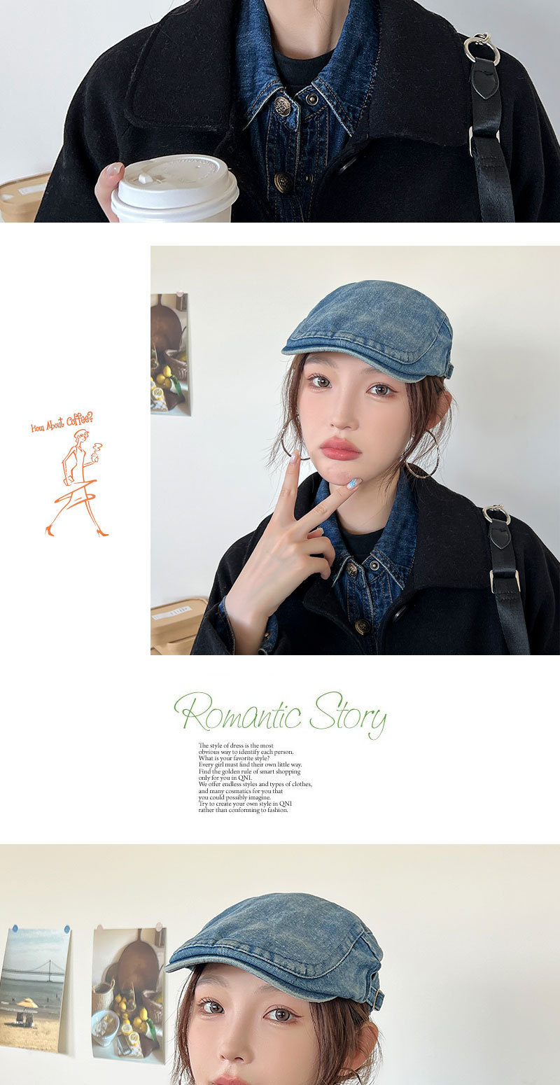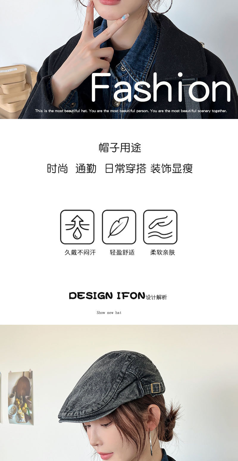 Mujeres primavera y verano muestran cara pequeña con gorra de boina de lengua de pato, gorra de vaquero coreana retro lavada con agua.