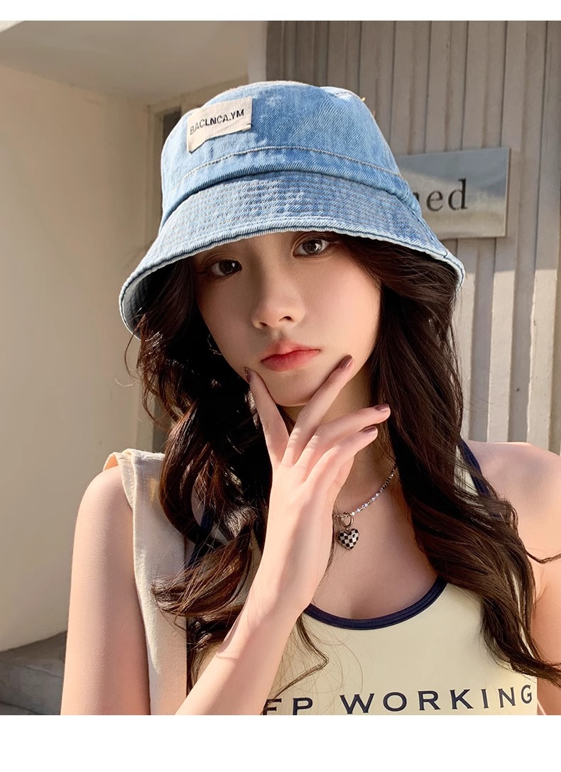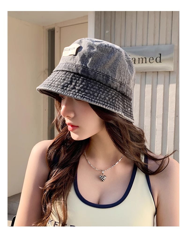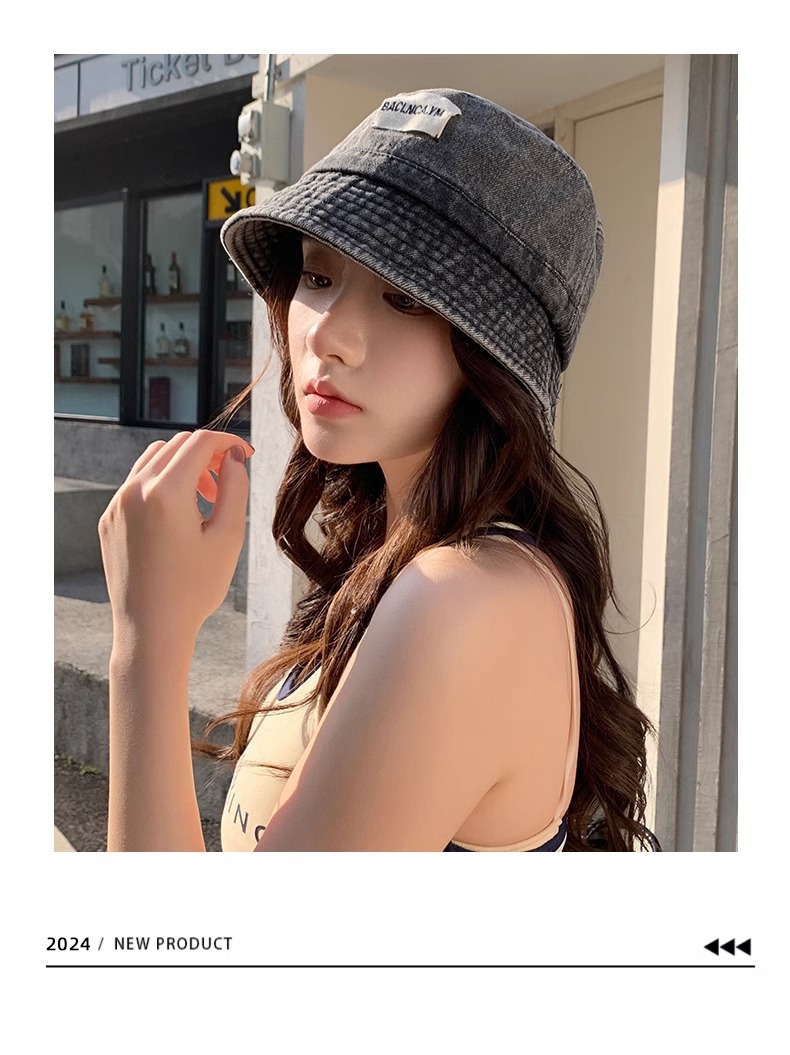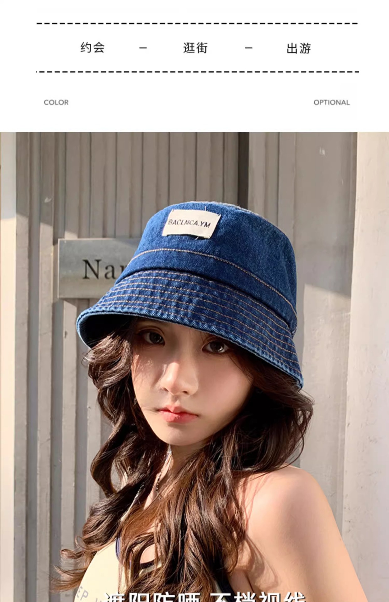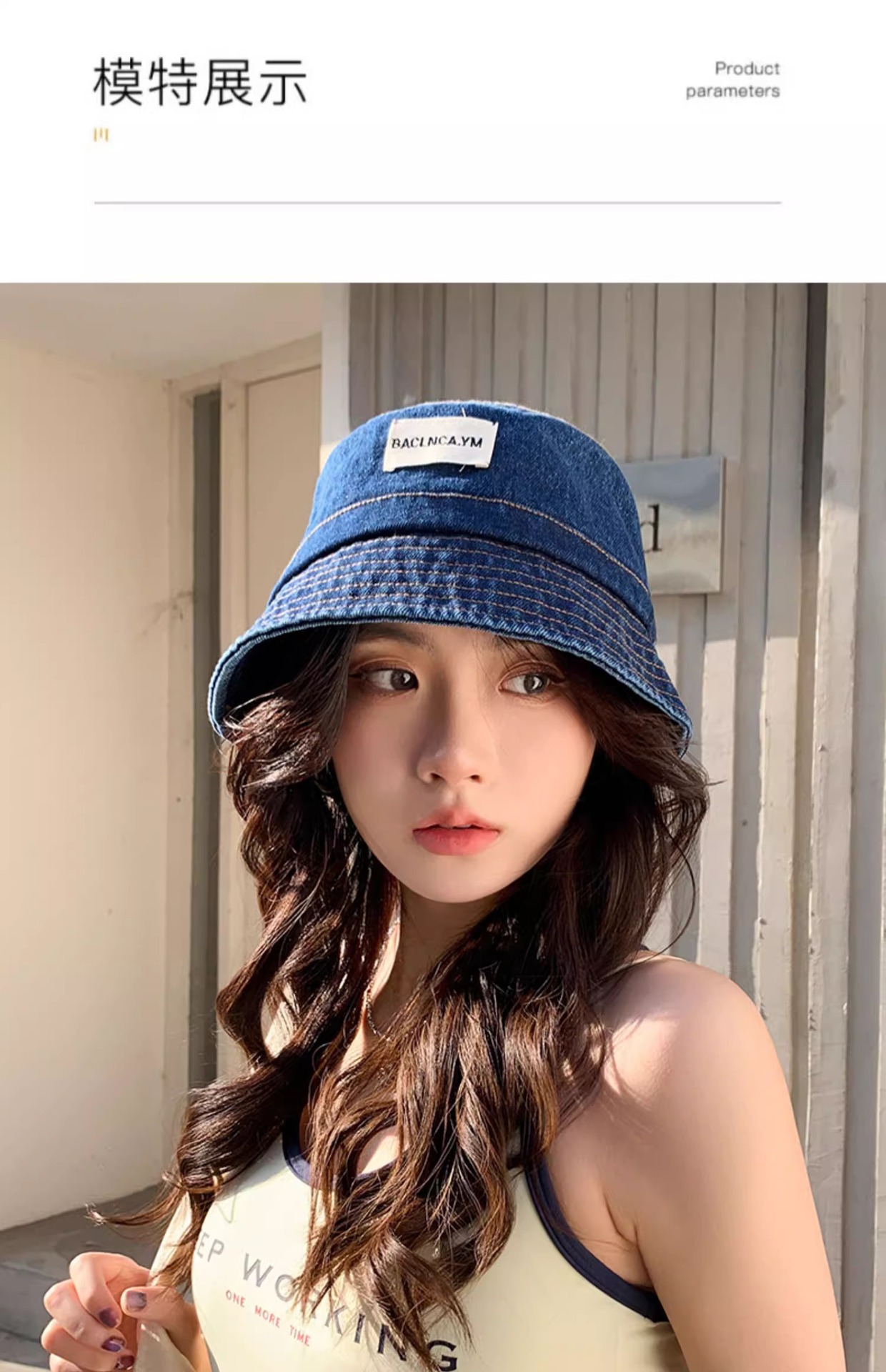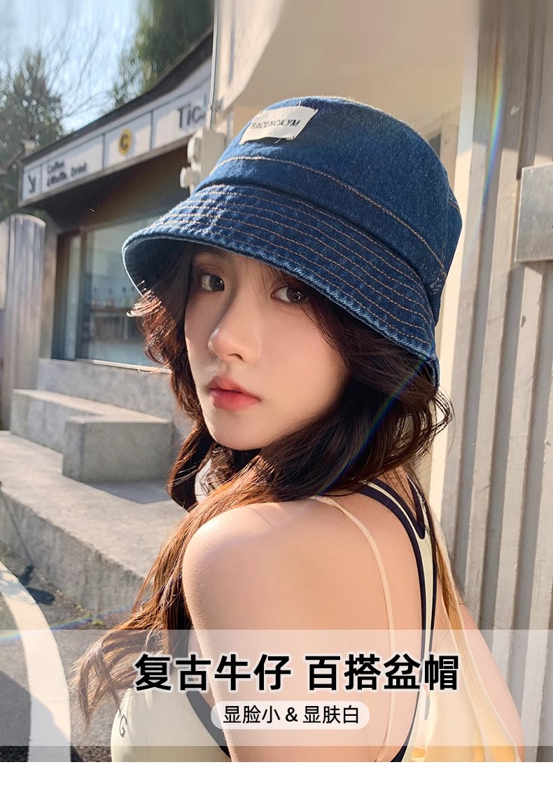 Sombrero coreano sombrero pescador sombrero primavera y otoño sombrero protector solar de la cara simple sombrero antiguo multifacético retró mostrando la cara pequeño sombrero de vaquín lavable