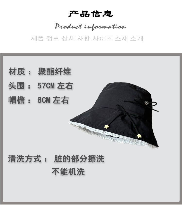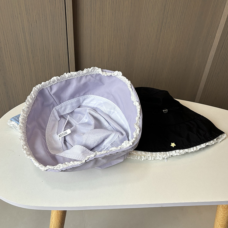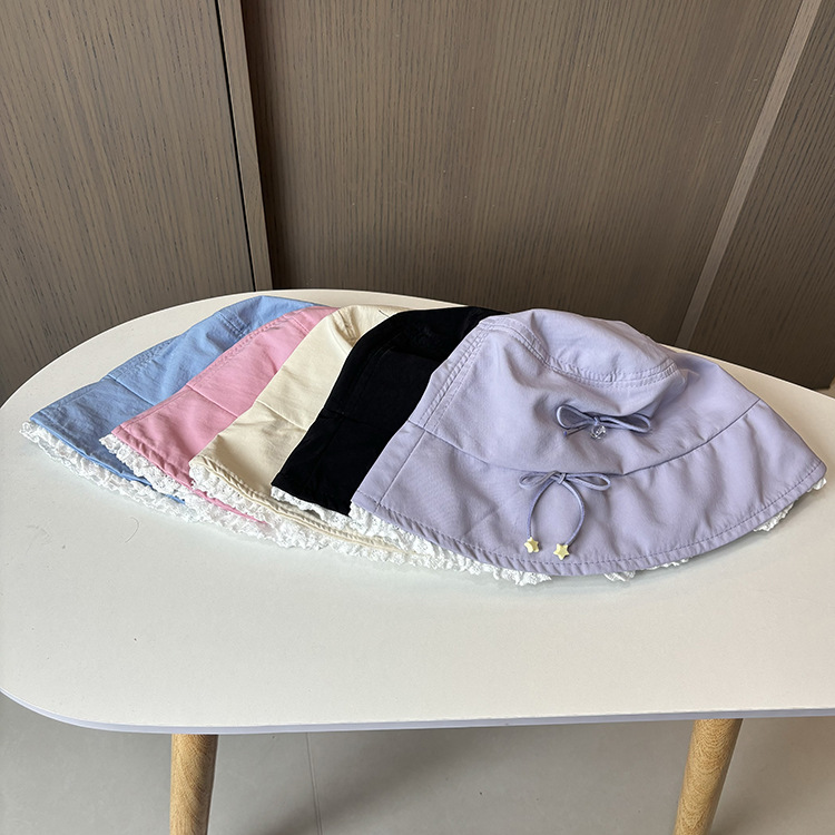 Sombrero de pescador de color sólido para mujeres primavera y otoño dulce lindo encaje arco gorra de cubo callejera cara pequeña gorra de bacon grande