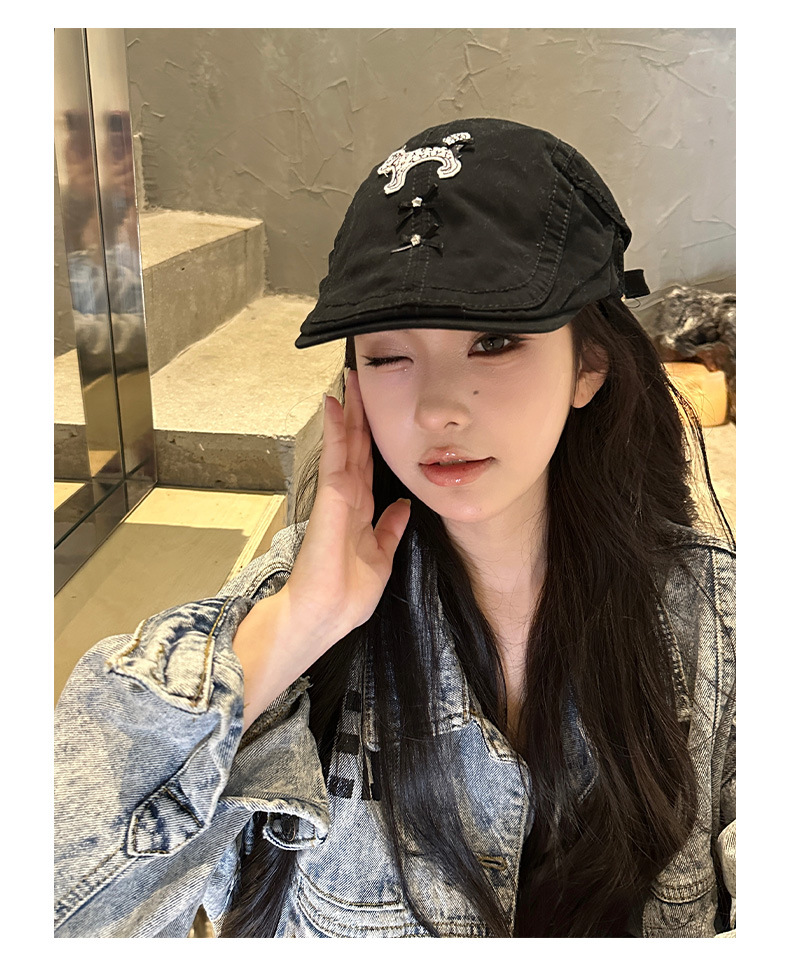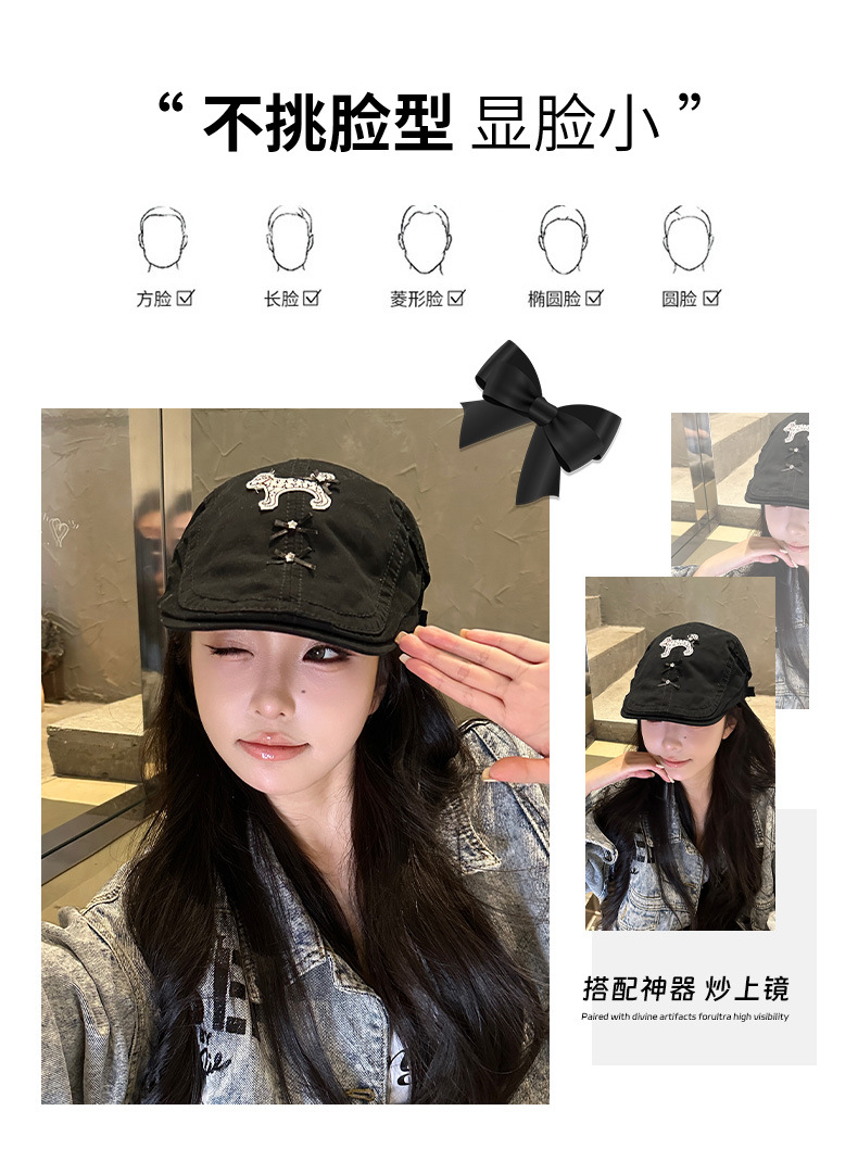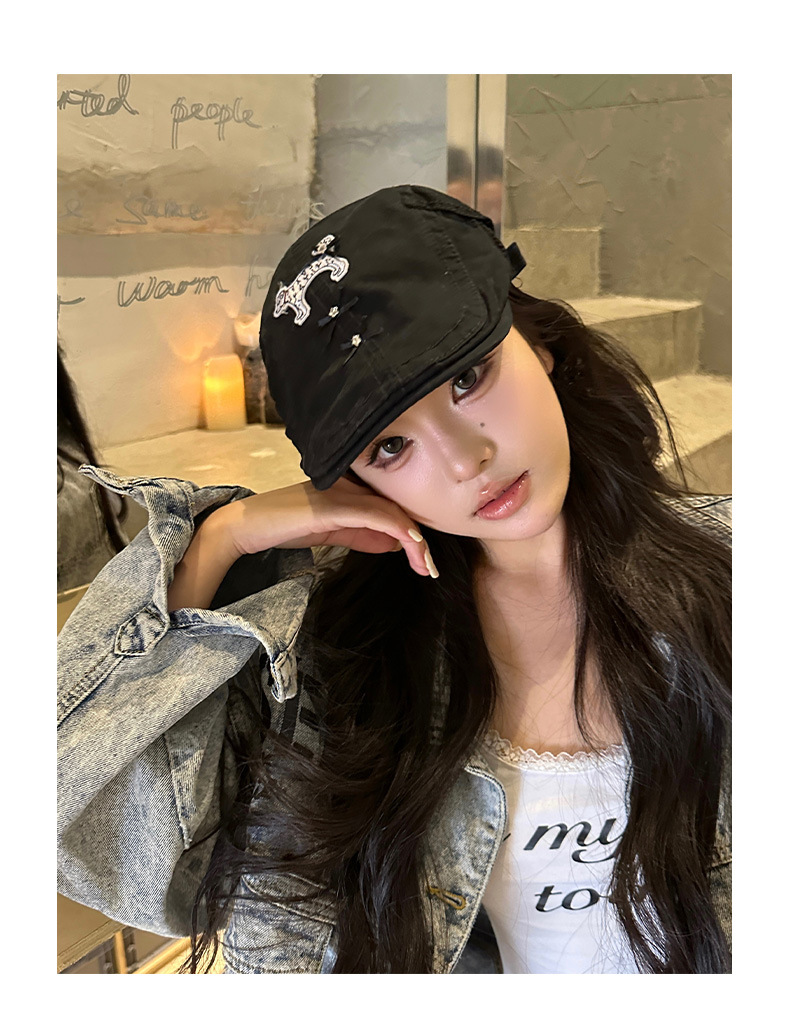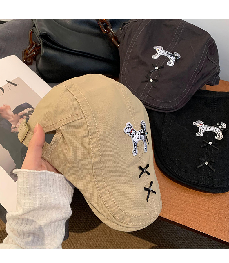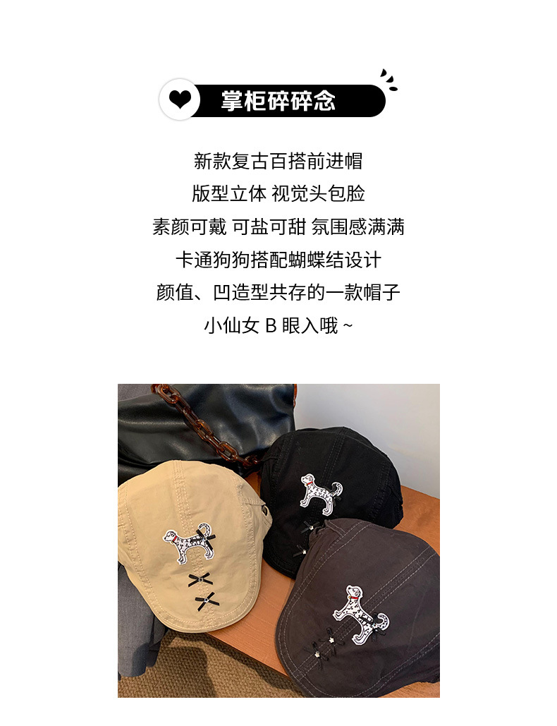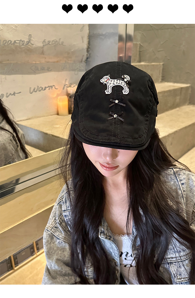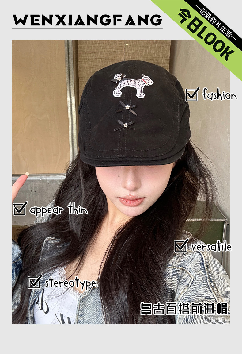 Cute perro negro anti-avance sombrero coreano in nicho diseño de cabeza grande cara pequeña boina verano