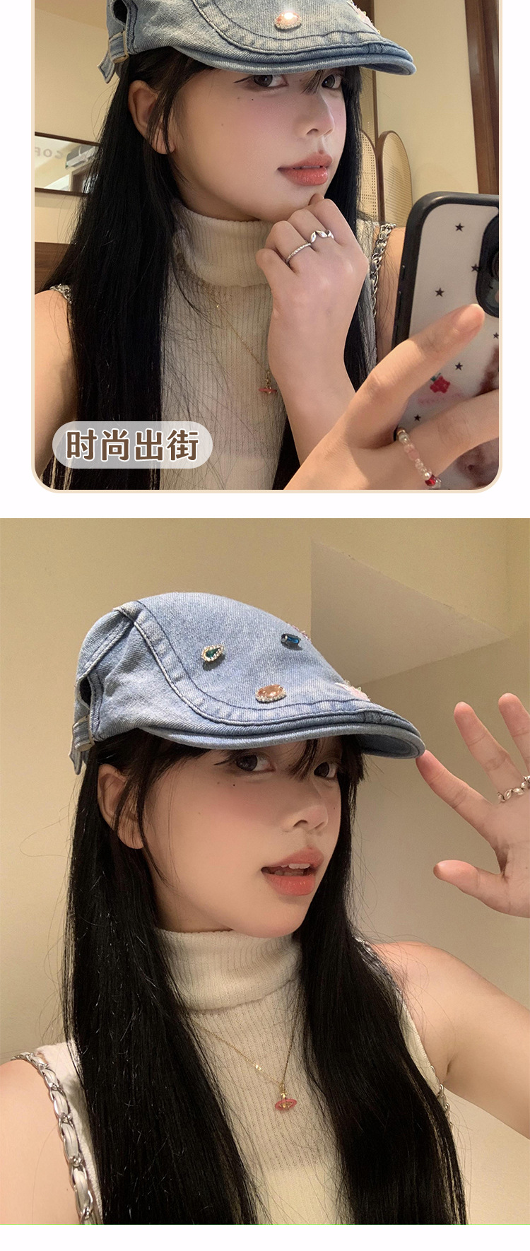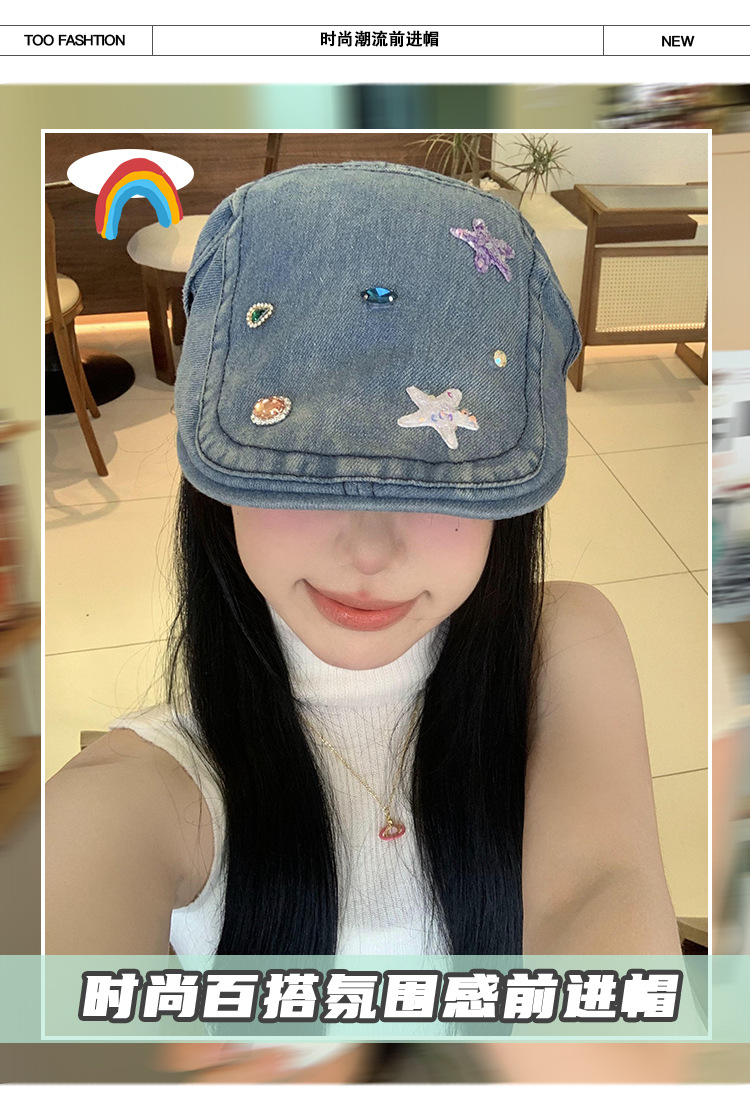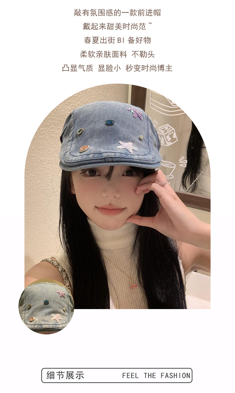 Lavados con agua vaquero hacia adelante sombrero mujer verano nuevo estilo retro hacer vieja cara pequeña boina y2k gran chaqueta sombrero de moda