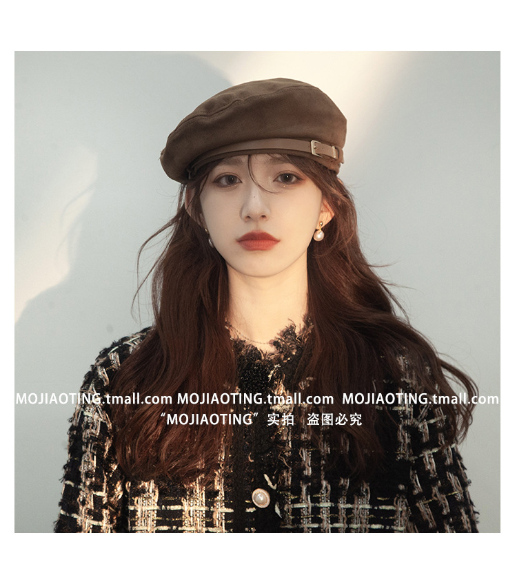 Gran Bretaña botón de cinturón boina nicho mujer de seda japonés retro boina inns red artista sombrero de moda