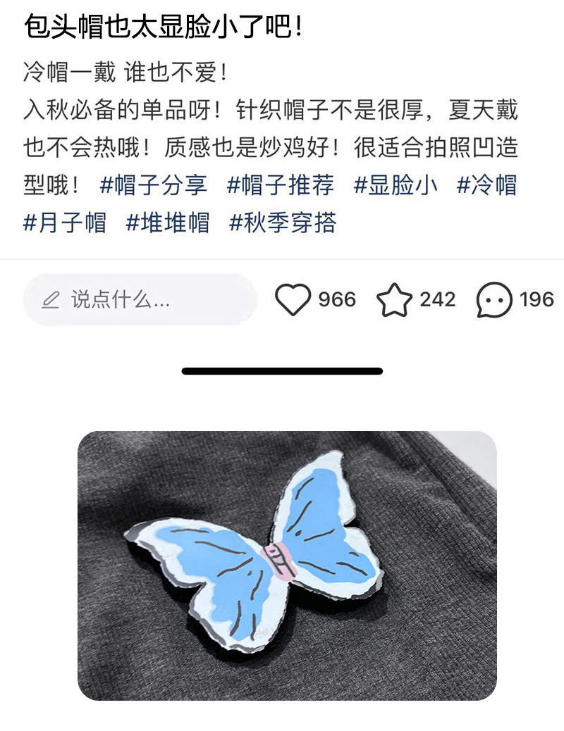 2024 nuevo gran cinturón de cabeza desmontable sombrero de mariposa tridimensional mujer dulce cool multifuncional sombrero frío mostrando la cara pequeña sombrero pila