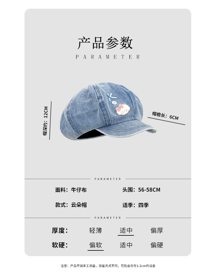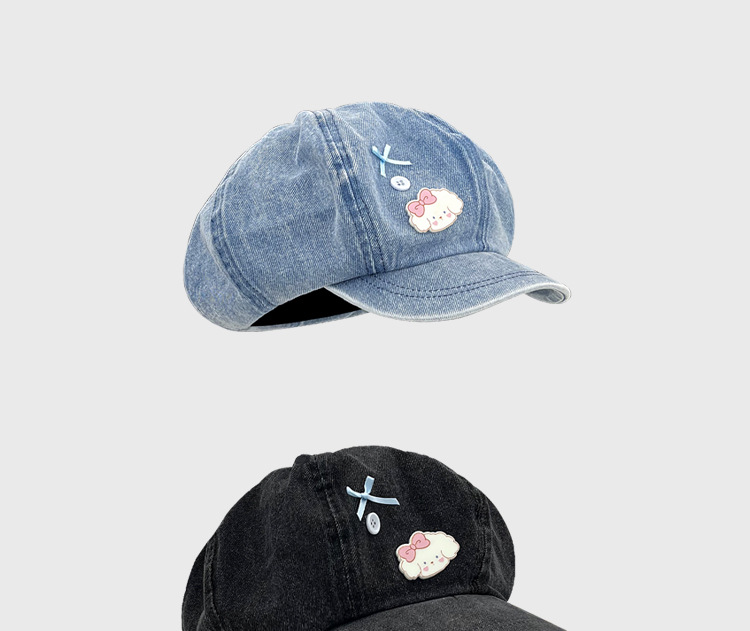 Coreano lindo perro arco vaquero sombrero nube para mujeres primavera y otoño nuevo estilo de cabeza grande dulce octogonal sombrero pintor