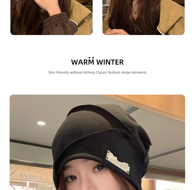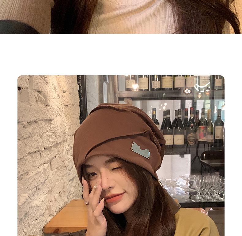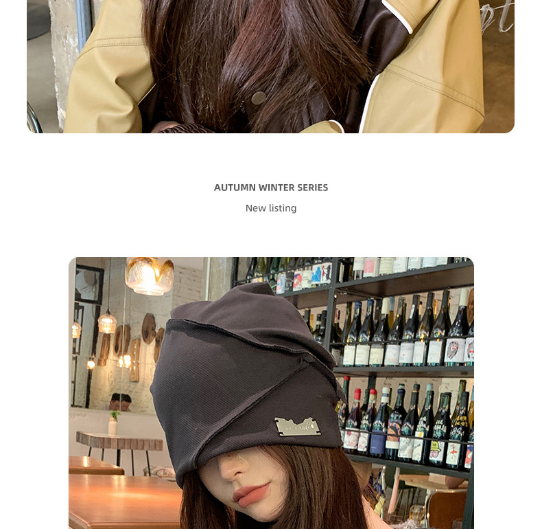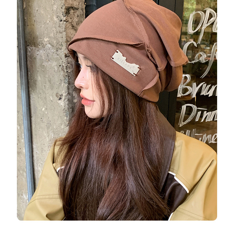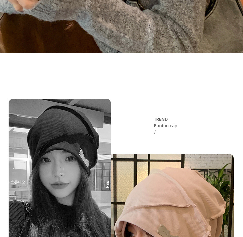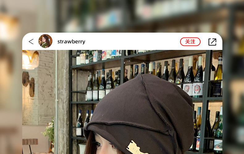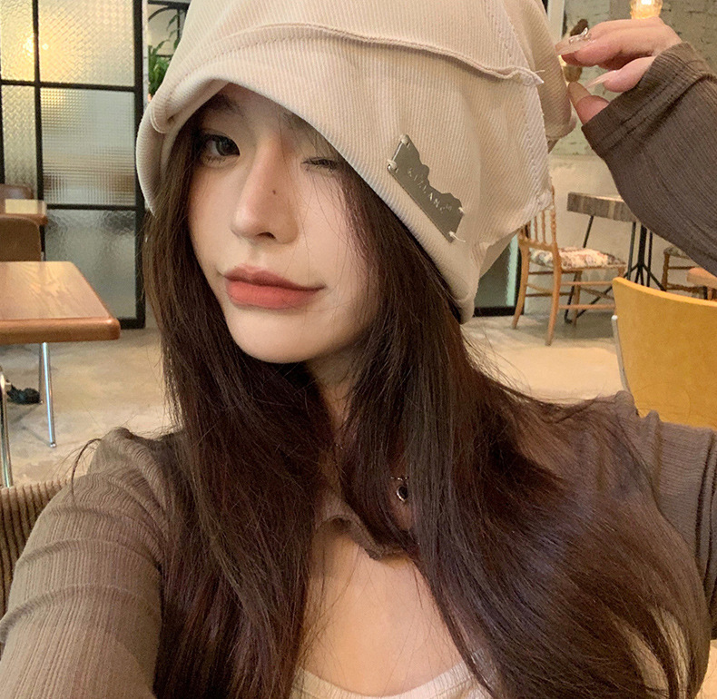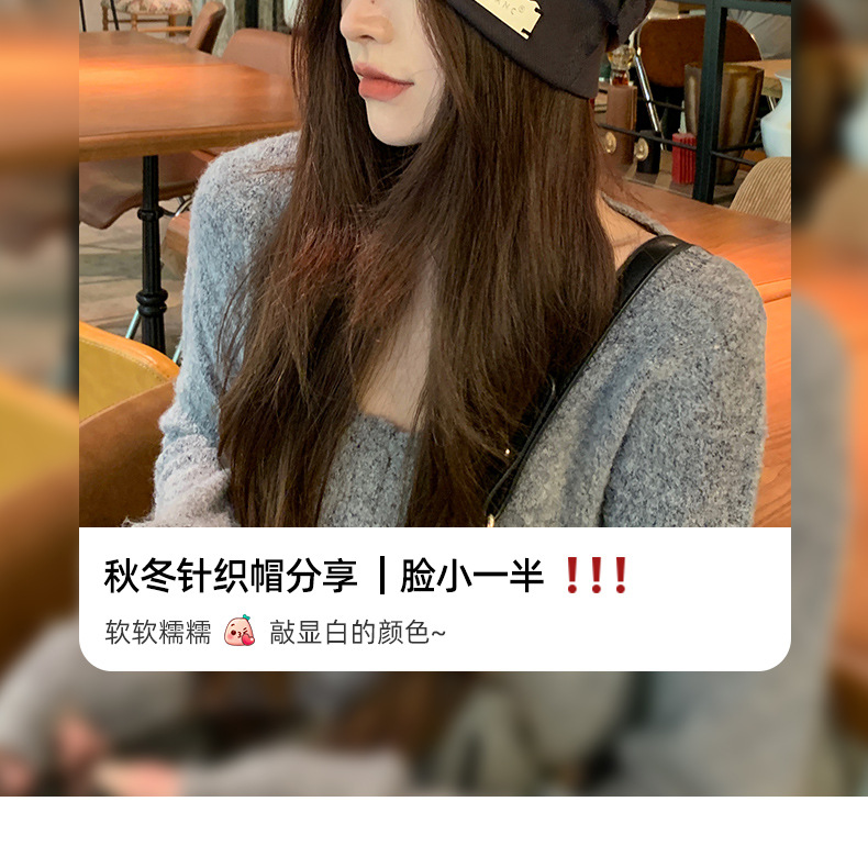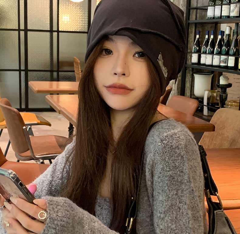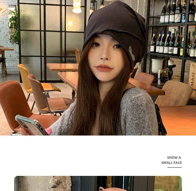 Mostrar cara pequeña pila sombrero mujer primavera y otoño versátil callejera celebridad de la moda de punto sombrero frío de otoño y invierno gorra de cabeza grande
