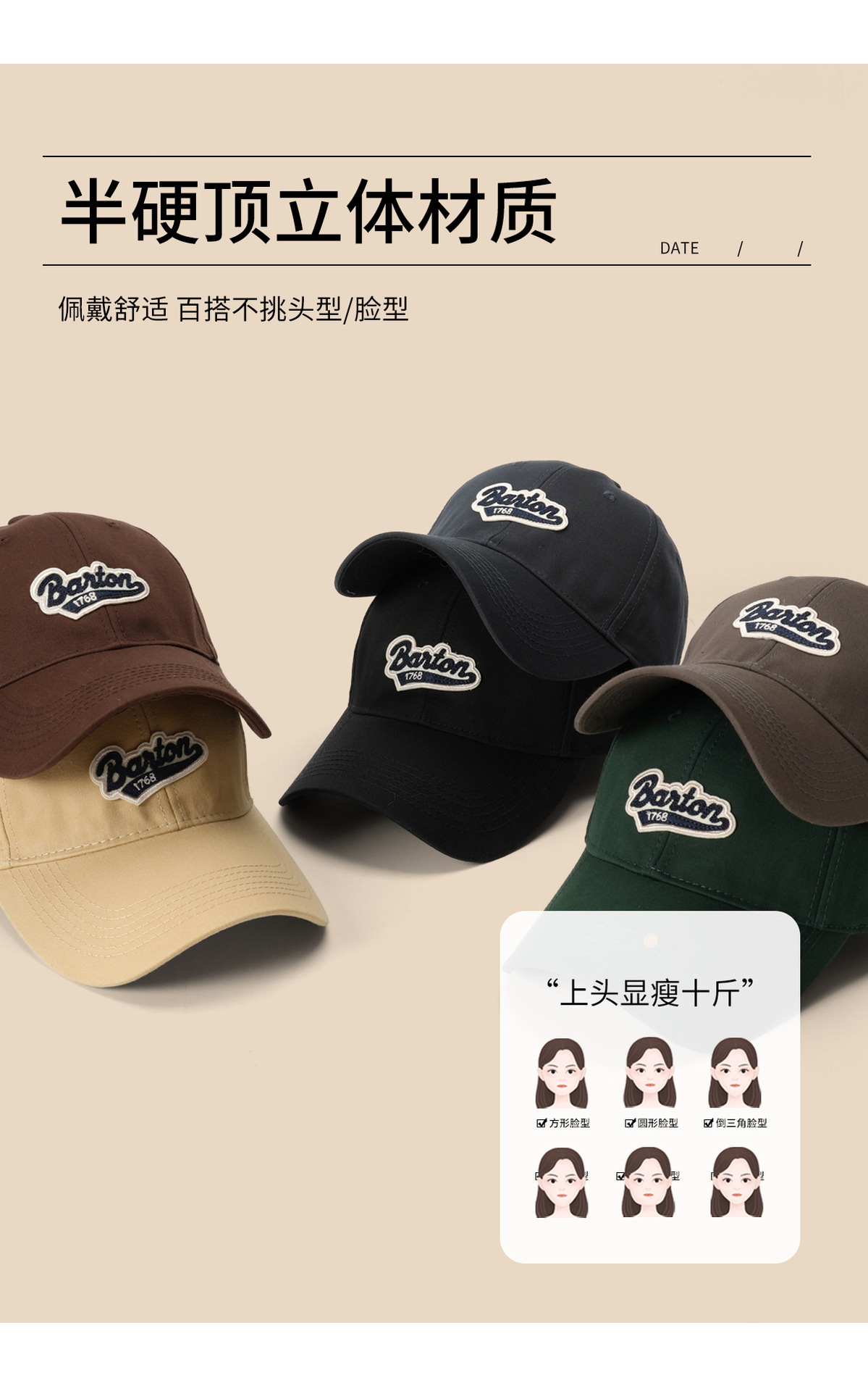 Primavera y verano sombrero de béisbol largo sombrero negro americano medio duro sombrero de boca de pato cara redonda adecuada sombrero