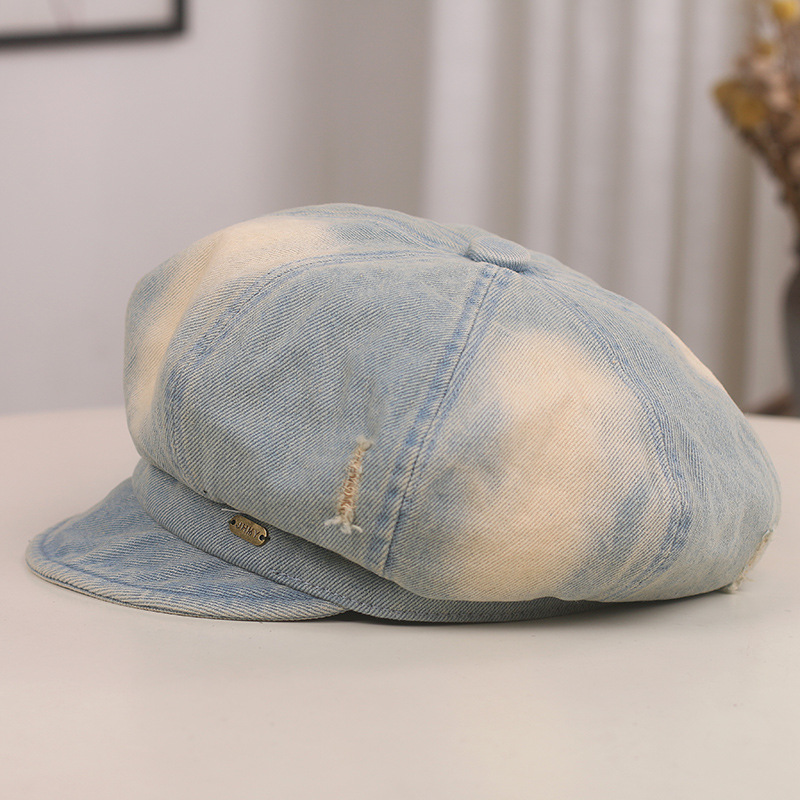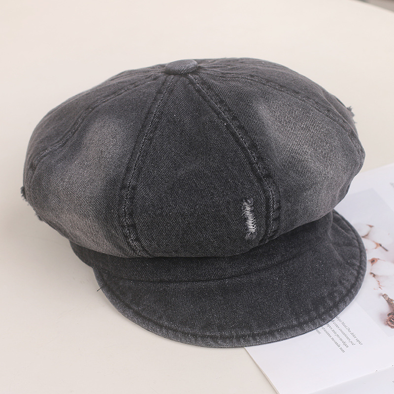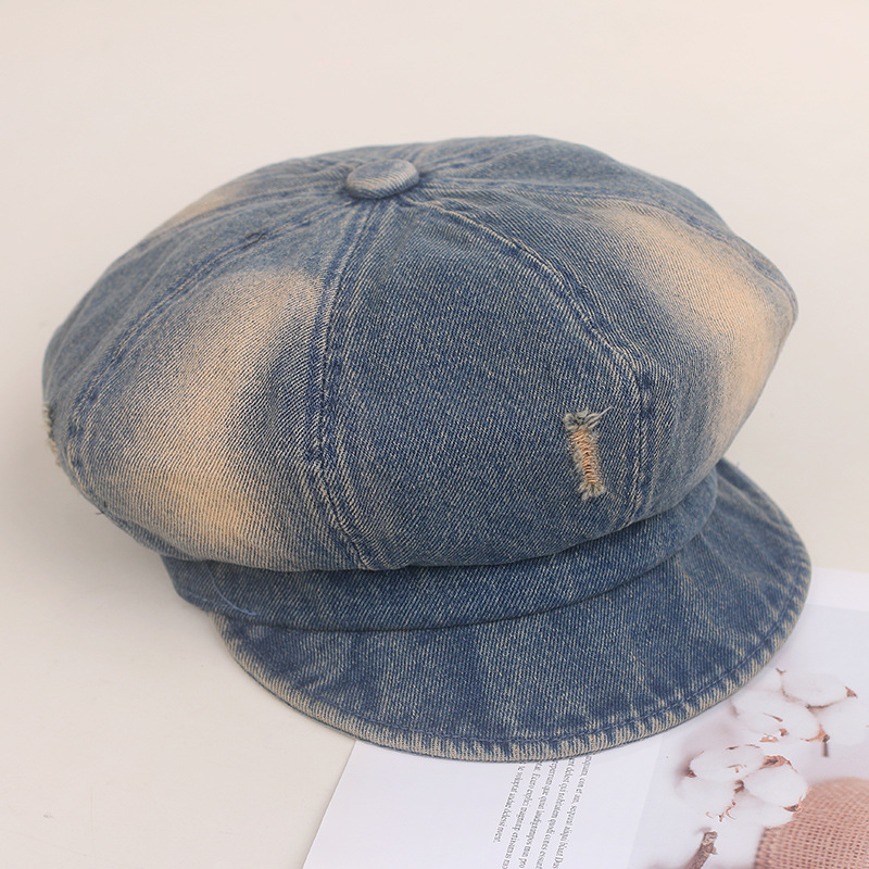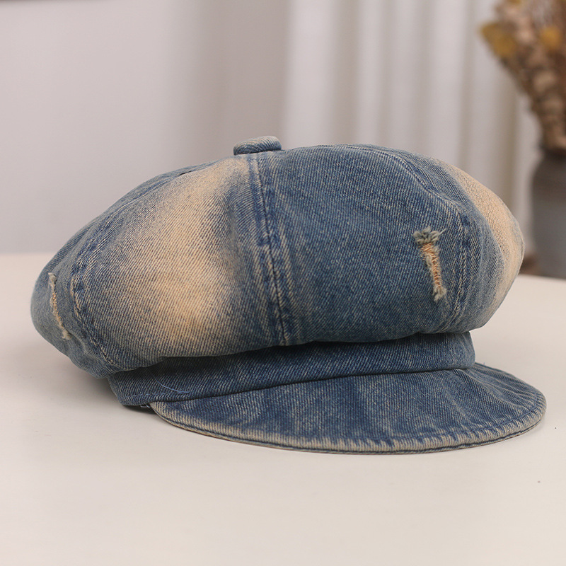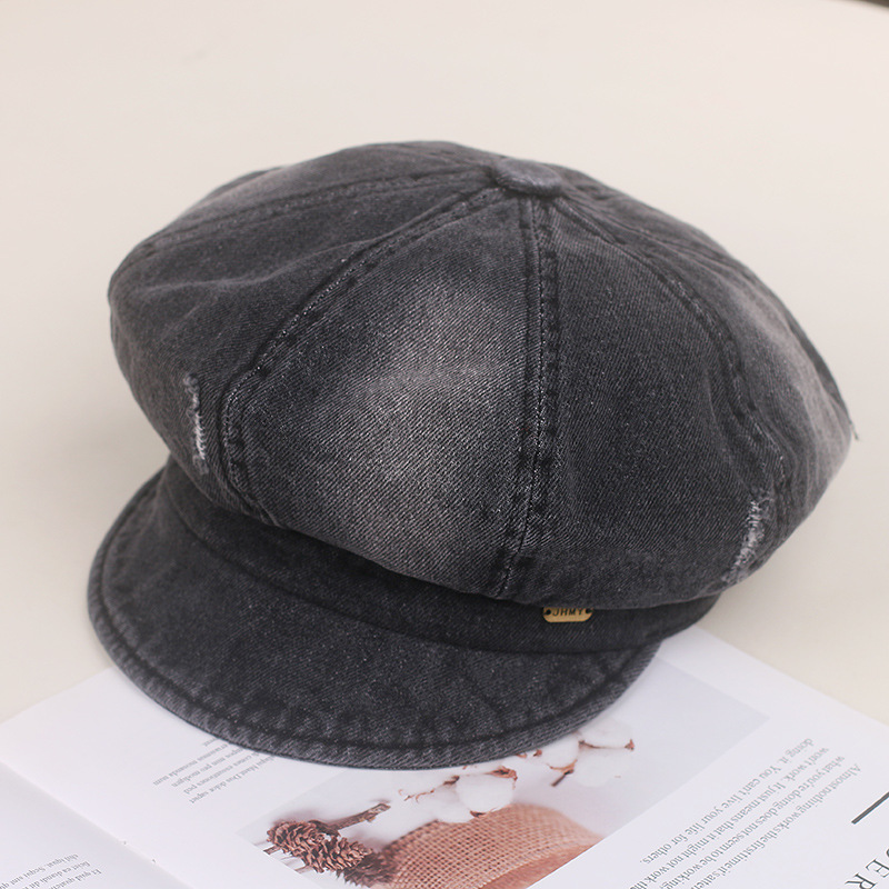 Nuevo agujero coreano viejo vaquero boina boca de pato niño cara pequeña sombrero de octogono sombrero de artista de moda retro