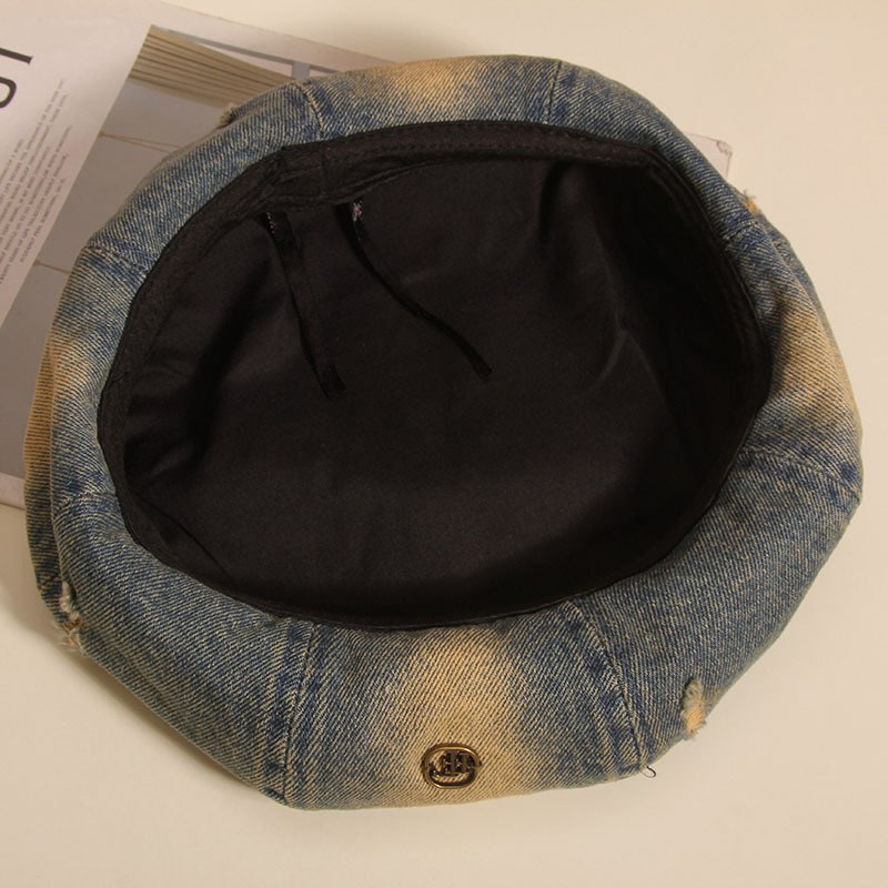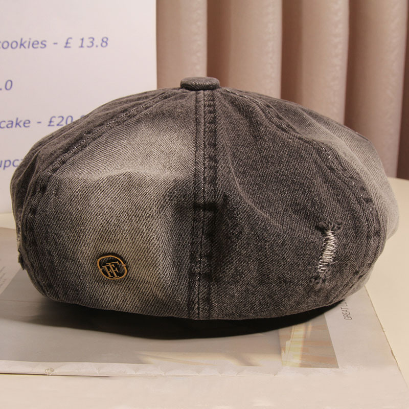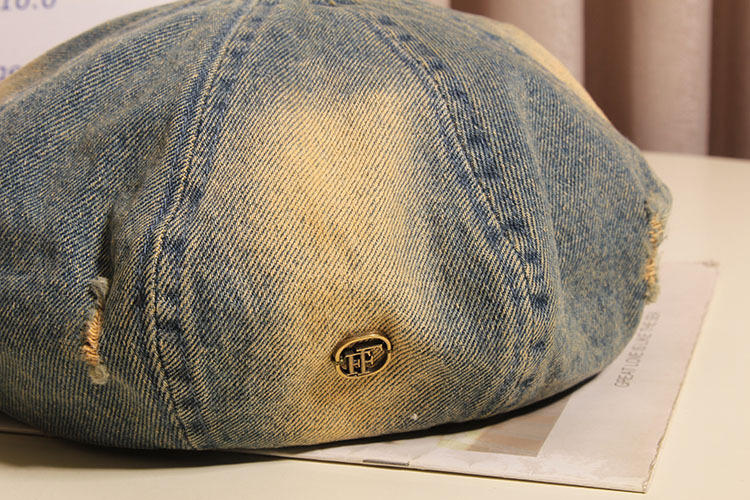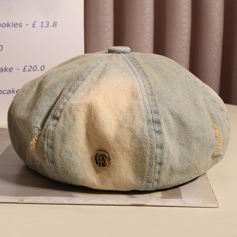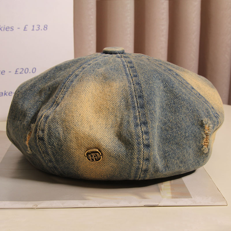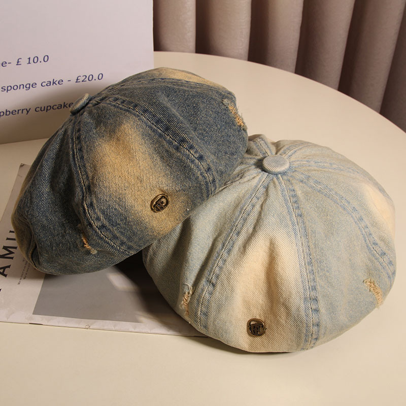 Hacer viejos agujeros agujeros sombrero de ocho ángulos mujer boina vaquero lavado primavera y verano red sombrero de nube retro muestra la cara pequeño sombrero pintor