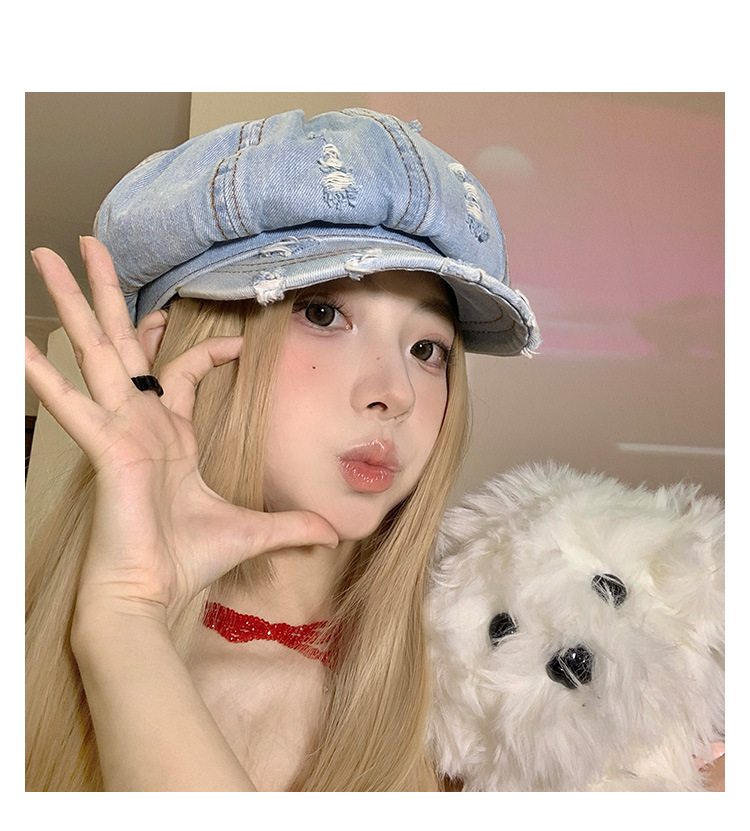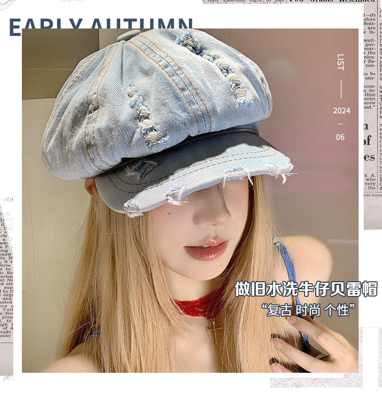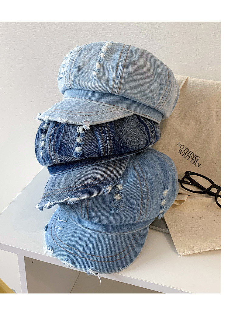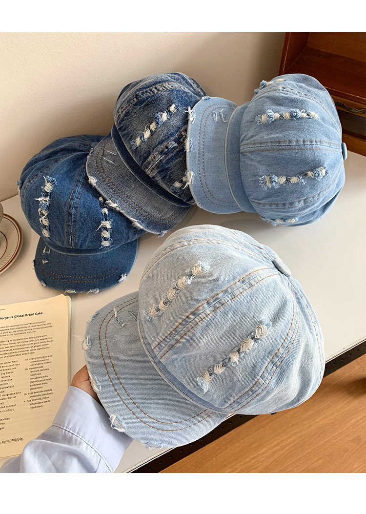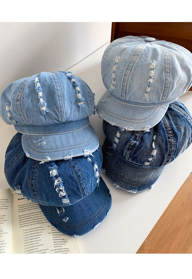 Denim coreano lavado hace vieja boina agujero mujer verano delgada cabeza grande sombrero de nubes pequeño sombrero de cara pequeña