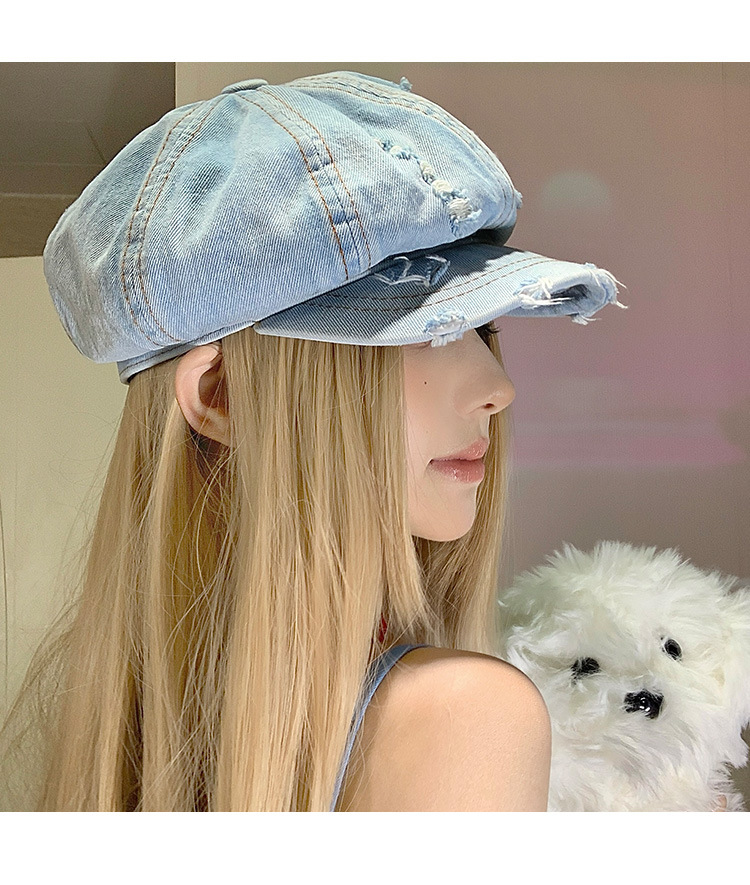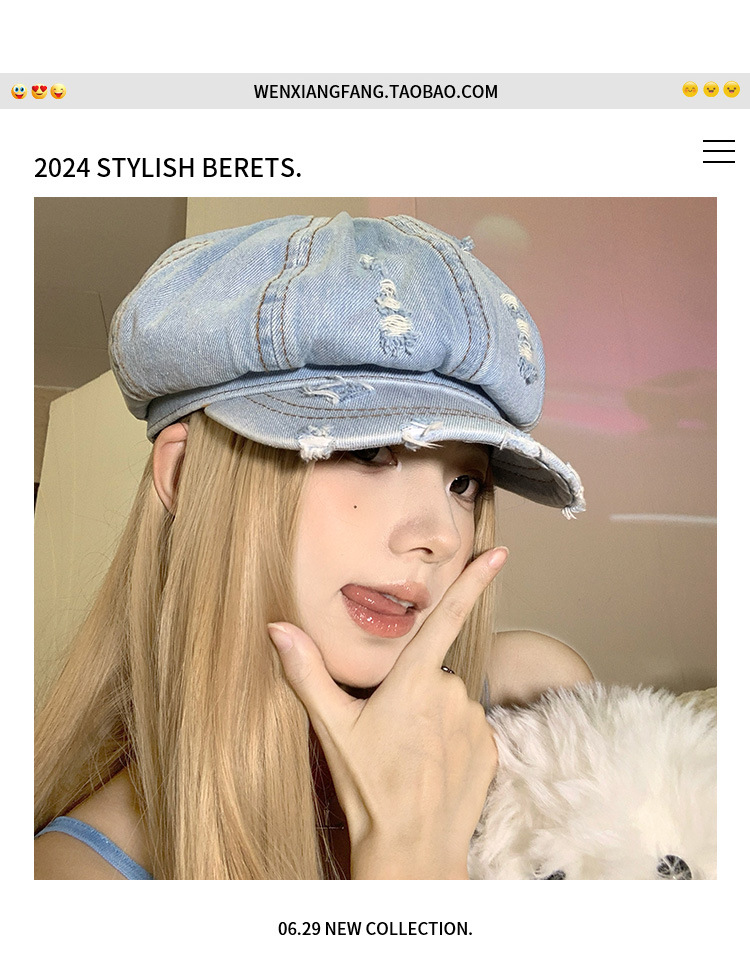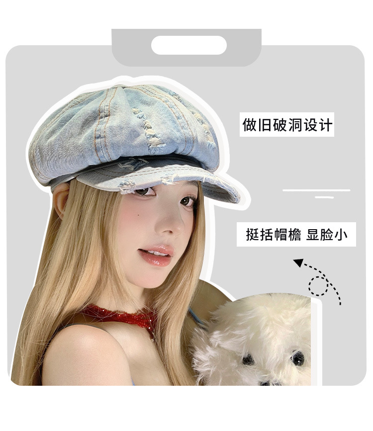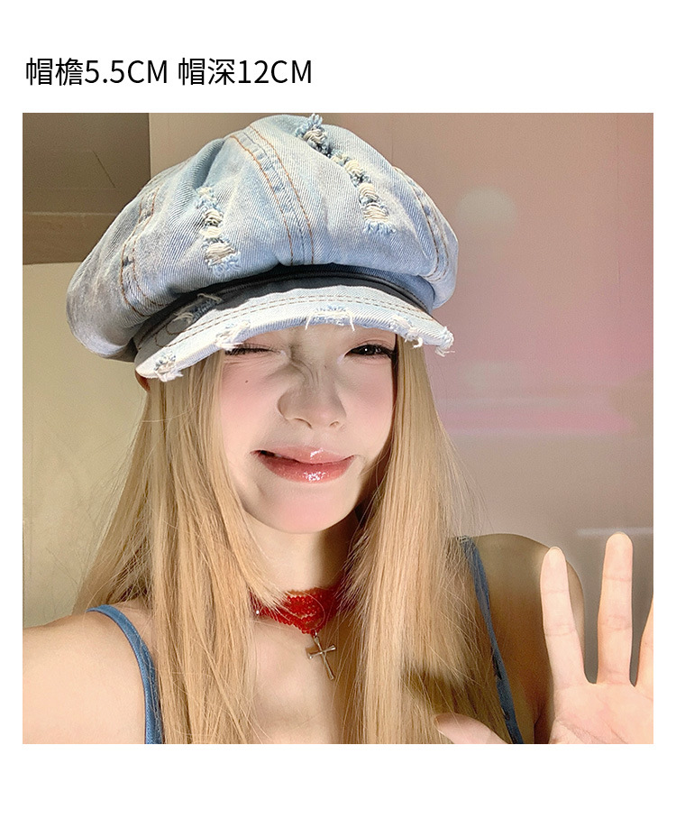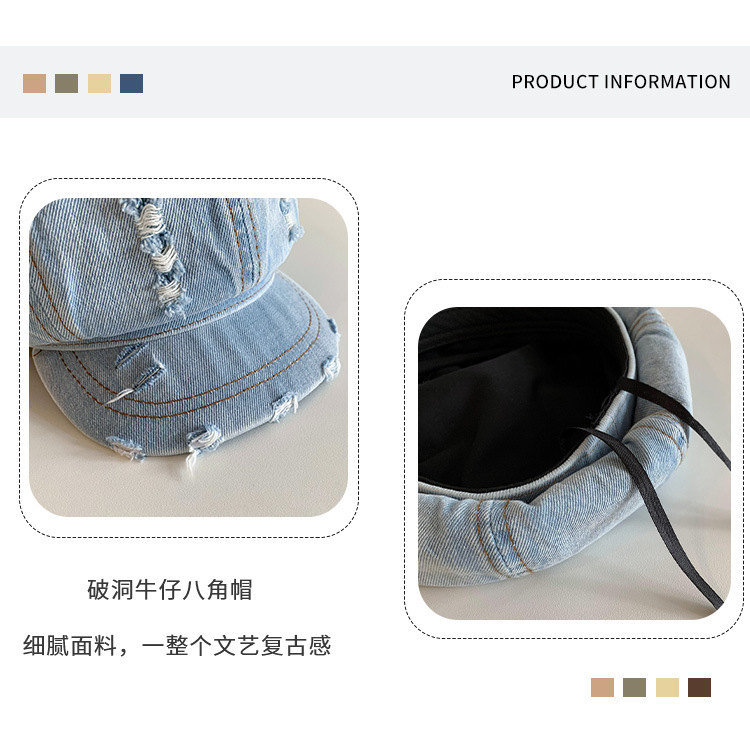 Denim coreano lavado hace vieja boina agujero mujer verano delgada cabeza grande sombrero de nubes pequeño sombrero de cara pequeña