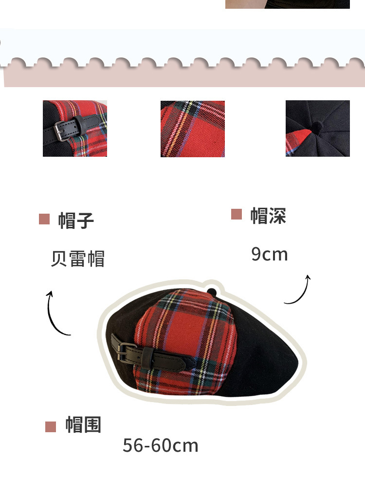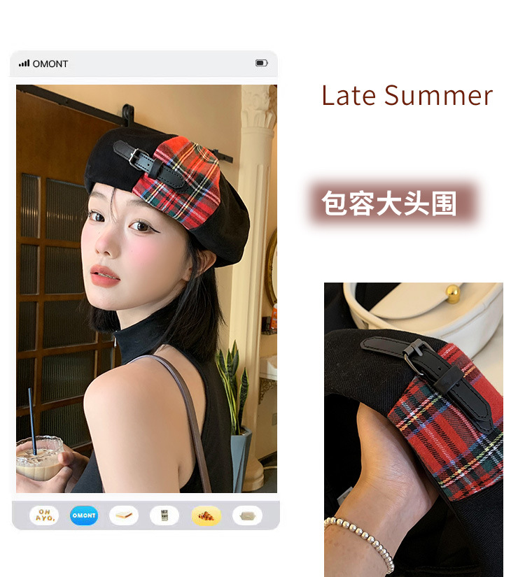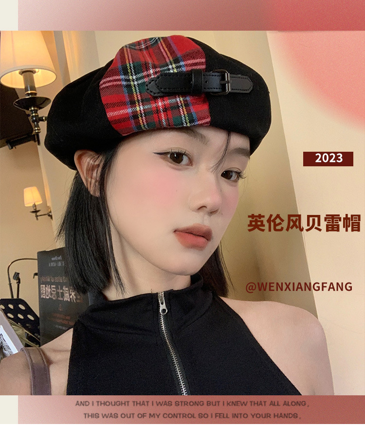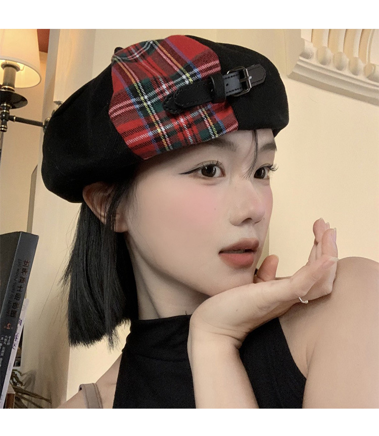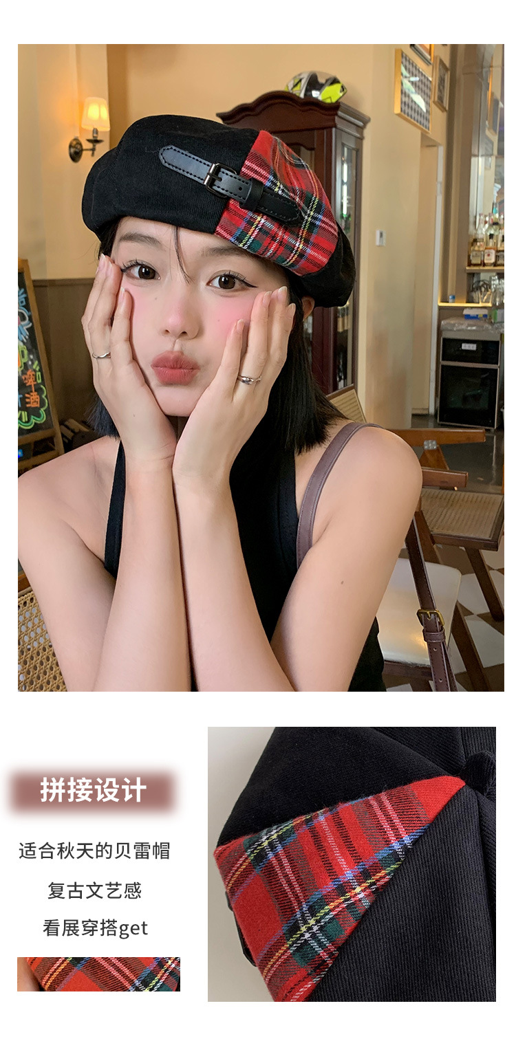Boina de mosaico a rejilla femenina retrógrada británica cara Pequeño Pei pintor sombrero japonés alrededor de la cabeza de la tendencia de sombrero universal
