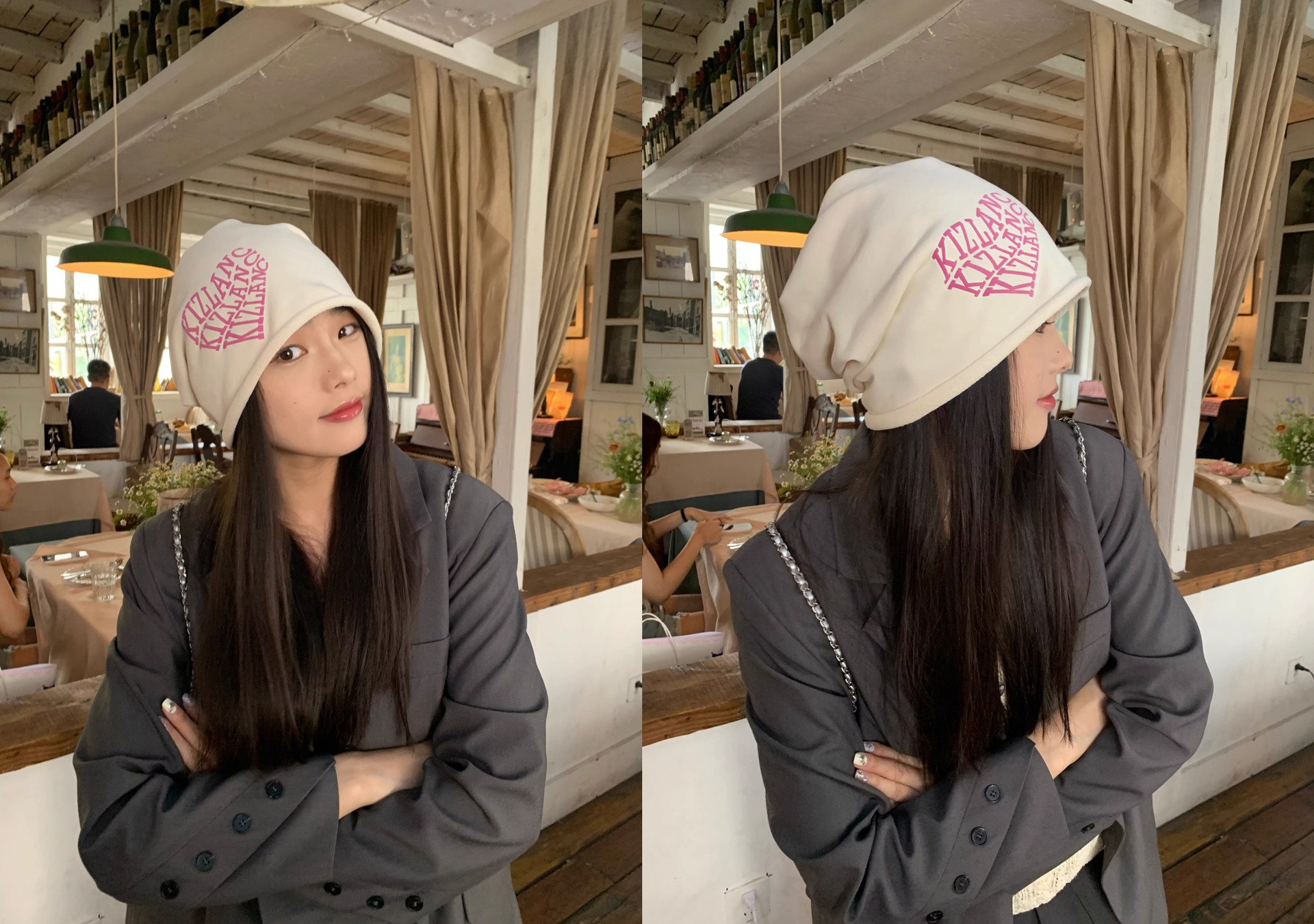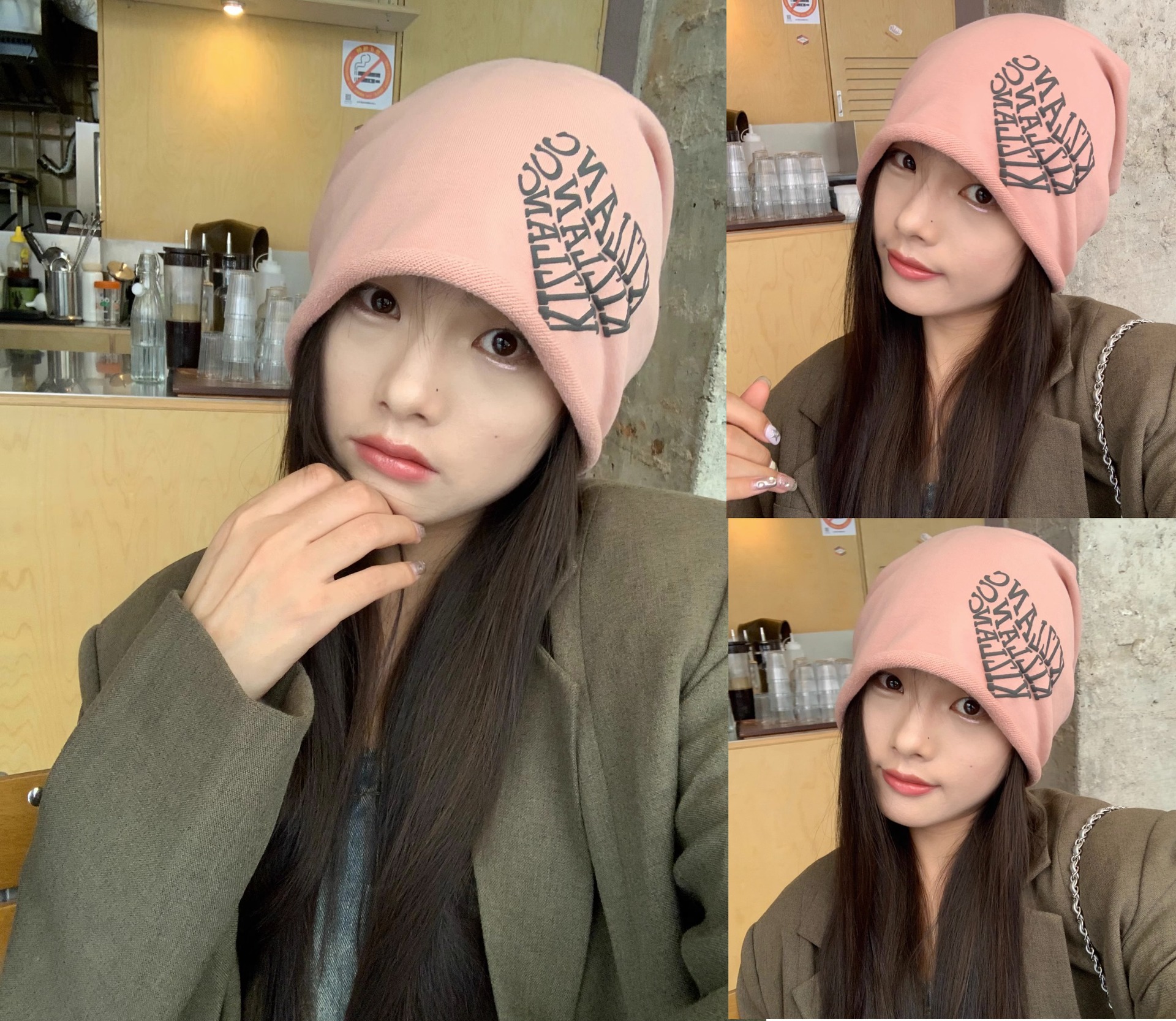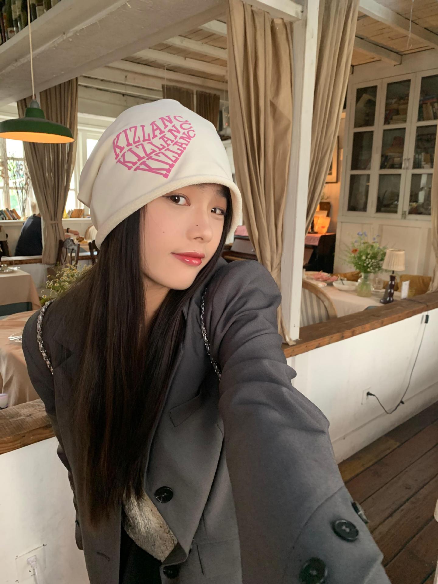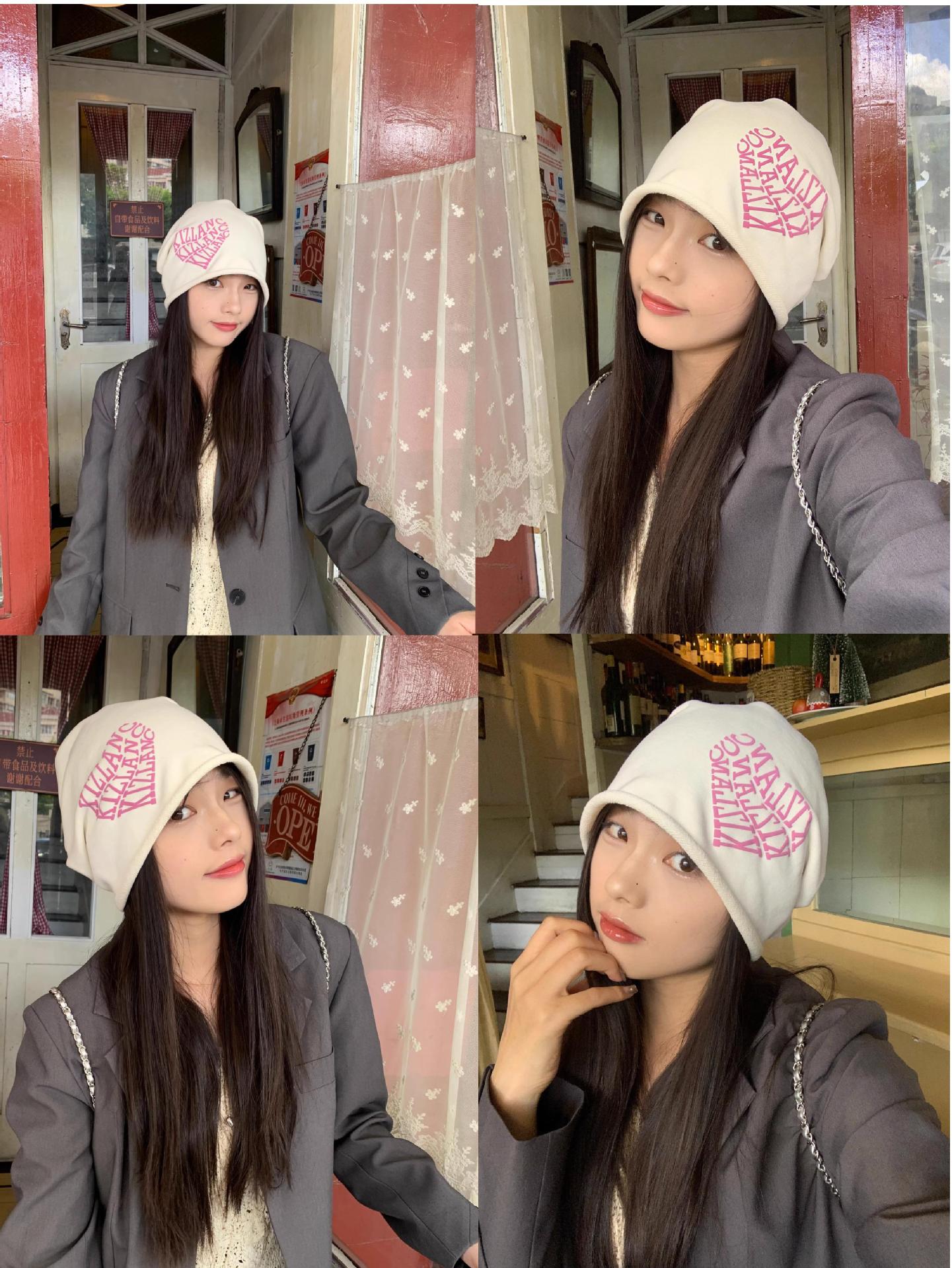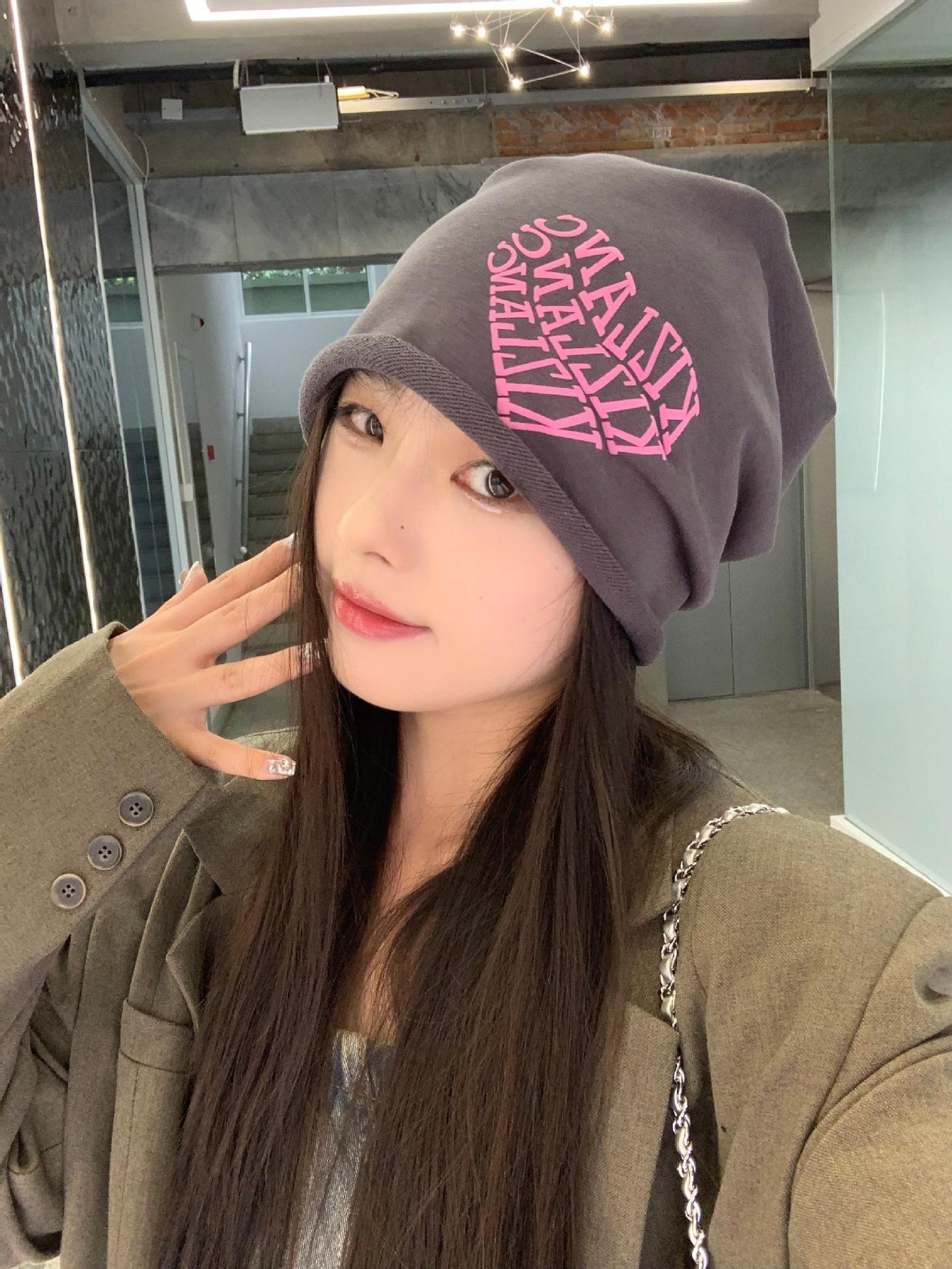 Granny Chen / sombrero Chica caliente amor amor letras pila sombrero otoño invierno calles versátiles muestran la cara pequeña gorra fría