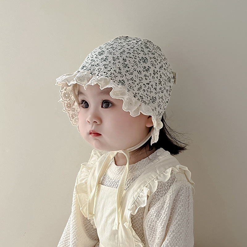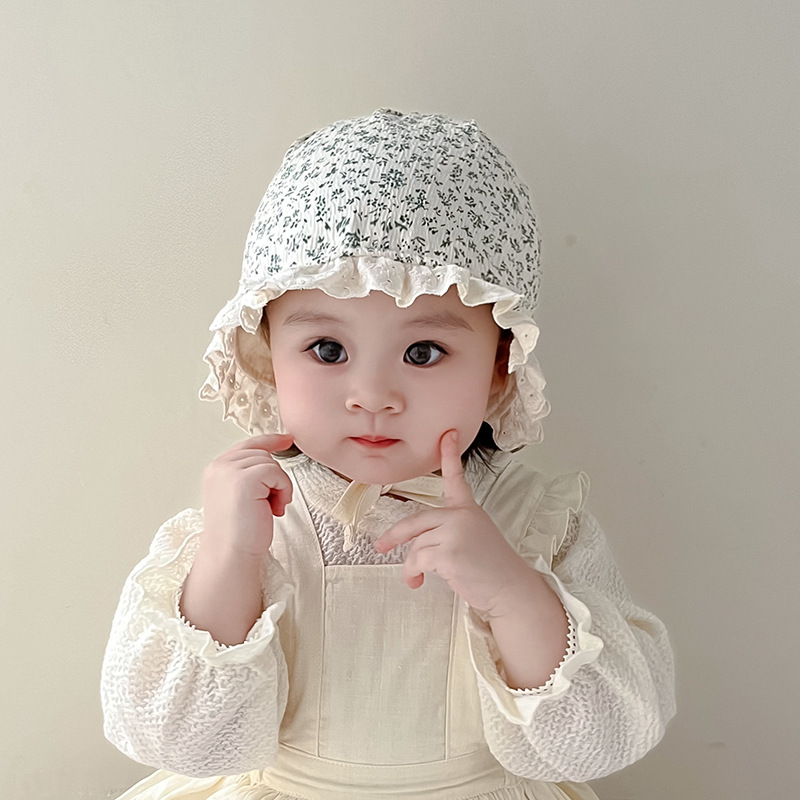 Sombrero de la corte infantil primavera y otoño gorro de princesa de flores cortas encantador versátil para bebés protectoras de oídos sombrero de protección solar