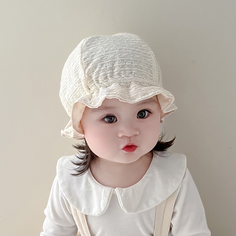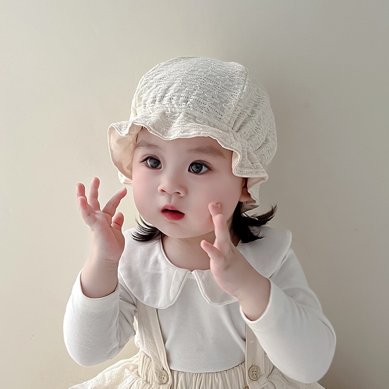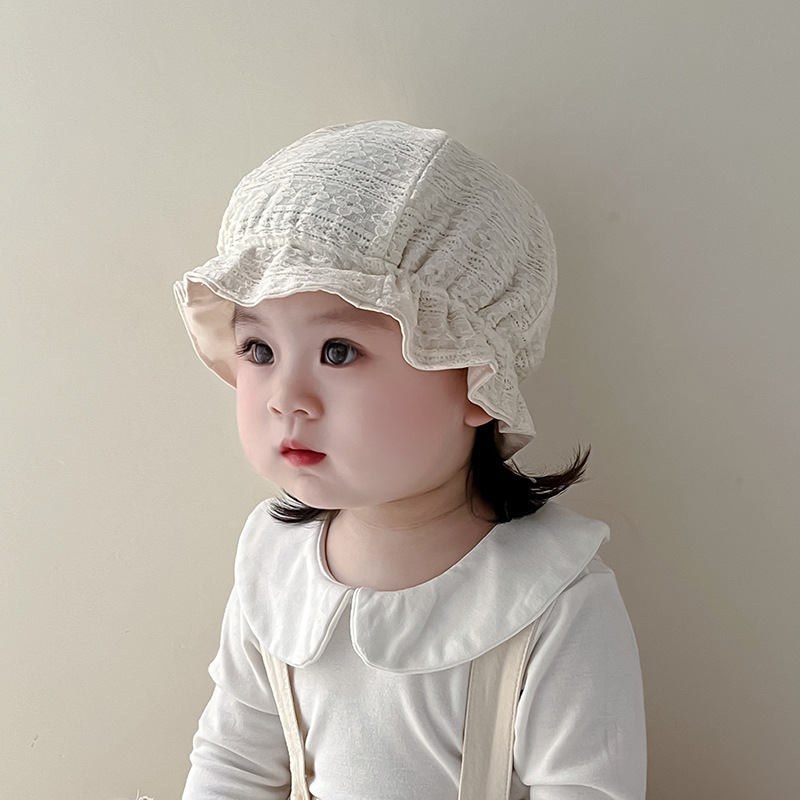 Sombrero de encaje princesa coreana primavera y otoño sombrero de bebé femenino ajustable de 1 año al aire libre sombrero de pescador para niños pequeños