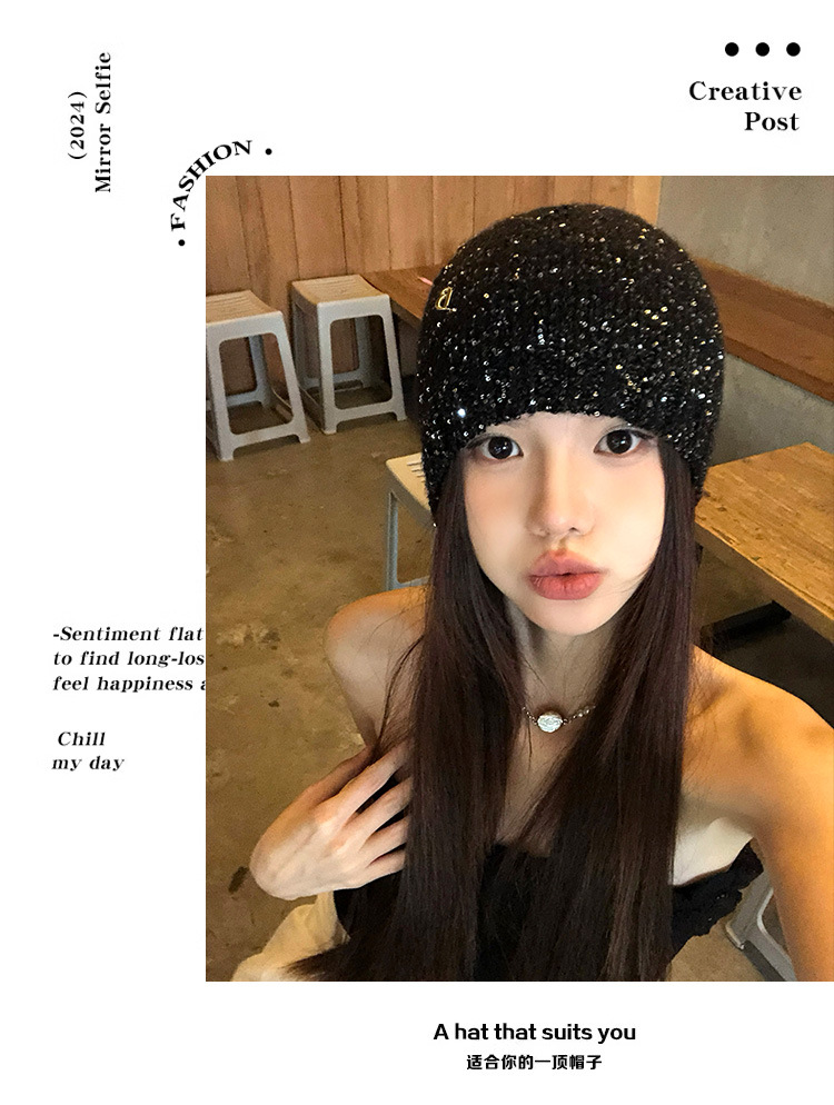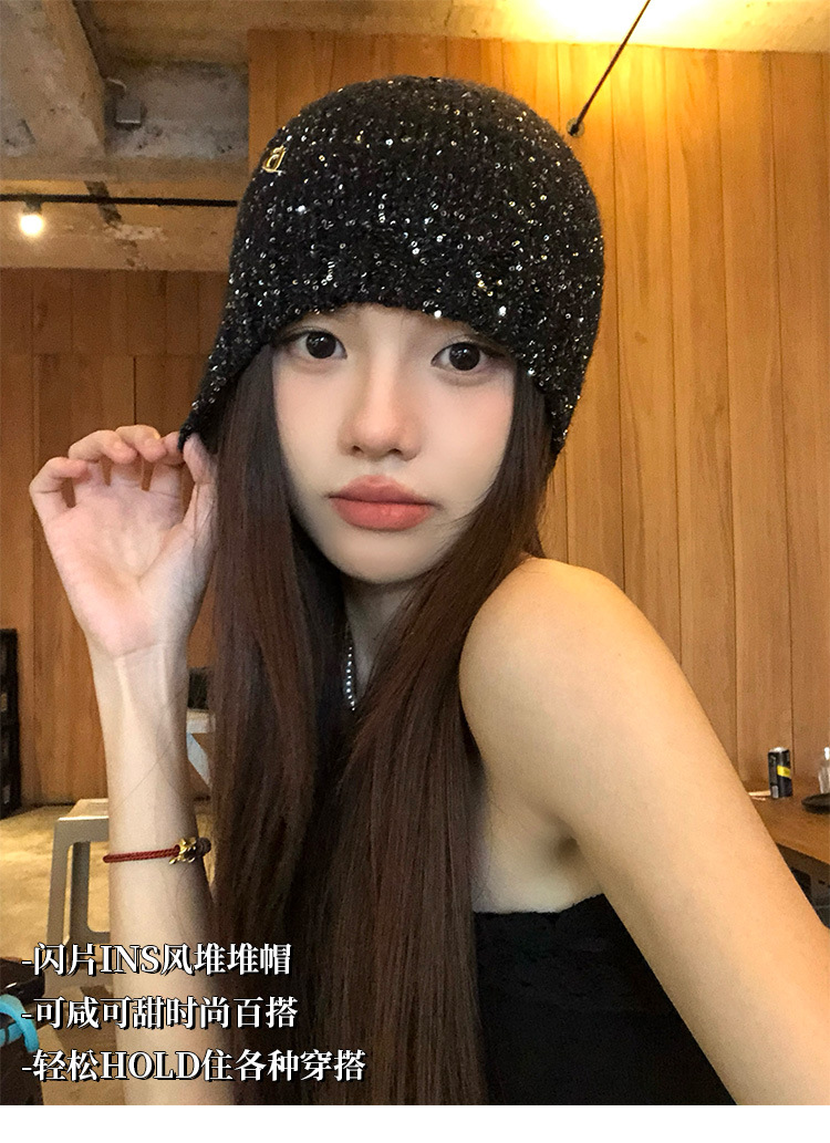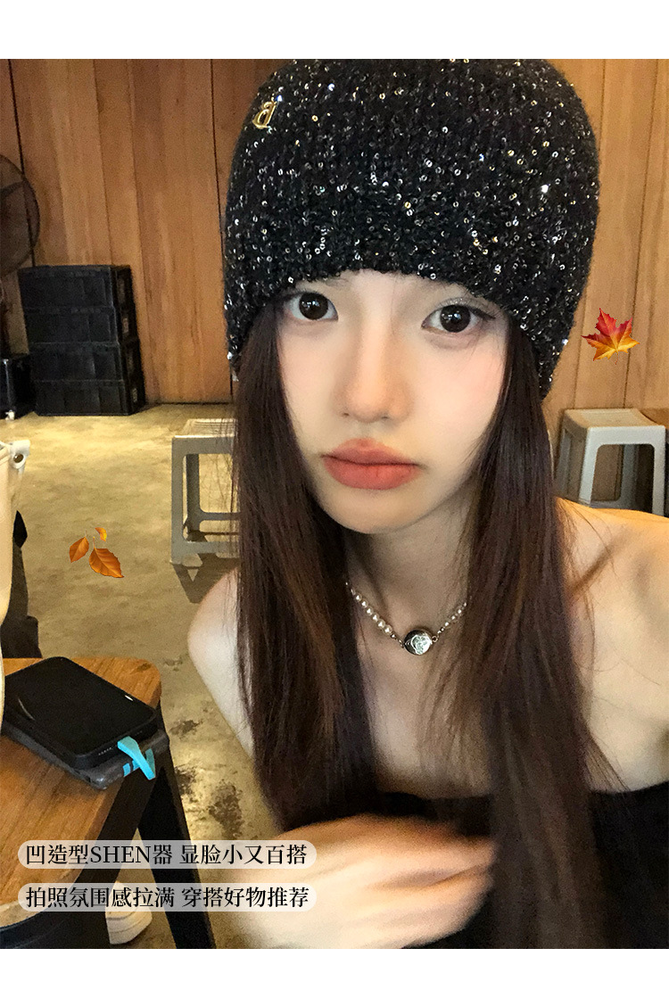 Y2K gorra fría de punto de sequilla mujer 2024 nuevo comienzo de otoño vestido con un pequeño sombrero de viento fragante para mostrar la cara de un pequeño sombrero de pila