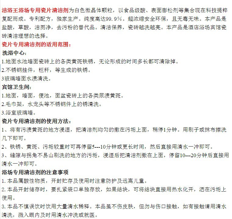 Limpieza del baño rey detergente de suelo de inodoro polvo de baño piso desoxidable desincrustante al por mayor