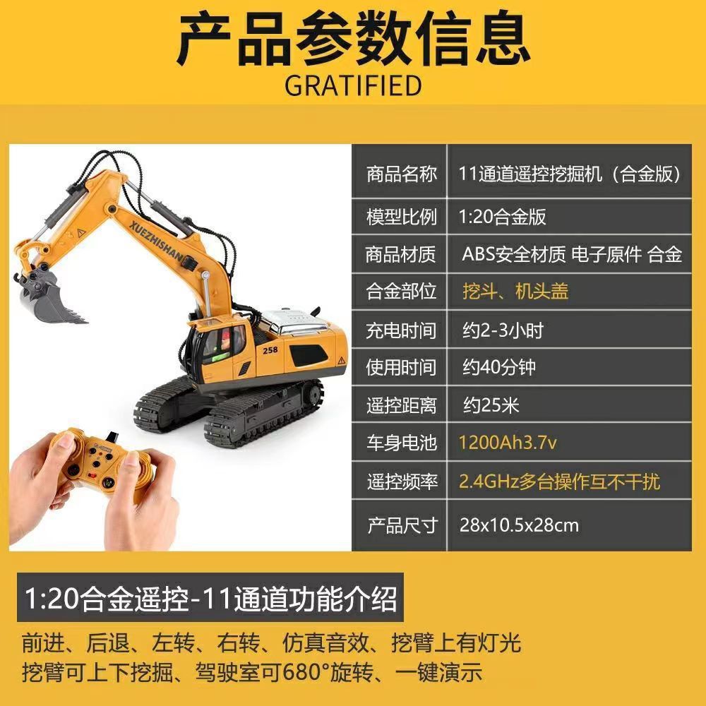 Control remoto para niños, excavadora de 11 vías, camión de ingeniería, excavadora de aleación, camión volquete, topadora, juguetes transfronterizos, una generación