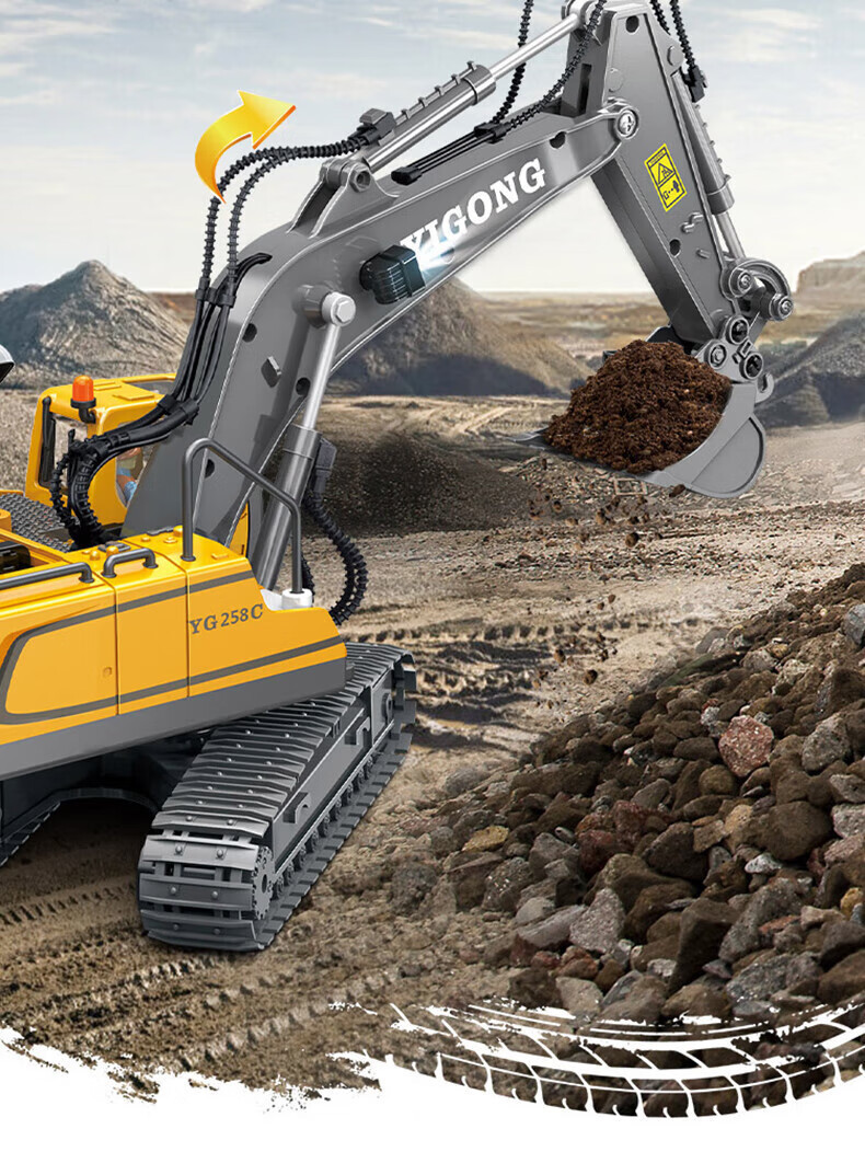 Excavadora de Control Remoto Yigong 2.4G, Modelo de Excavadora de Aleación, Vehículo de Ingeniería, Auto de Control Remoto para Niños y Niñas con Rotación Ilimitada