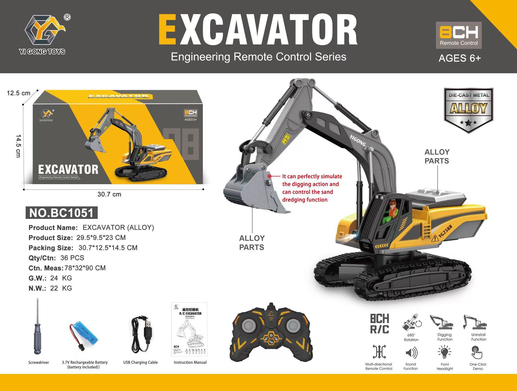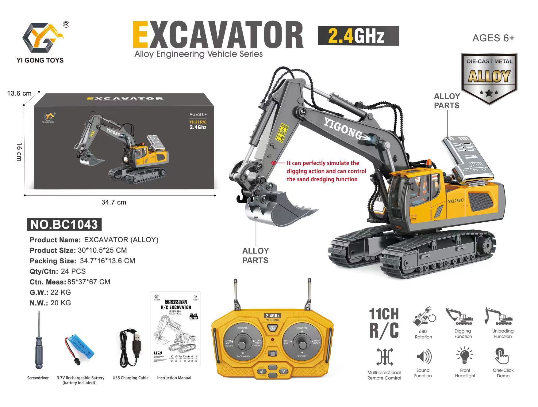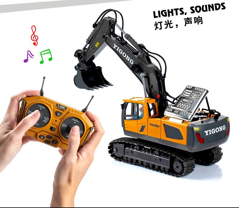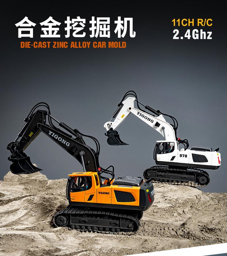 Yigong 2.4G Excavadora de control remoto Excavadora de aleación Modelo de coche de juguete para niños Vehículo de ingeniería Coche de control remoto Niño Mujer